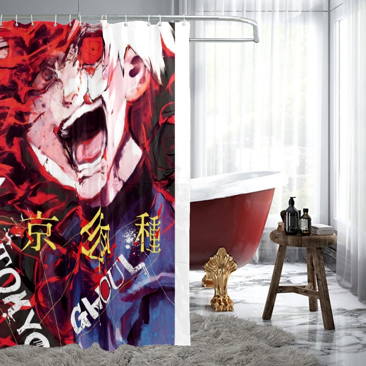 Tokyo Ghoul Red Blood Kaneki Ken Shower Curtain 100% Polyester Hotel Home Bathroom Decor Washable Bath Curtain 60"x72"