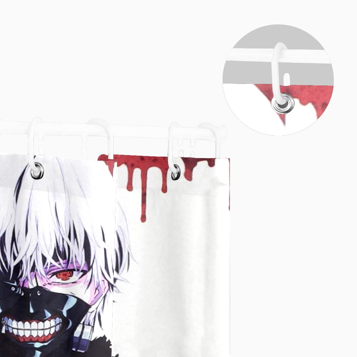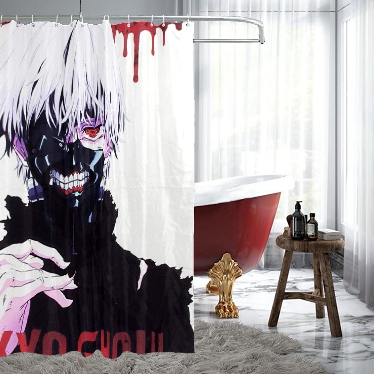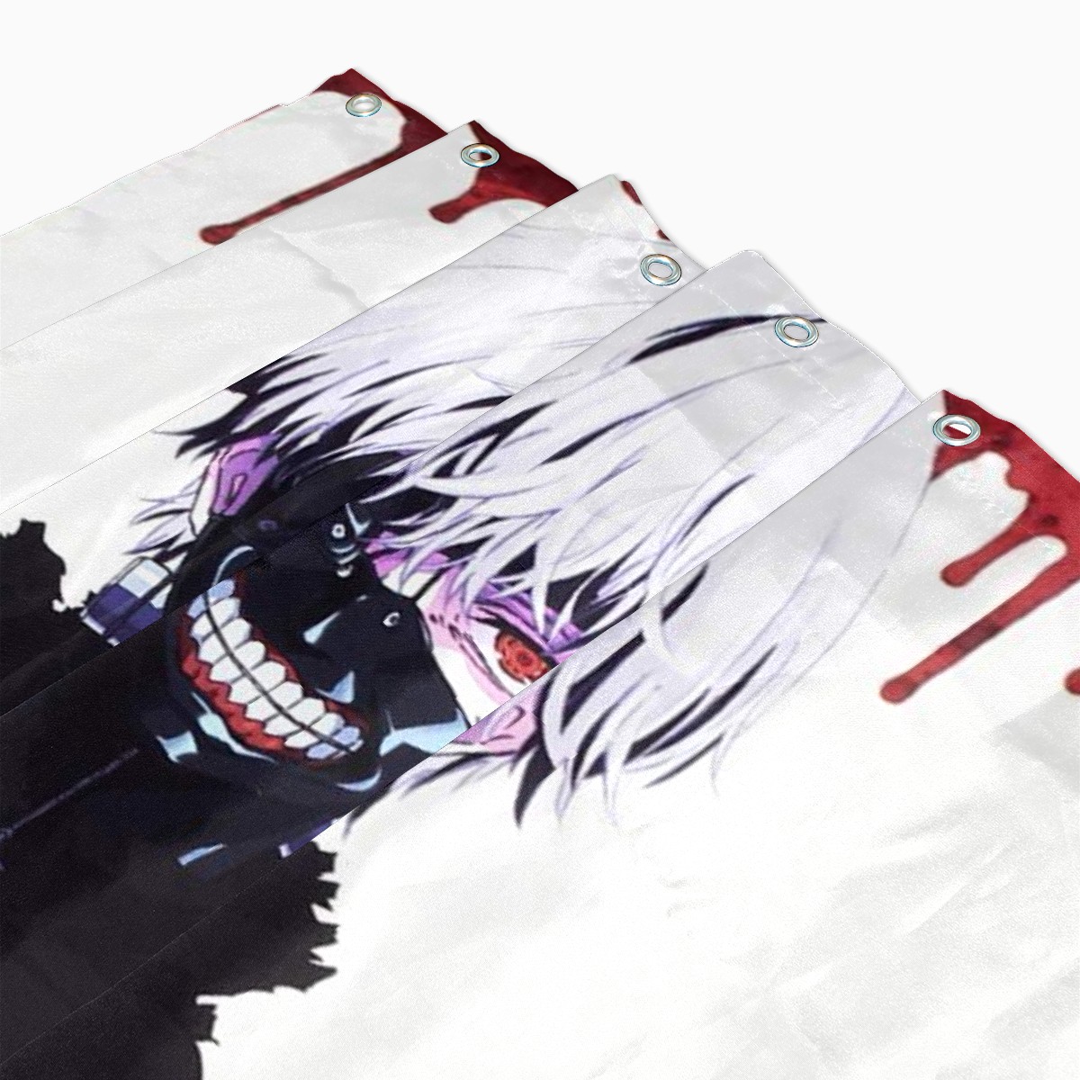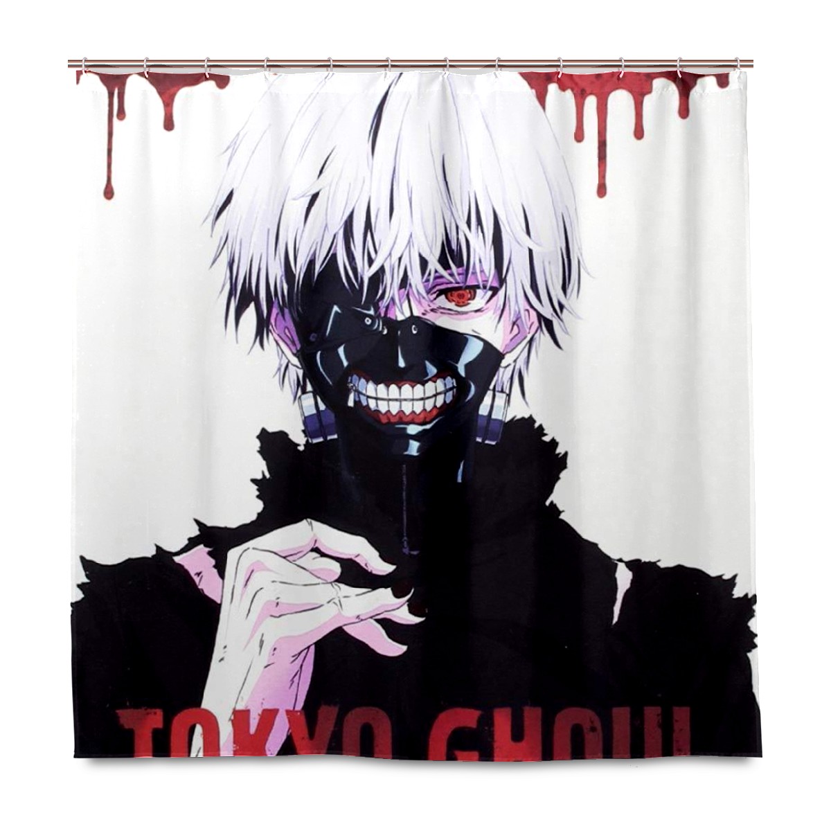 Tokyo Ghoul Poster White Hair Teeth Mask Shower Curtain 100% Polyester Hotel Home Bathroom Decor Washable Bath Curtain 60"x72"