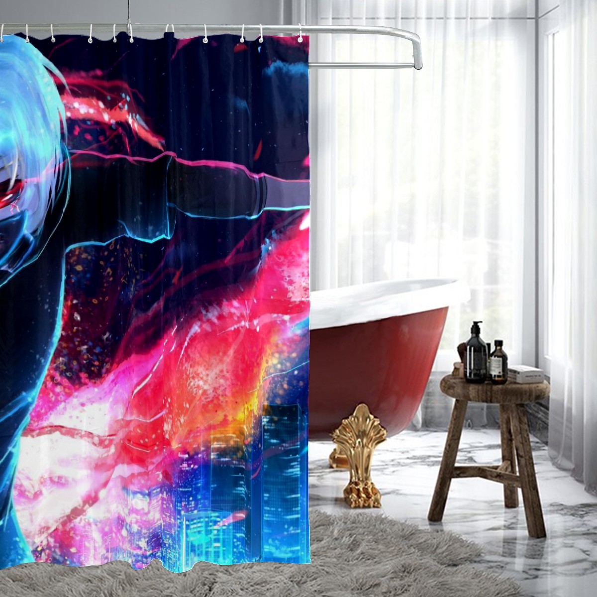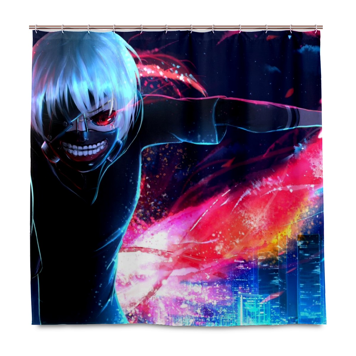 Tokyo Ghoul Poster Kaneki Ken Red Eye Mask Shower Curtain 100% Polyester Hotel Home Bathroom Decor Washable Bath Curtain 60"x72"