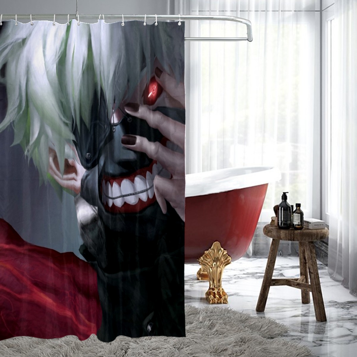 Tokyo Ghoul Kaneki Ken Cool Character Red Shower Curtain 100% Polyester Hotel Home Bathroom Decor Washable Bath Curtain 60"x72"