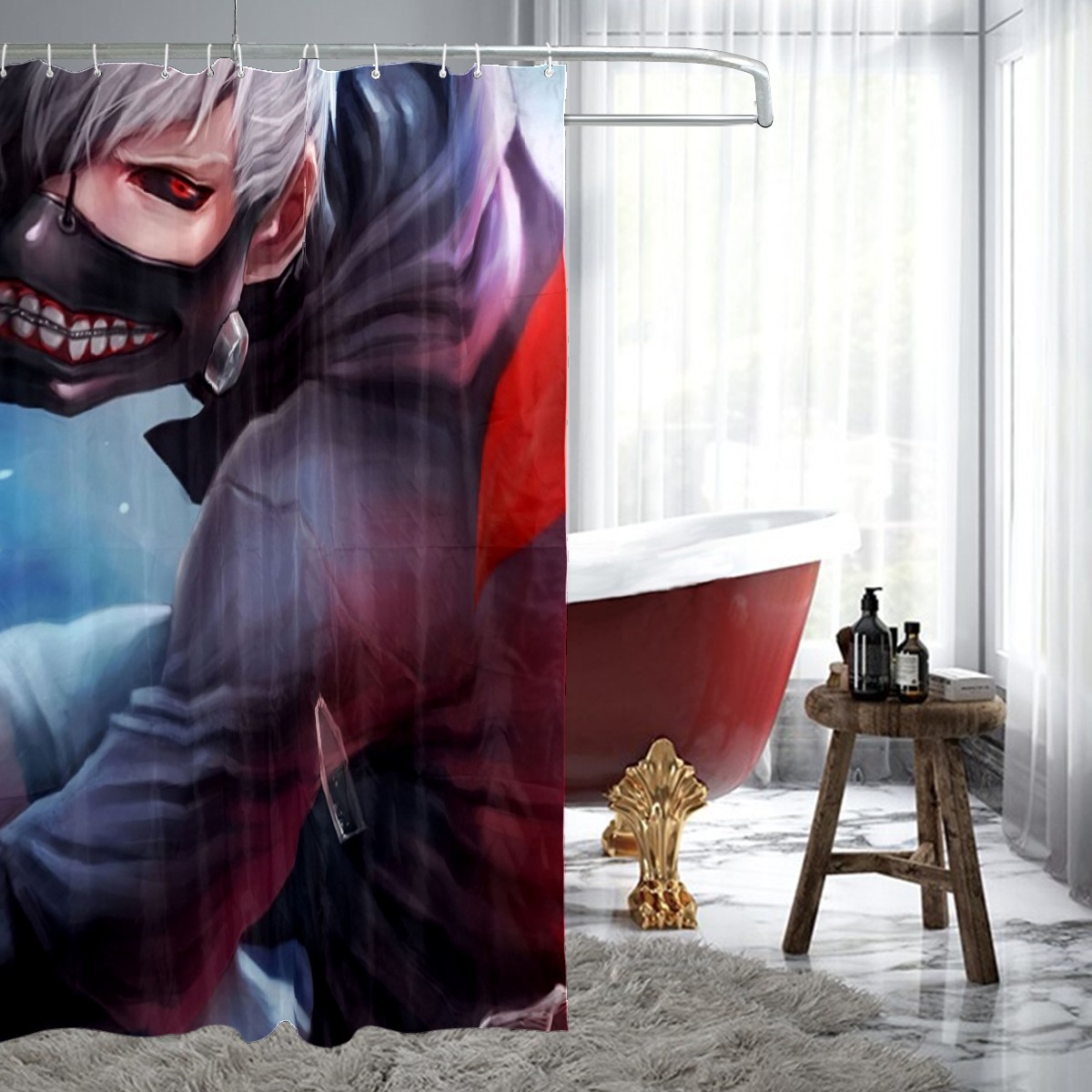 Tokyo Ghoul Ice Ken Kaneki Fight Shower Curtain 100% Polyester Hotel Home Bathroom Decor Washable Bath Curtain 60"x72"