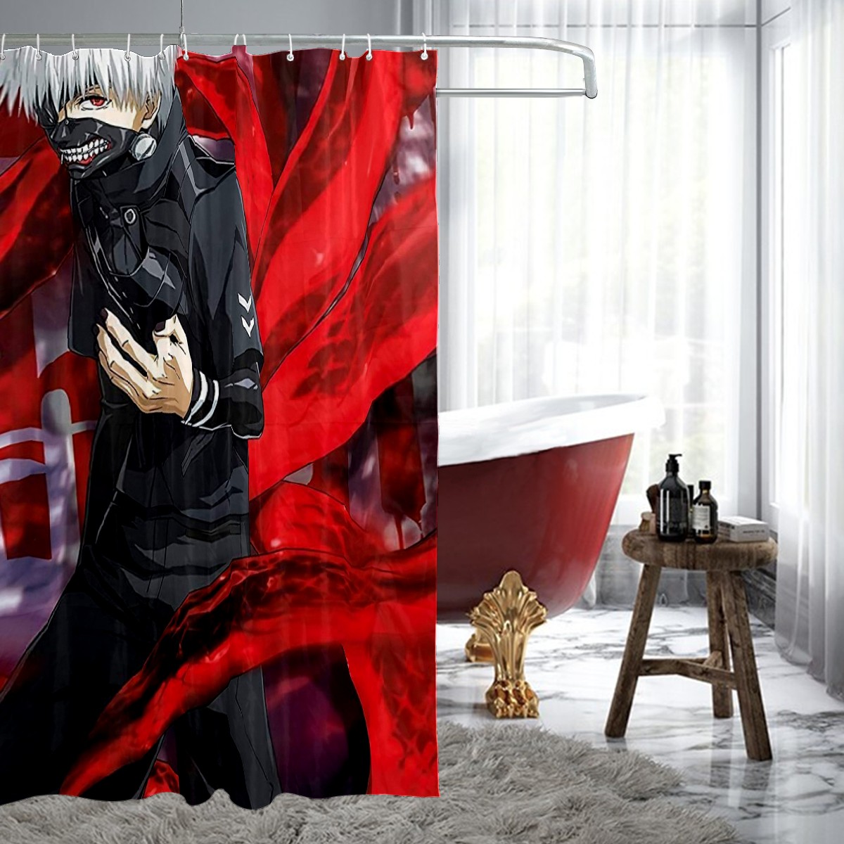 Tokyo Ghoul Kaneki Ken Anime Black Cool Shower Curtain 100% Polyester Hotel Home Bathroom Decor Washable Bath Curtain 60"x72"