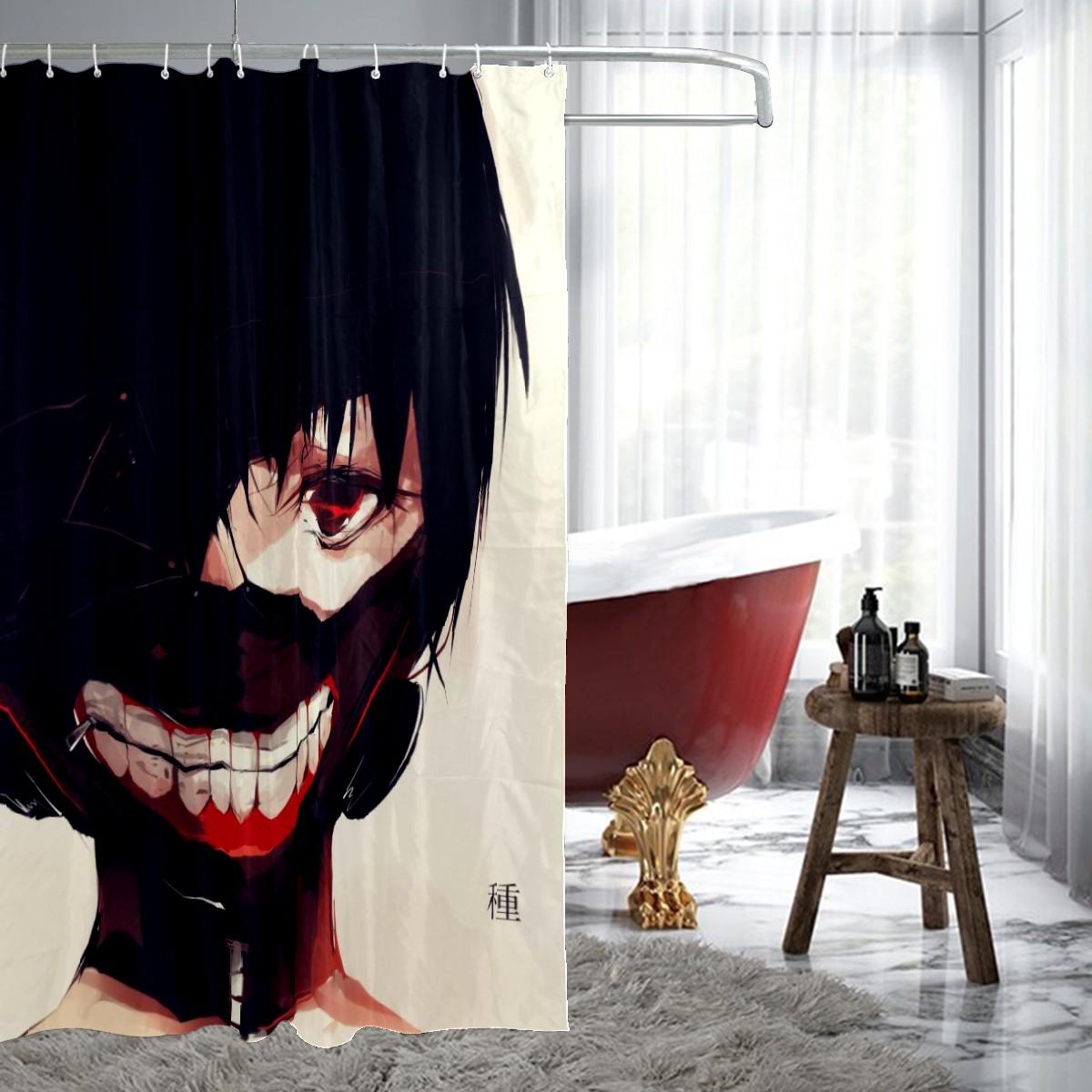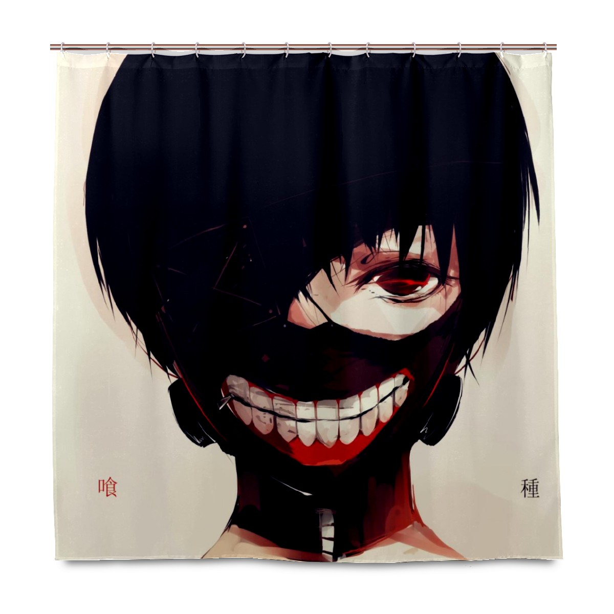 Tokyo Ghoul Black Teeth Mask Red Eyes Shower Curtain 100% Polyester Hotel Home Bathroom Decor Washable Bath Curtain 60"x72"