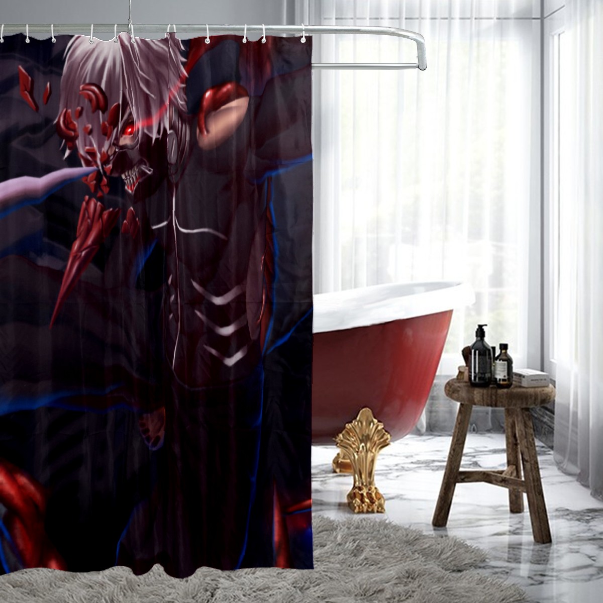 Red Blood Kaneki Ken Tokyo Ghoul Shower Curtain 100% Polyester Hotel Home Bathroom Decor Washable Bath Curtain 60"x72"