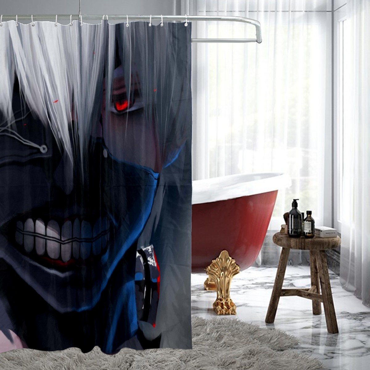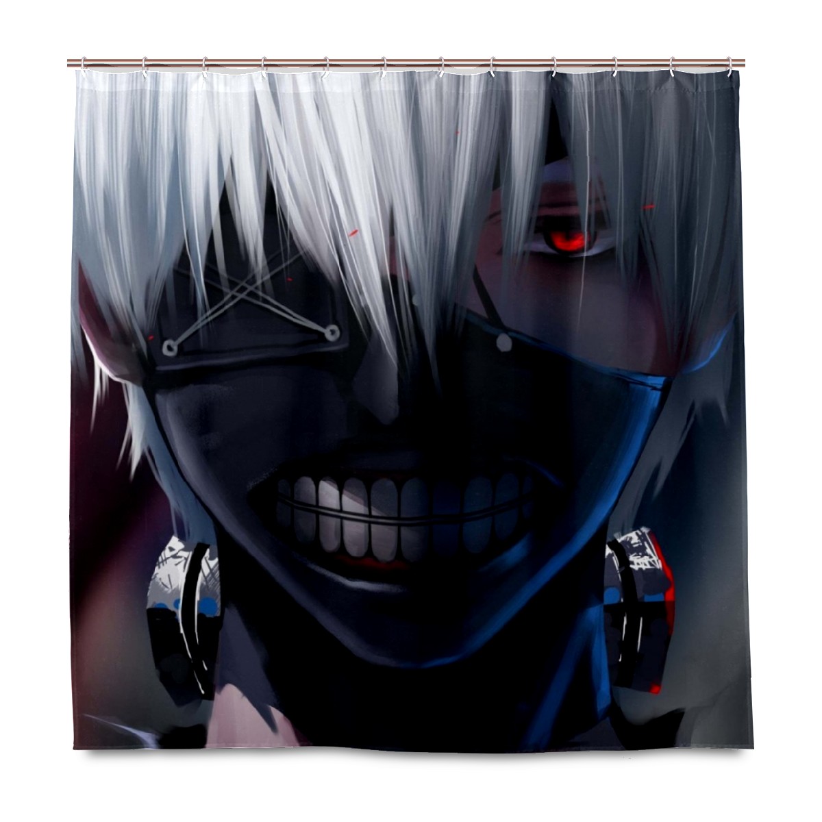 Red Eye Teeth Mask Ken Kaneki Tokyo Ghoul Shower Curtain 100% Polyester Hotel Home Bathroom Decor Washable Bath Curtain 60"x72"