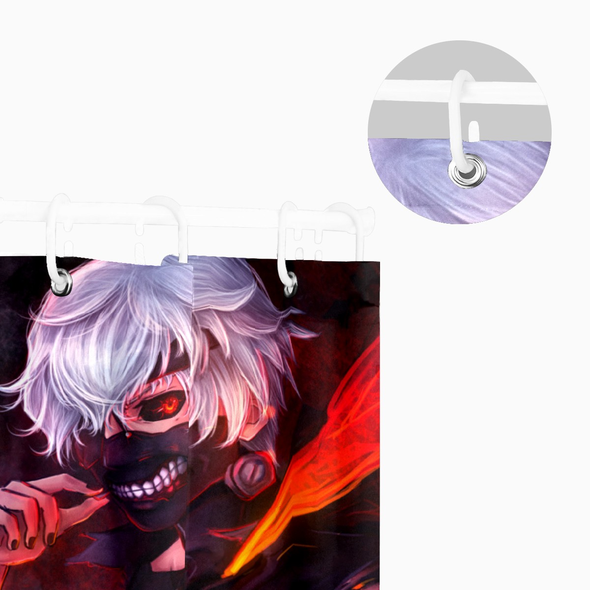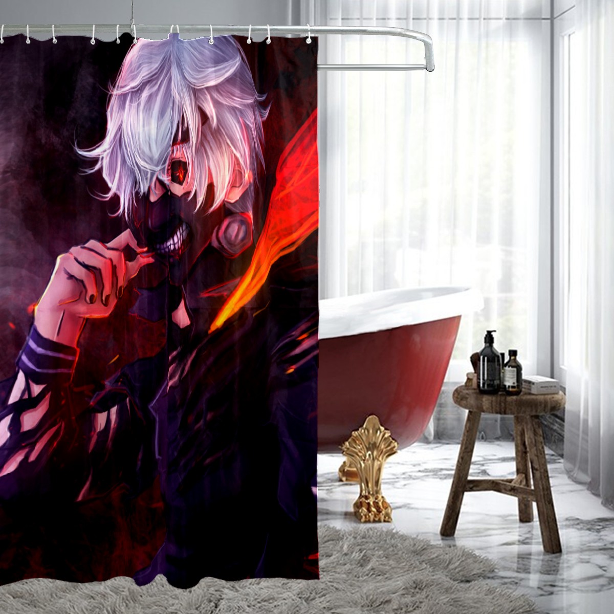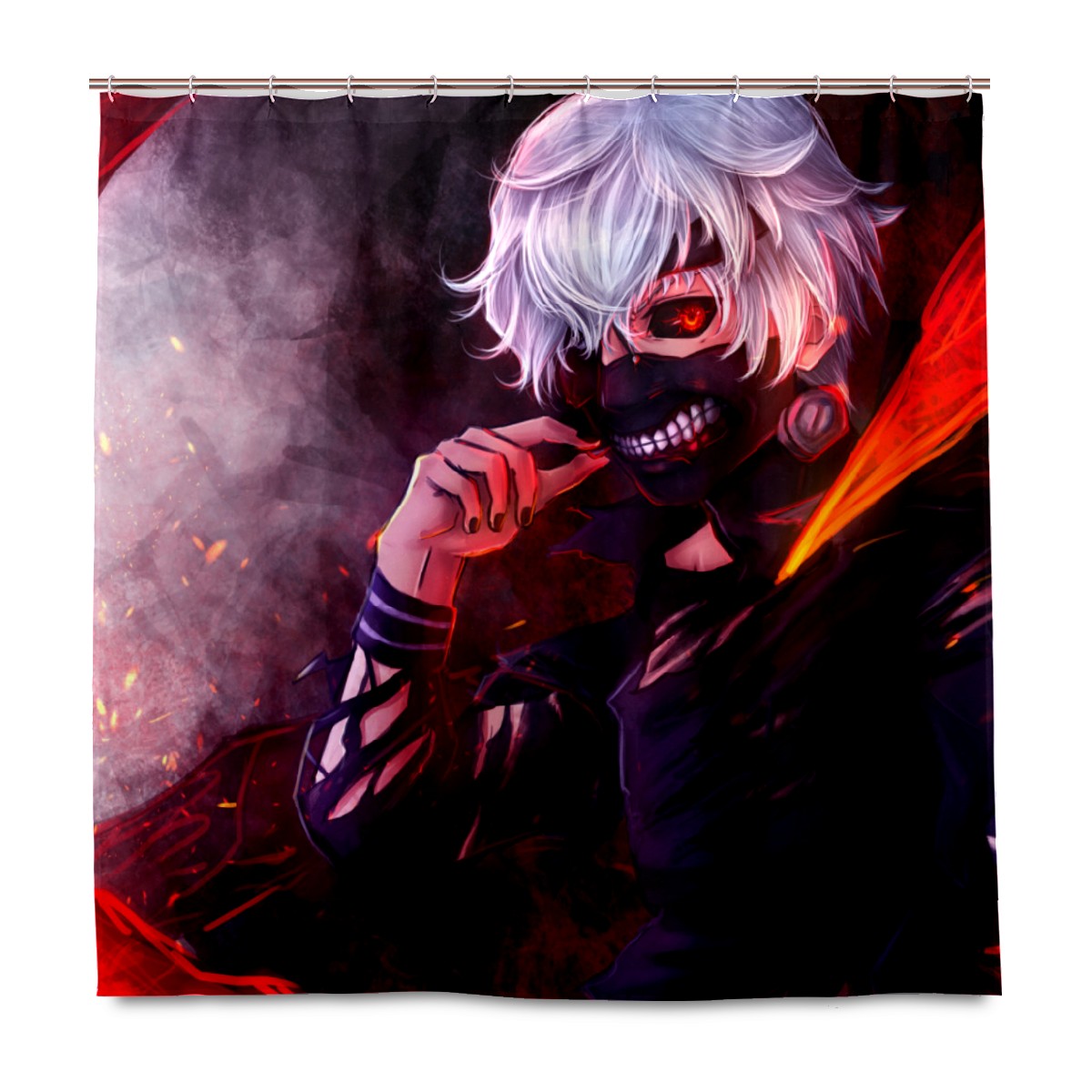 Ken Kaneki Tokyo Ghoul Red Eye Teeth Mask Shower Curtain 100% Polyester Hotel Home Bathroom Decor Washable Bath Curtain 60"x72"