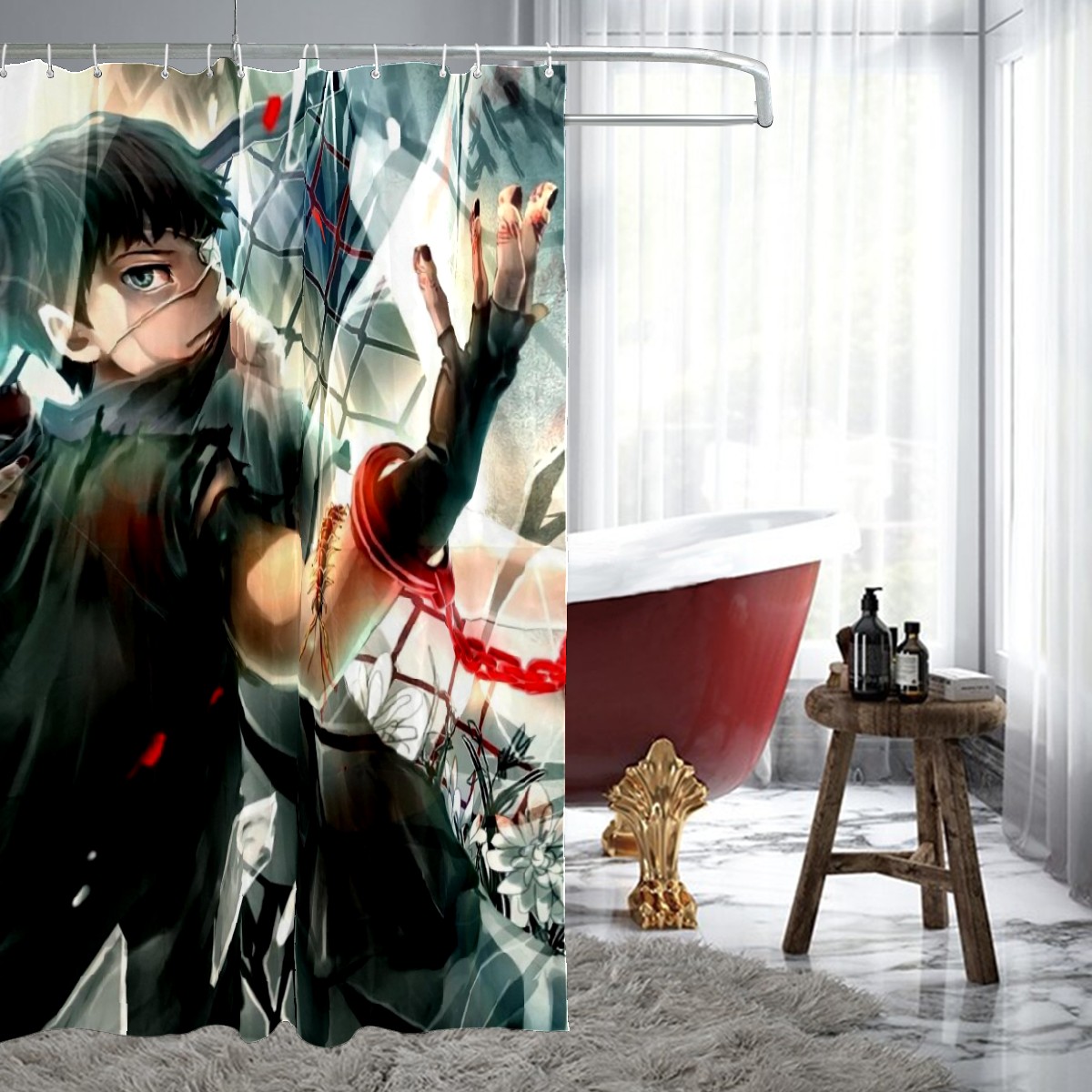 Ken Kaneki Tokyo Ghoul Anime Shower Curtain 100% Polyester Hotel Home Bathroom Decor Washable Bath Curtain 60"x72"