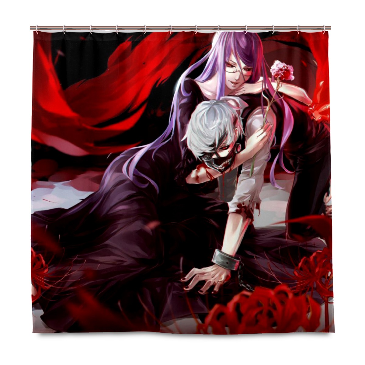 Kamishiro Rize Kaneki Ken Blood Tokyo Ghoul Shower Curtain 100% Polyester Hotel Home Bathroom Decor Washable Bath Curtain 60"x72"