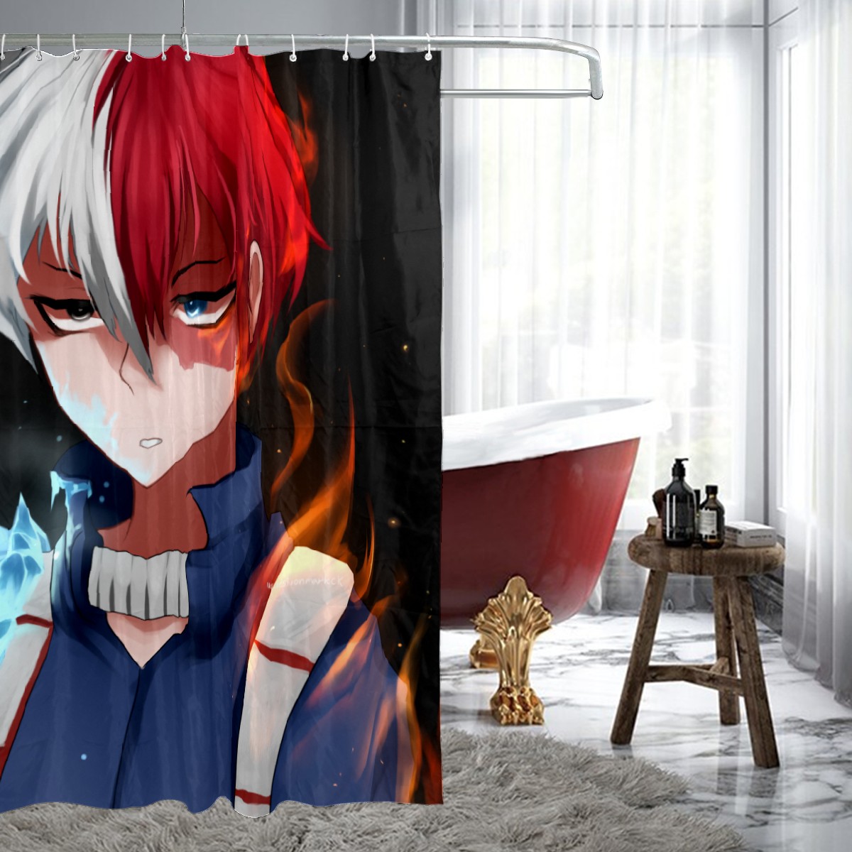 My Hero Academia Todoroki Shoto Ice Fire Shower Curtain 100% Polyester Hotel Home Bathroom Decor Washable Bath Curtain 60"x72"
