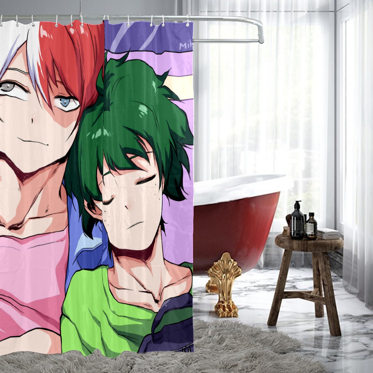 Todoroki Shoto Midoriya Izuku Brother Shower Curtain 100% Polyester Hotel Home Bathroom Decor Washable Bath Curtain 60"x72"