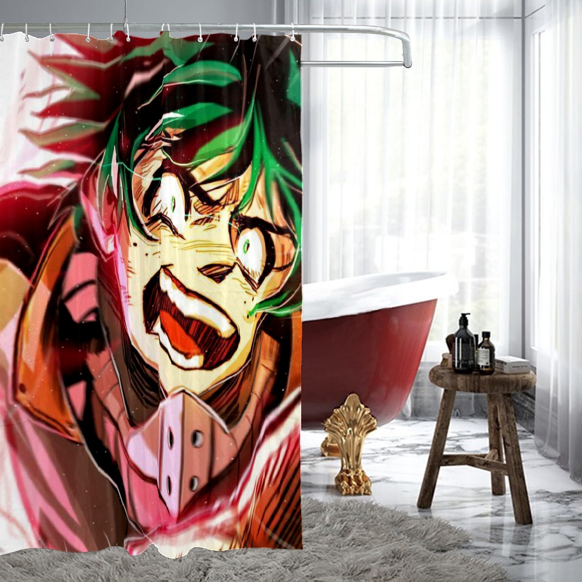 My_Hero_Academia One For All Fight Midoriya Izuku Shower Curtain 100% Polyester Hotel Home Bathroom Decor Washable Bath Curtain 60"x72"