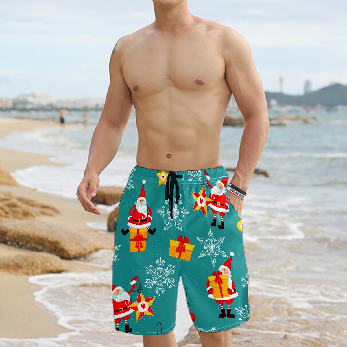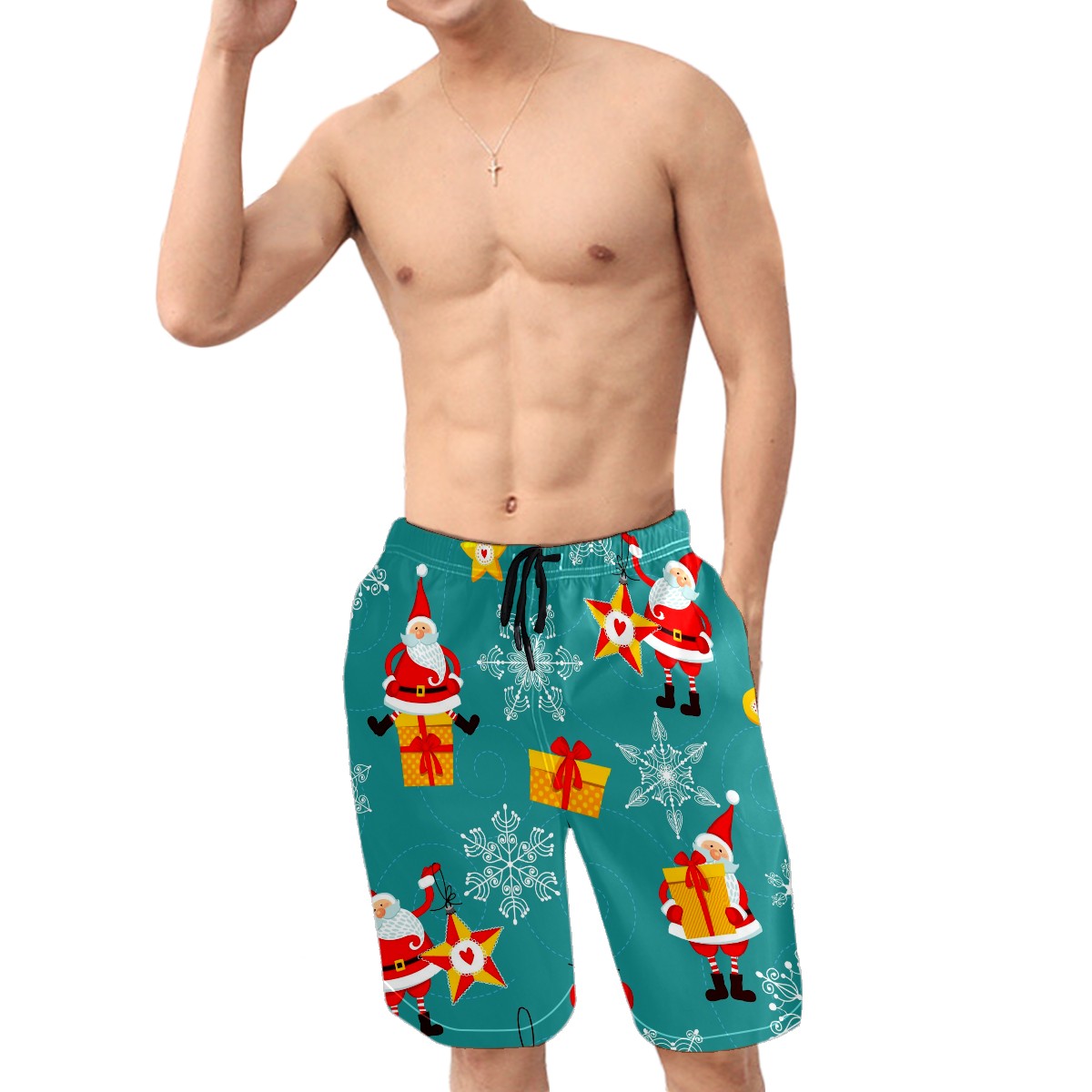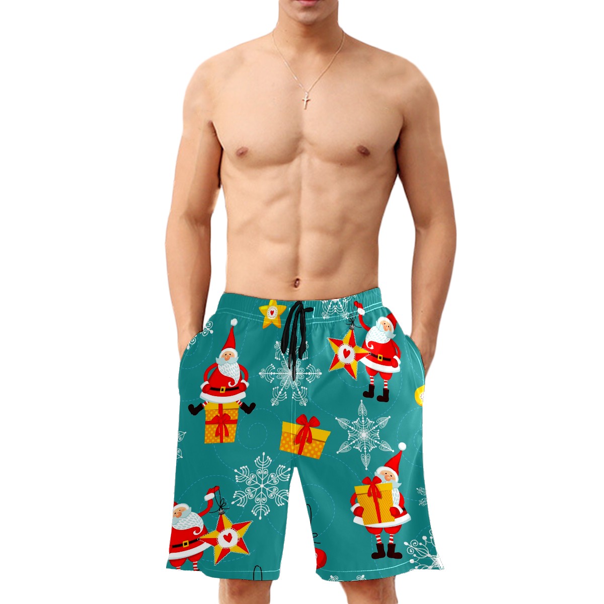 Men's Swim Trunks Christmas Santa Claus Boxer Briefs Trunks Underwear Shorts Swimming Beach Surfing Board Shorts S