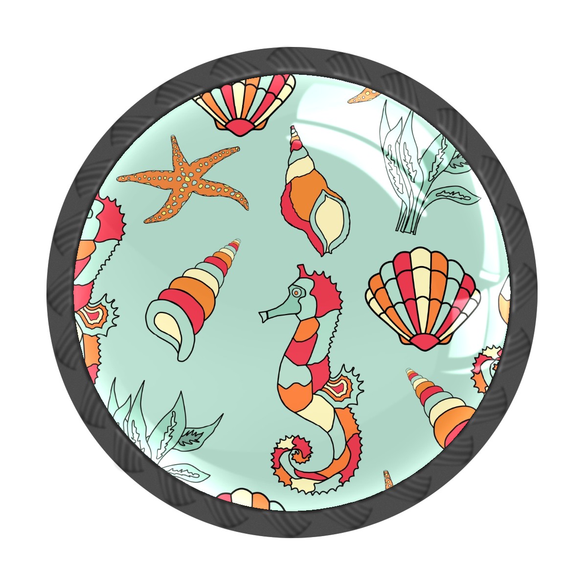 Round Cabinet Door Knobs Cartoon Seahorse Decorative Pulls Handles Cupboard Wardrobe Furniture Handles