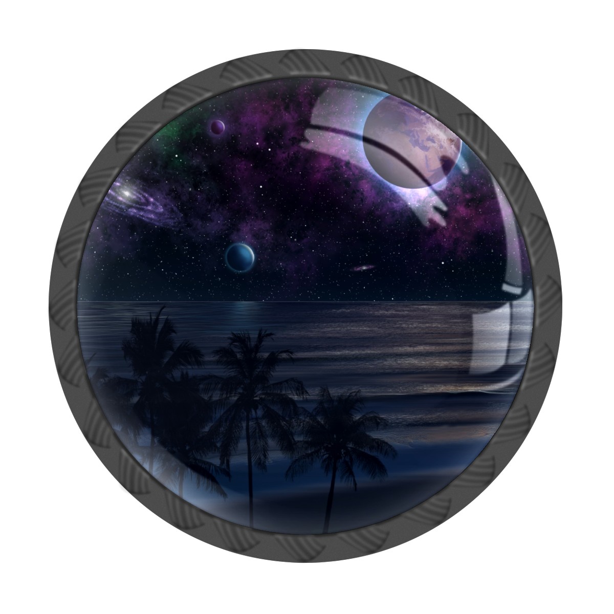 Round Cabinet Door Knobs Planets Pattern Decorative Pulls Handles Cupboard Wardrobe Furniture Handles