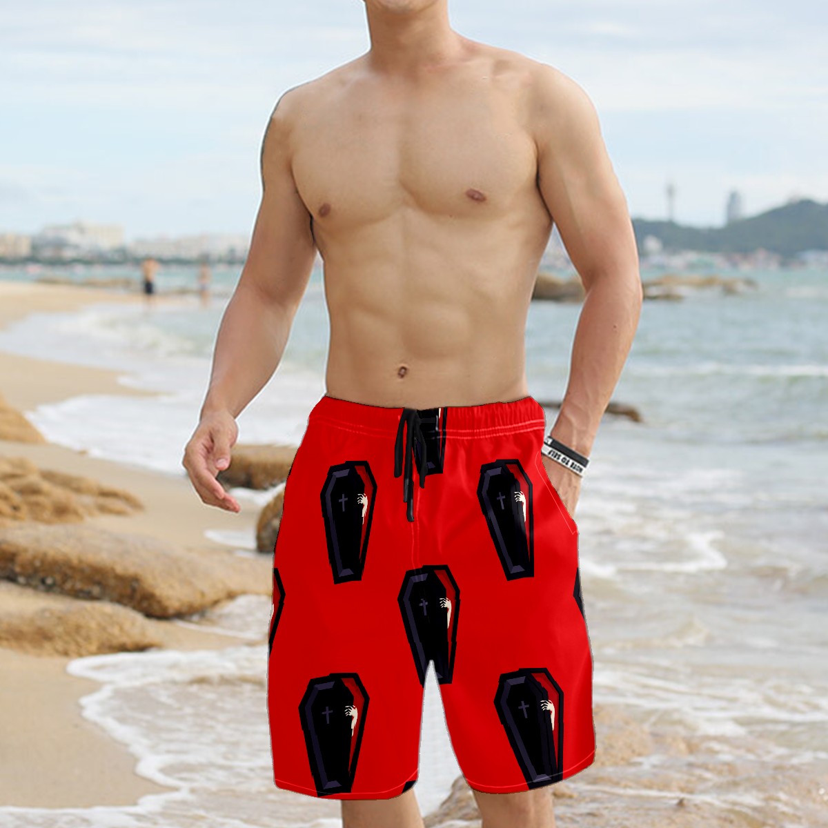 Men's Swim Trunks Halloween Coffin Boxer Briefs Trunks Underwear Shorts Swimming Beach Surfing Board Shorts S