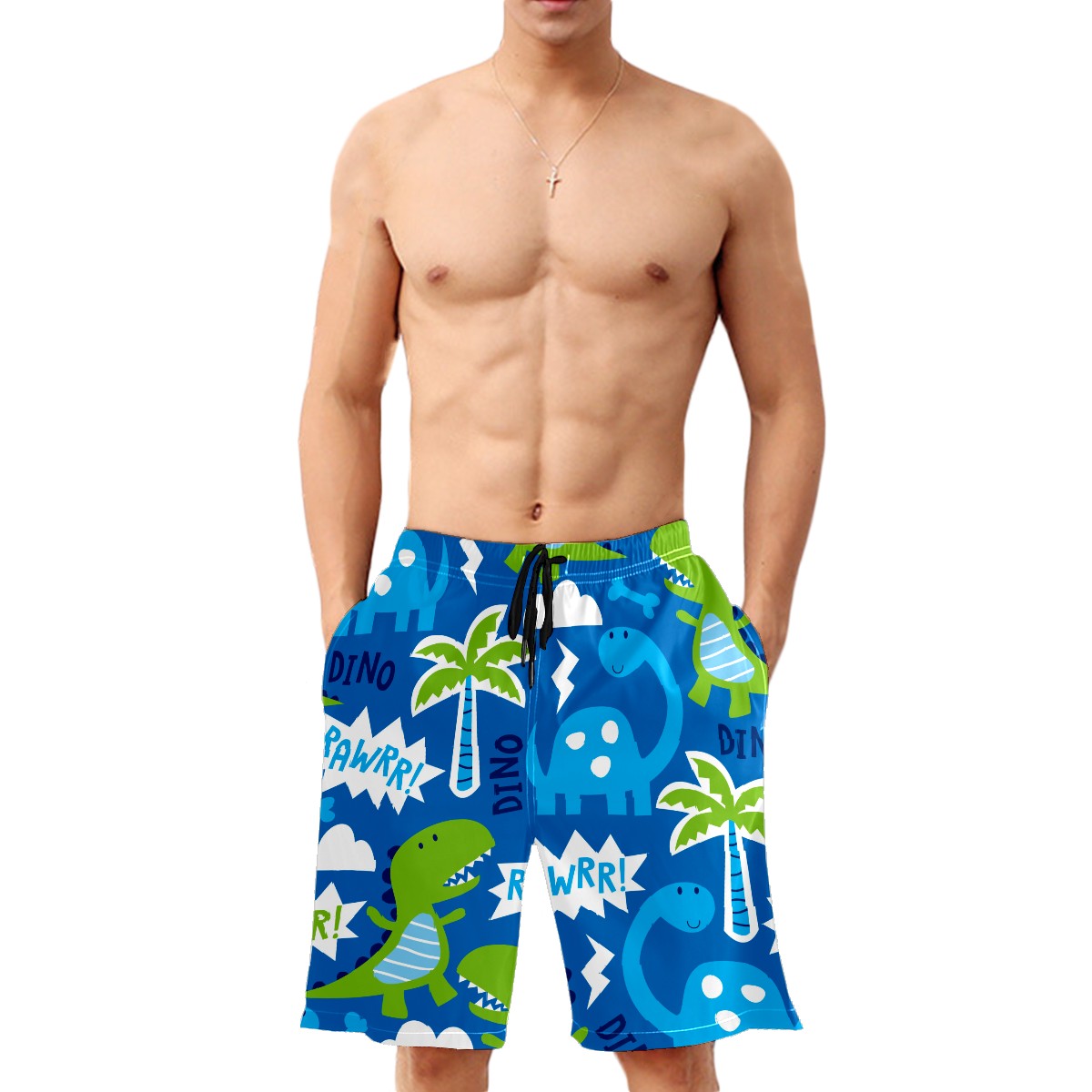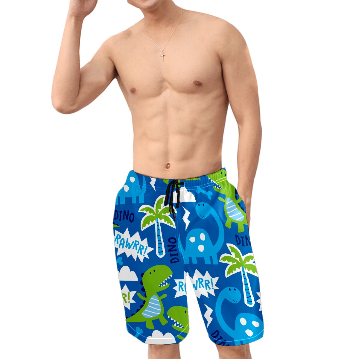 Men's Swim Trunks Dinosaurs Pattern Boxer Briefs Trunks Underwear Shorts Swimming Beach Surfing Board Shorts S