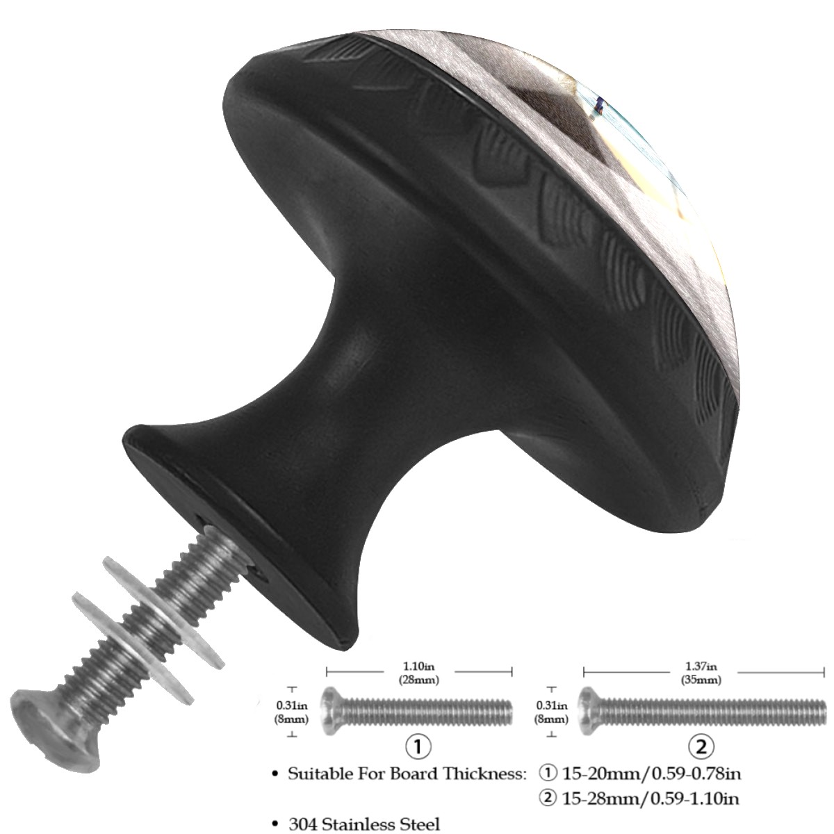 <p><b>Product Specification</b></p><p>Crystal Diameter: 30mm(1.18 inch)</p><p>Knob Height: 28mm(1.10 inch)</p><p>Base Diameter: 17mm(0.66 inch)</p><p>&nbsp;</p><p><b>Package Includes</b></p><p>4 Piece Drawer Pull Knob</p><p>4 Piece Screw</p><p>&nbsp;</p><p><b>Installation Steps</b></p><p>Find the position where you want to install on the board and drill a hole.Then pass through the screw from the back of board anf thread tight to the knob.</p>