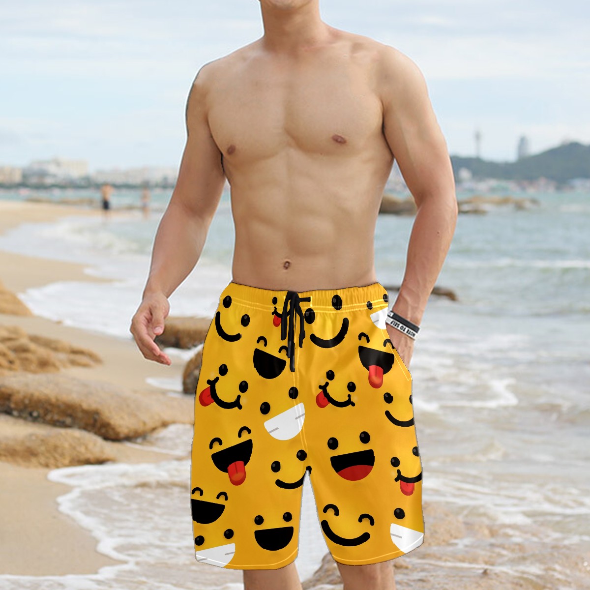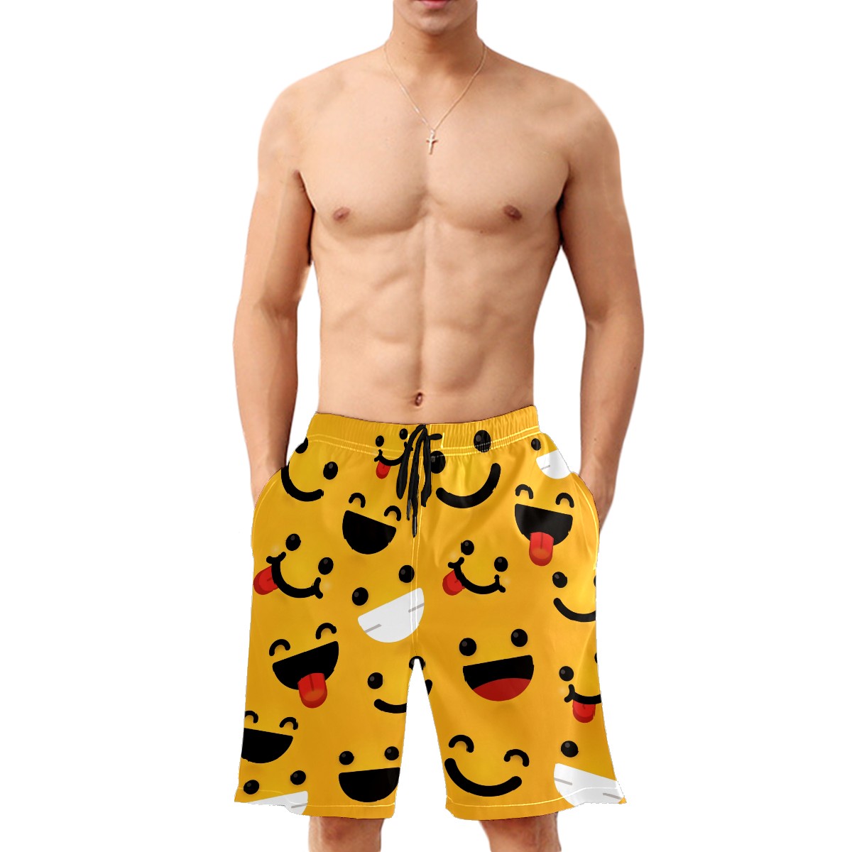 Men's Swim Trunks Happy Face Boxer Briefs Trunks Underwear Shorts Swimming Beach Surfing Board Shorts S