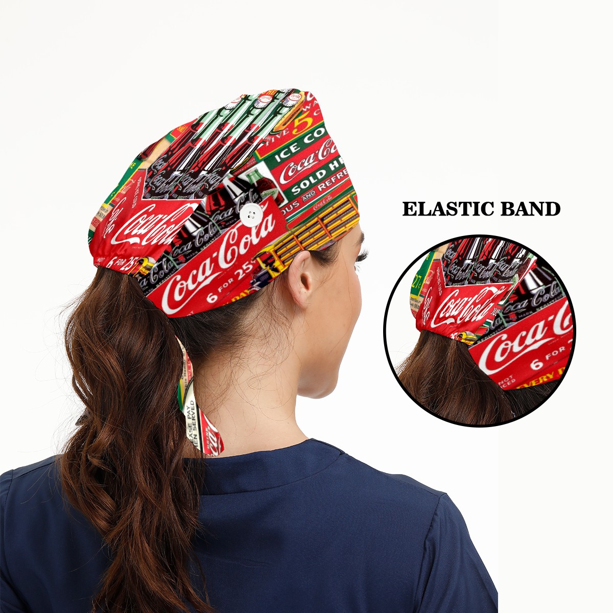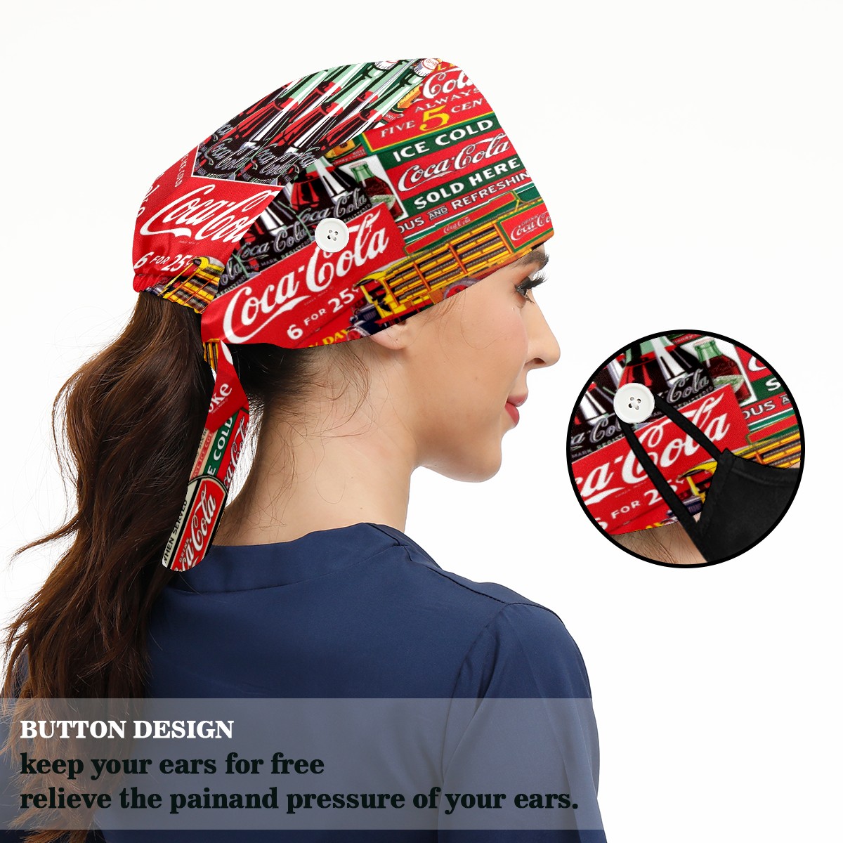 Fashion Working Cap Button and Sweatband Adjustable Elastic Classic Coca Cola Bottle Truck Head Cover Hair Tie Back Work Hats for Women Men