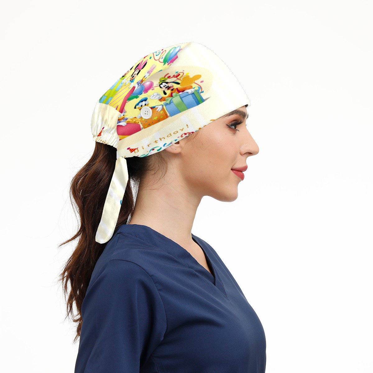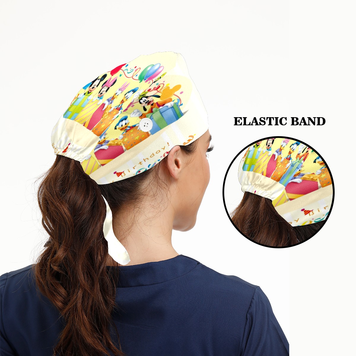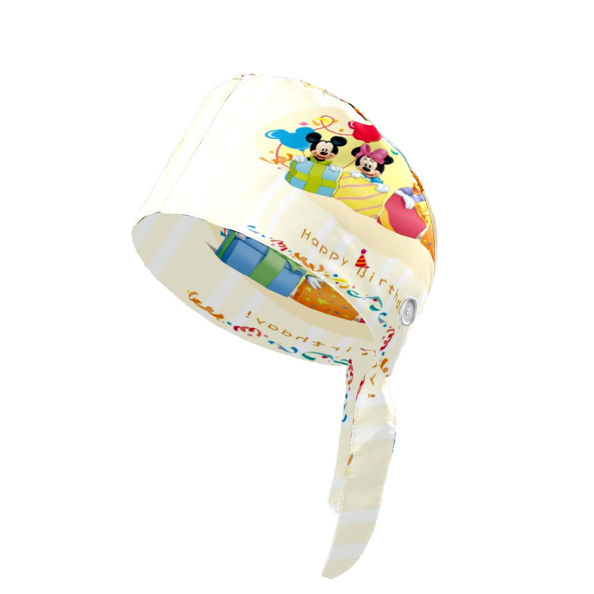 Fashion Working Cap Button and Sweatband Adjustable Elastic Mickey Mouse Minnie Duck Happy Birthday Head Cover Hair Tie Back Work Hats for Women Men