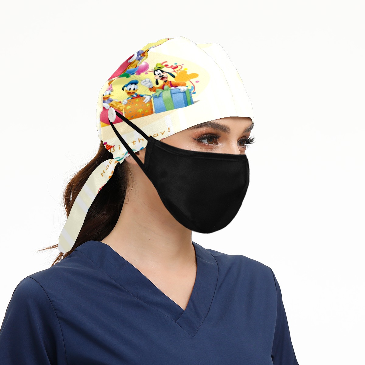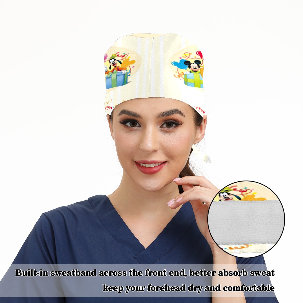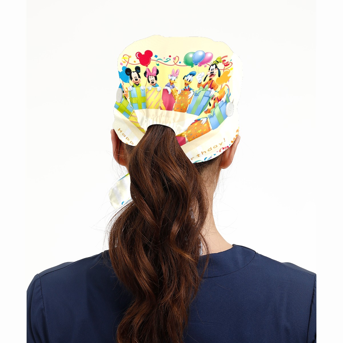 Fashion Working Cap Button and Sweatband Adjustable Elastic Mickey Mouse Minnie Duck Happy Birthday Head Cover Hair Tie Back Work Hats for Women Men