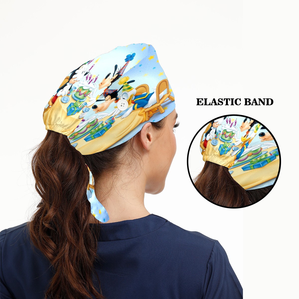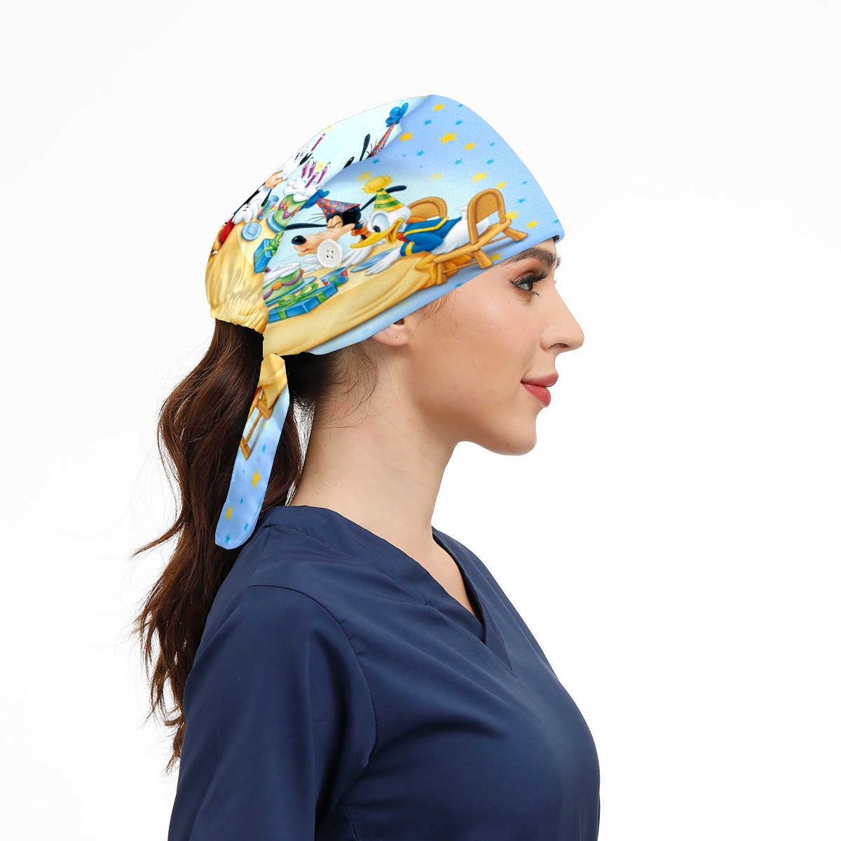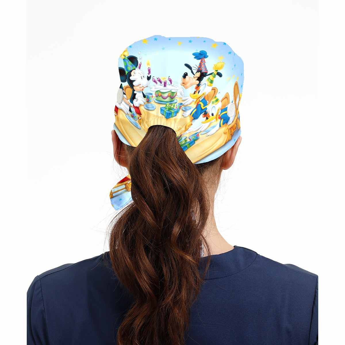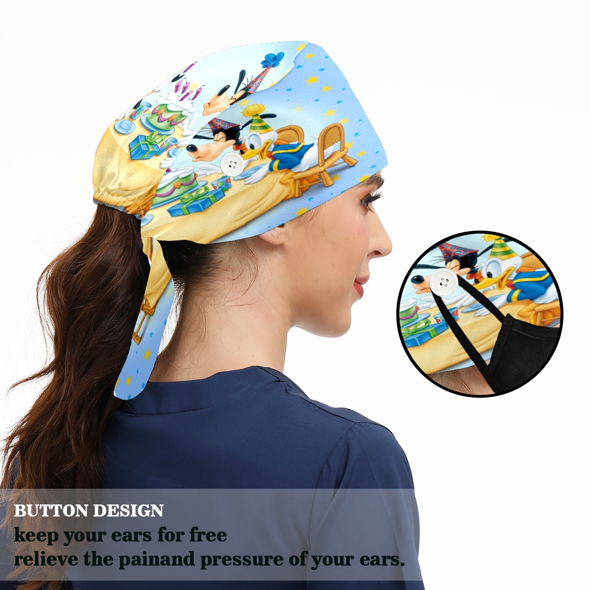 Fashion Working Cap Button and Sweatband Adjustable Elastic Mickey Mouse Happy Birthday Head Cover Hair Tie Back Work Hats for Women Men