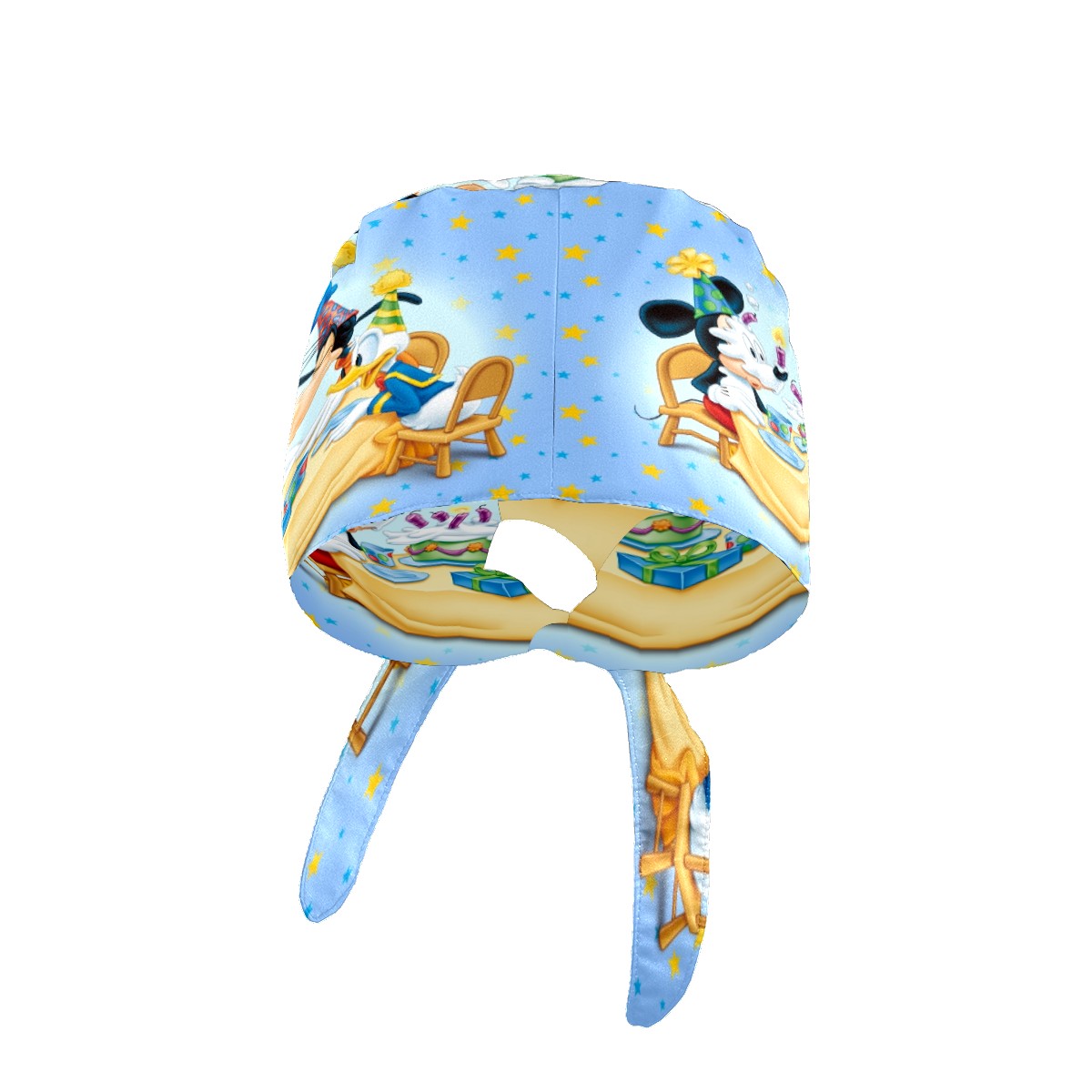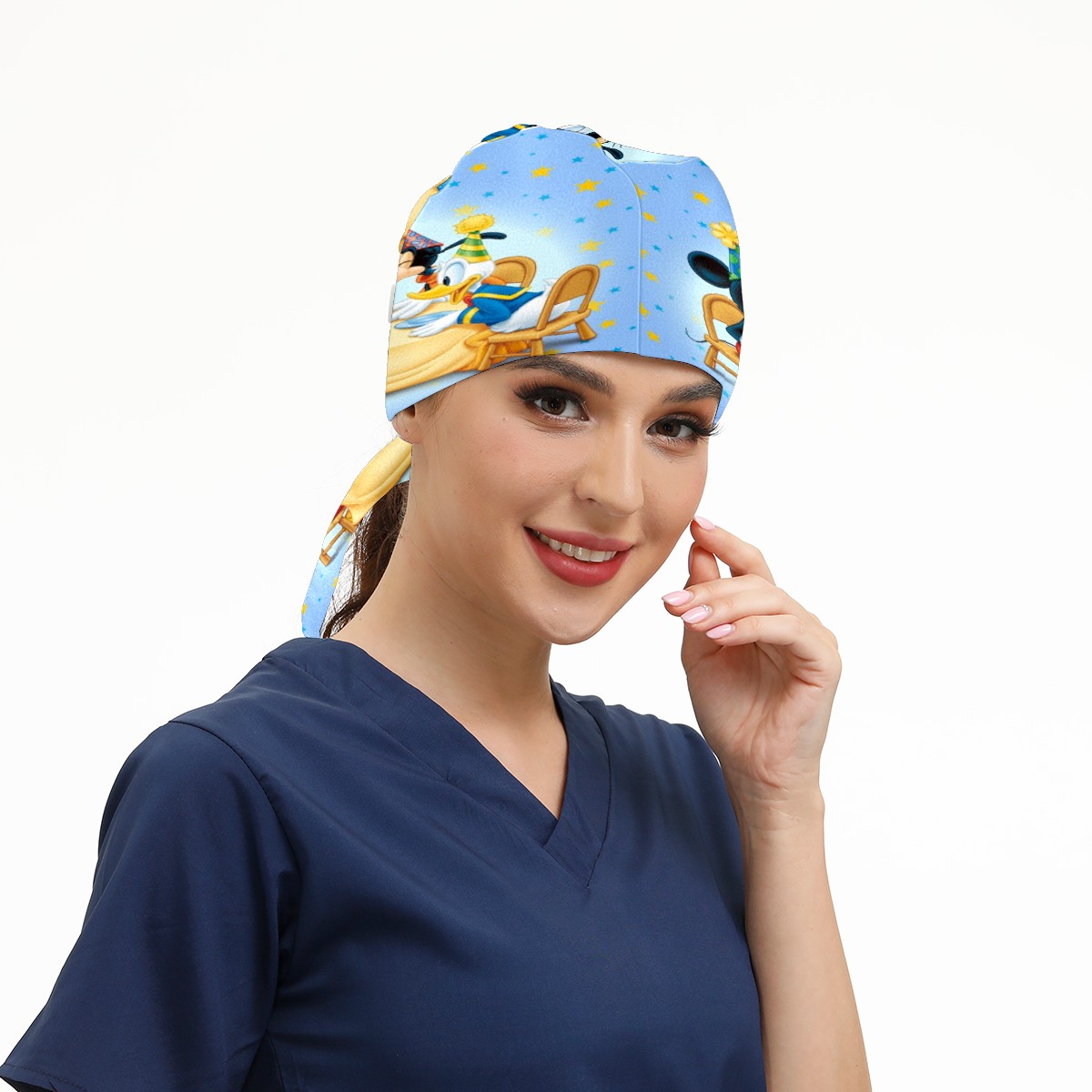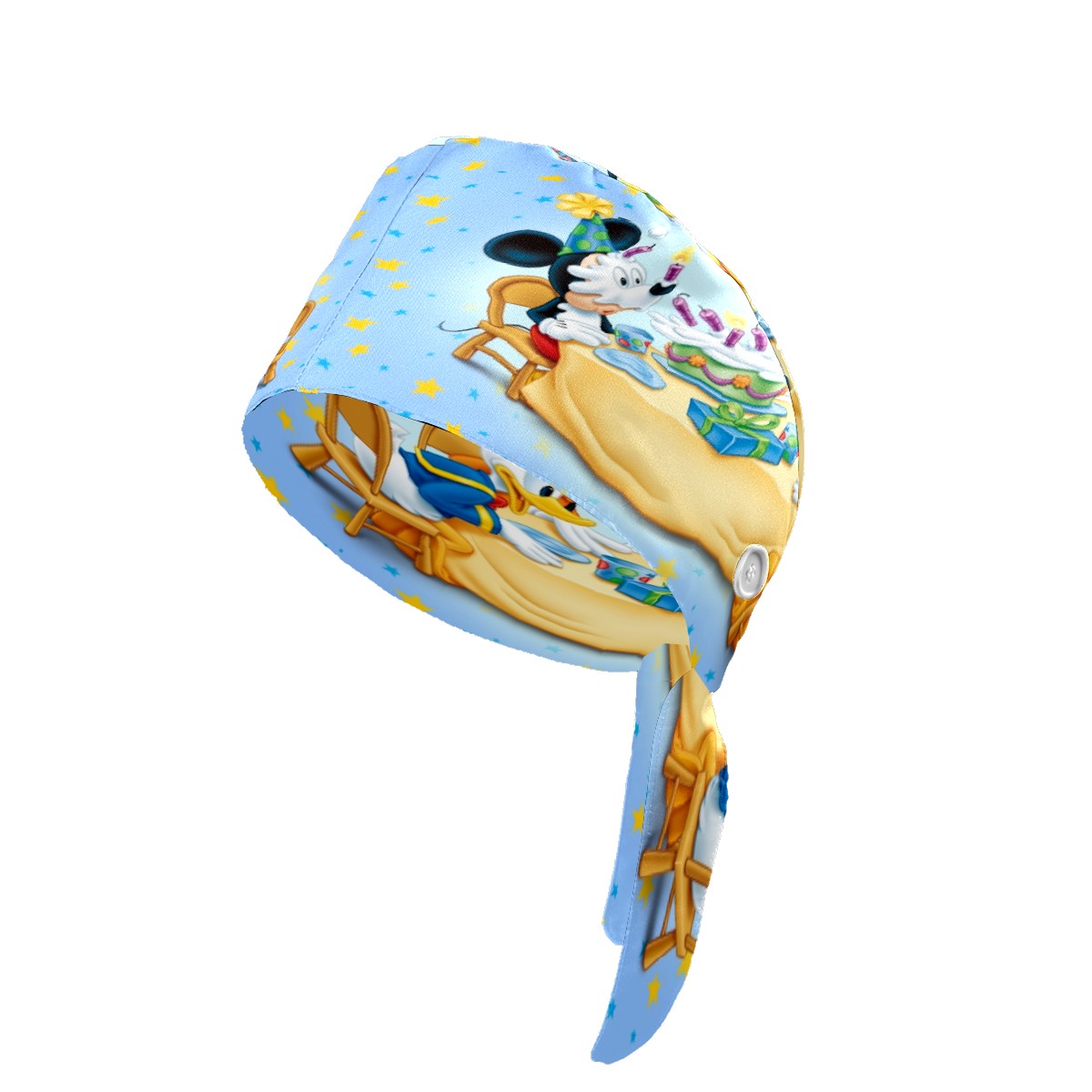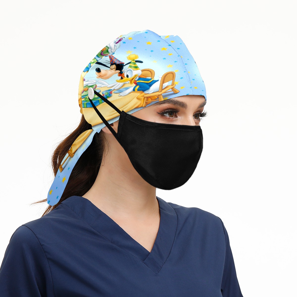 Fashion Working Cap Button and Sweatband Adjustable Elastic Mickey Mouse Happy Birthday Head Cover Hair Tie Back Work Hats for Women Men