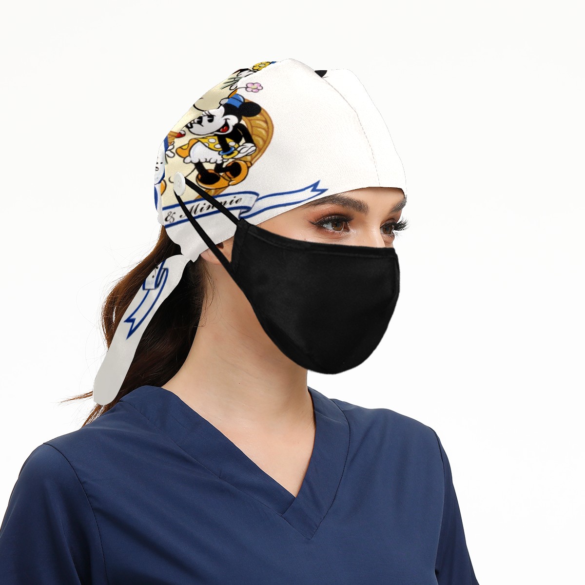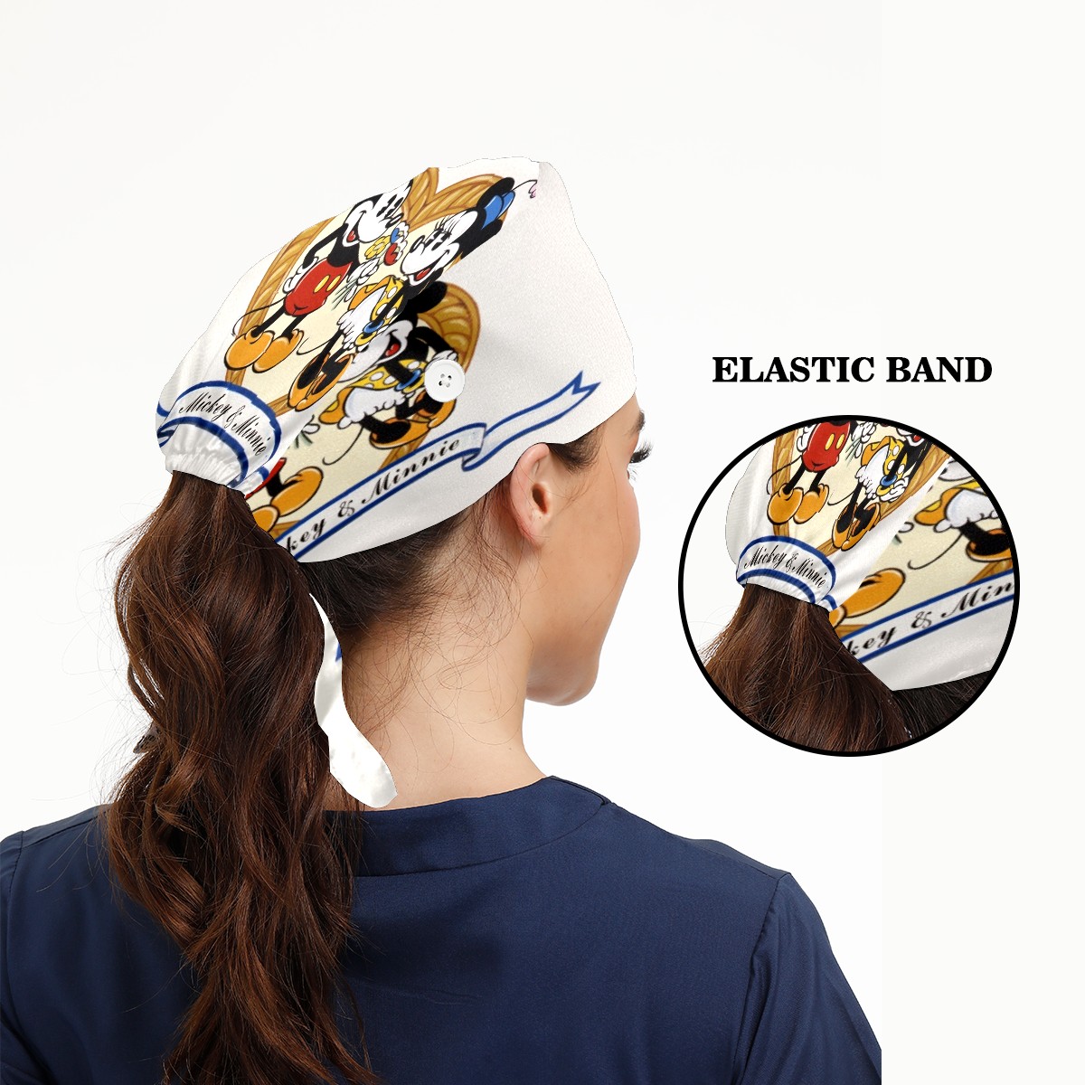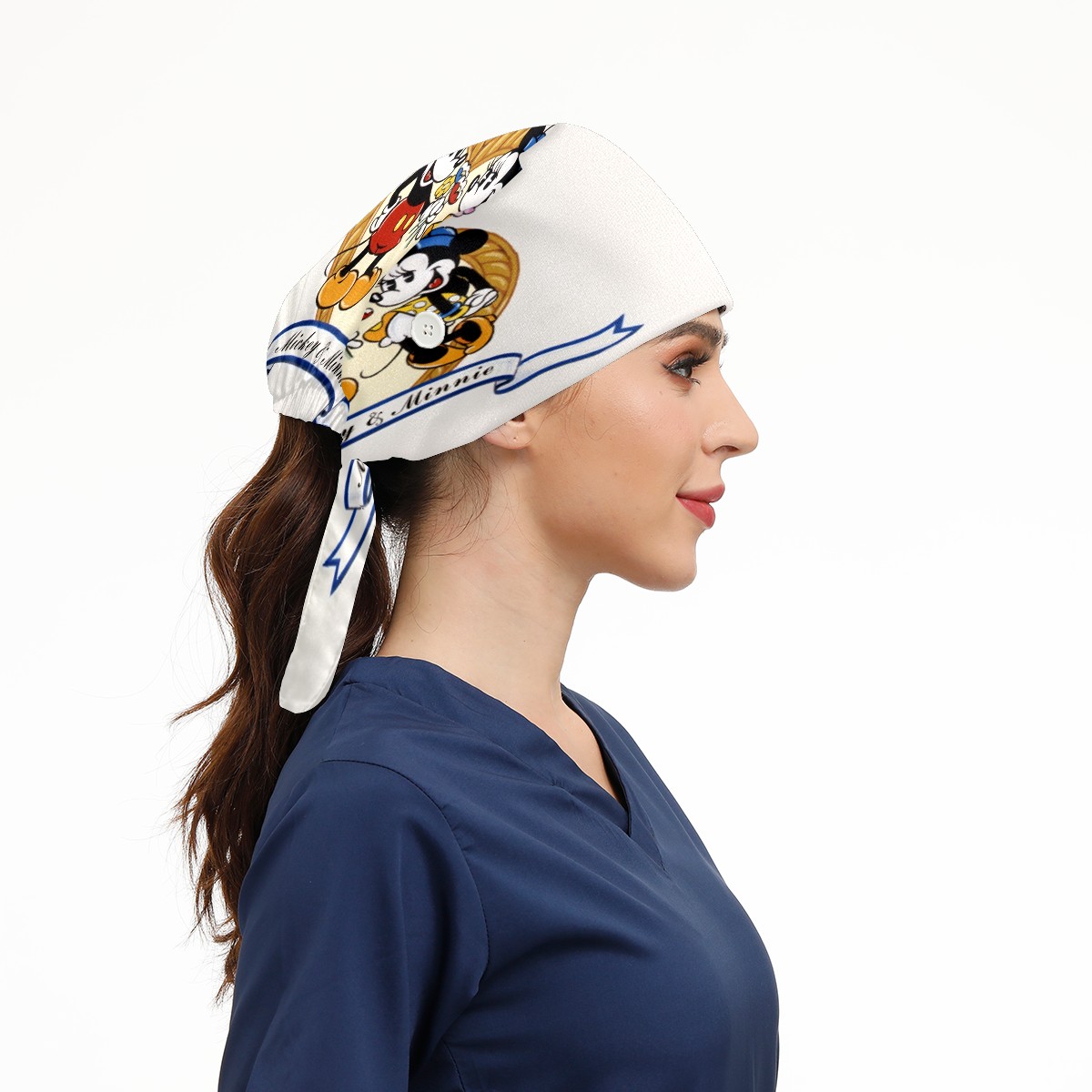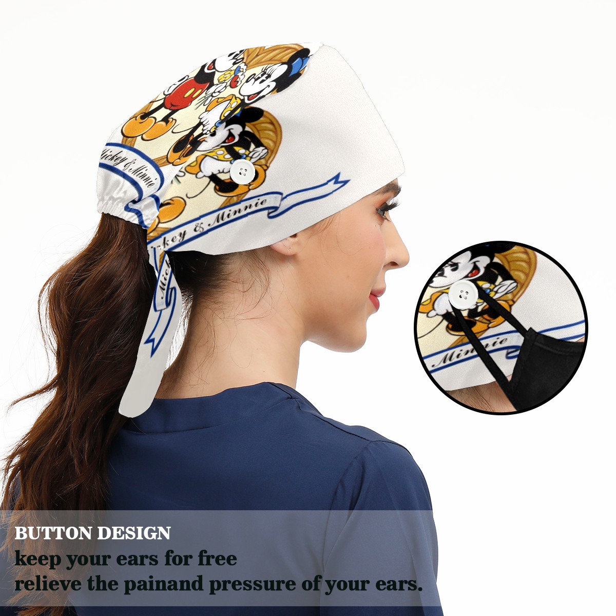 Fashion Working Cap Button and Sweatband Adjustable Elastic Mickey And Minnie Mouse Head Cover Hair Tie Back Work Hats for Women Men