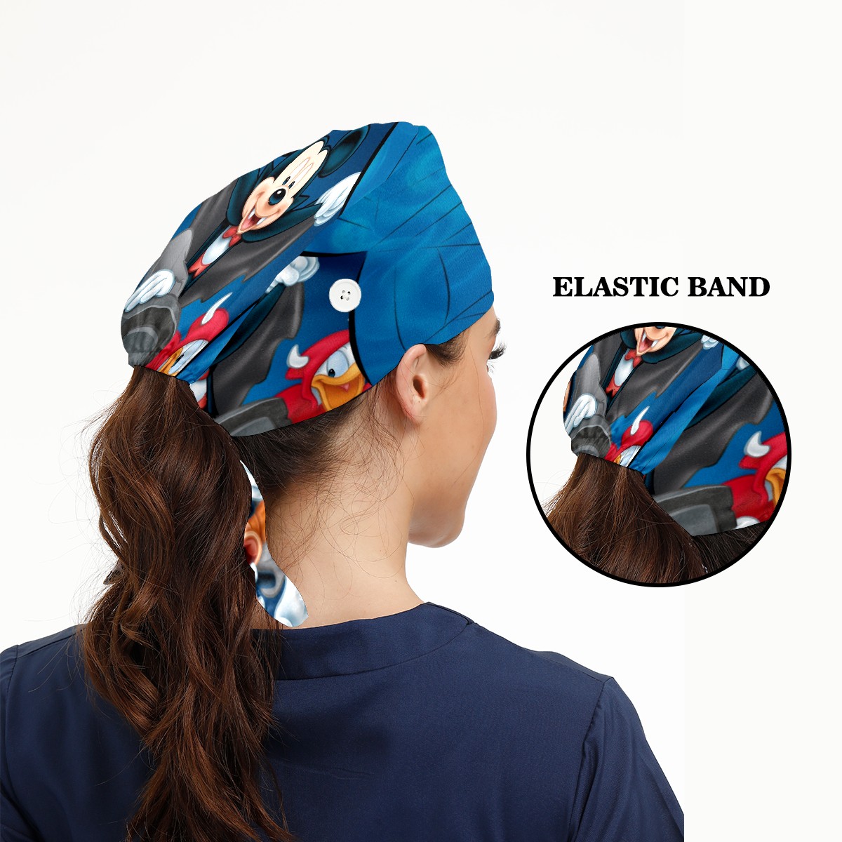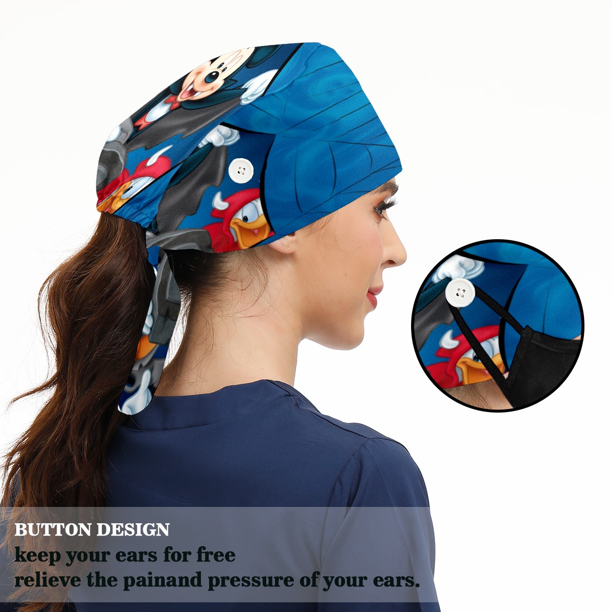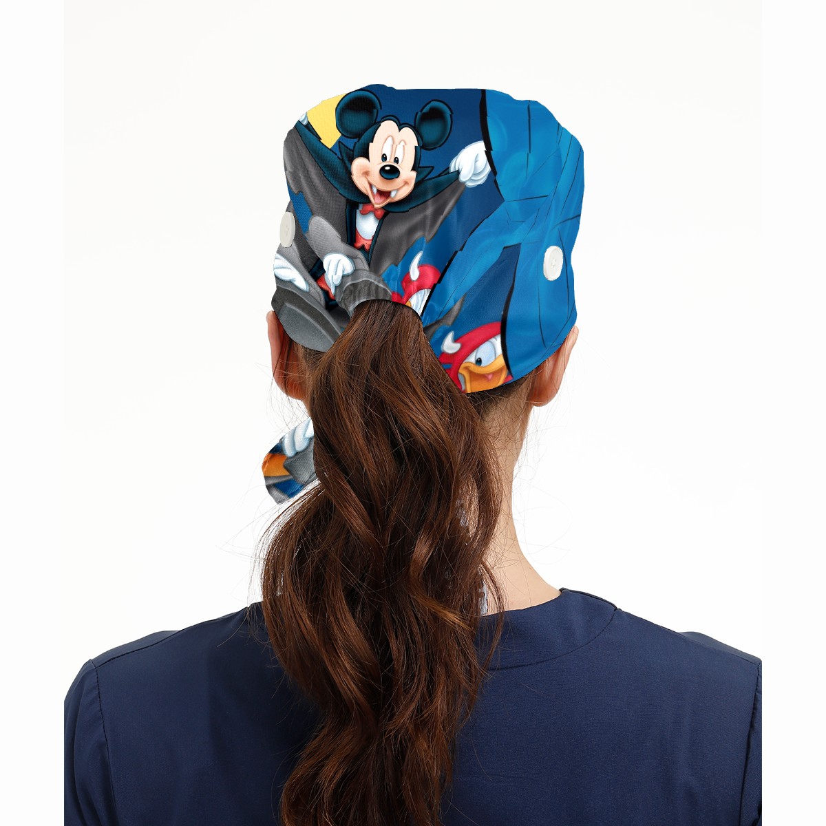 Fashion Working Cap Button and Sweatband Adjustable Elastic Halloween Mickey Mouse Head Cover Hair Tie Back Work Hats for Women Men