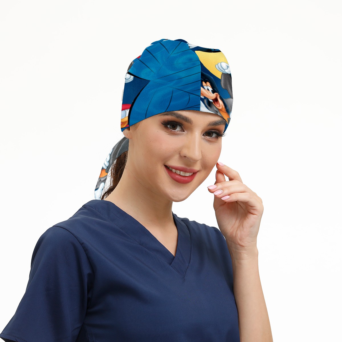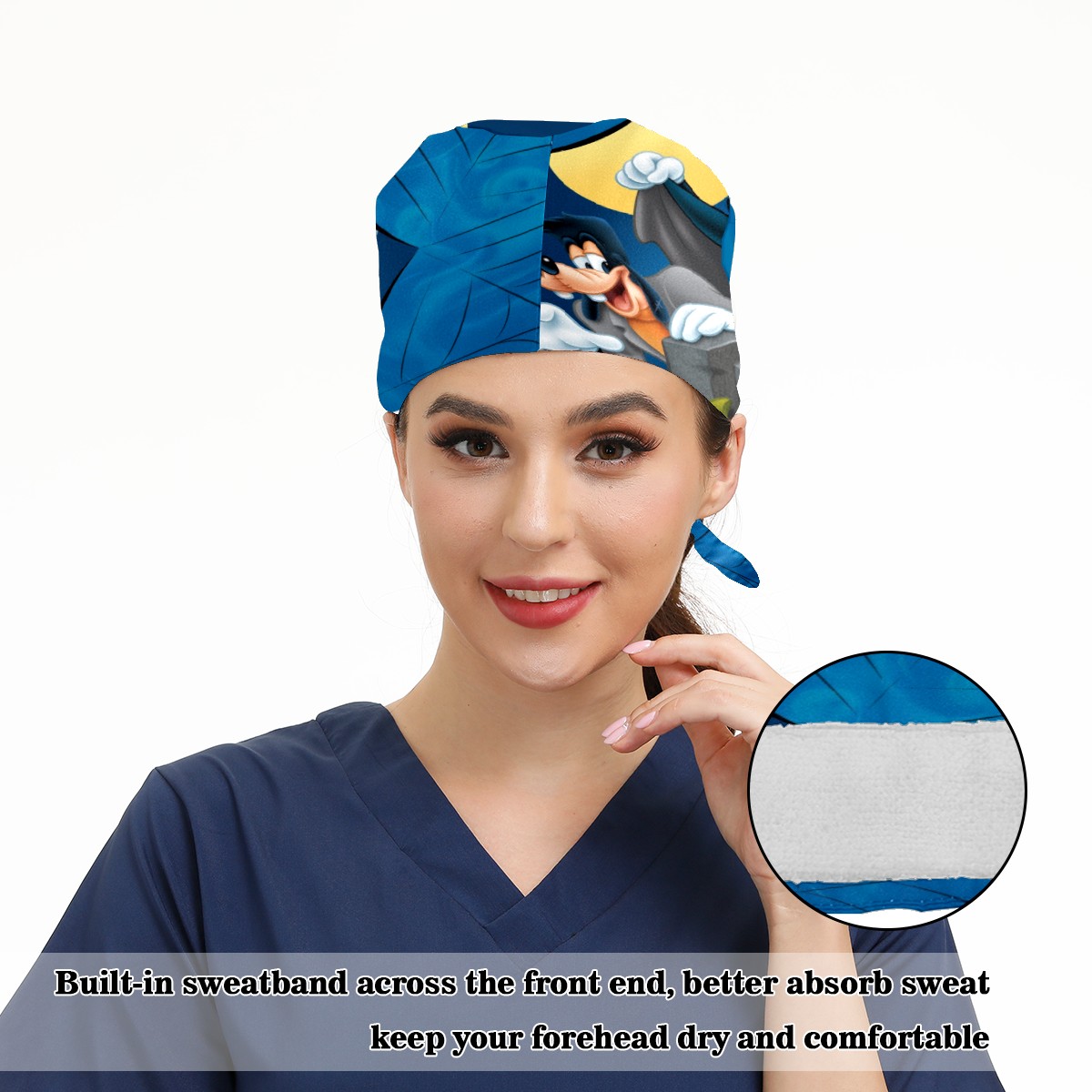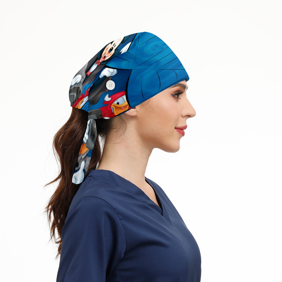 Fashion Working Cap Button and Sweatband Adjustable Elastic Halloween Mickey Mouse Head Cover Hair Tie Back Work Hats for Women Men