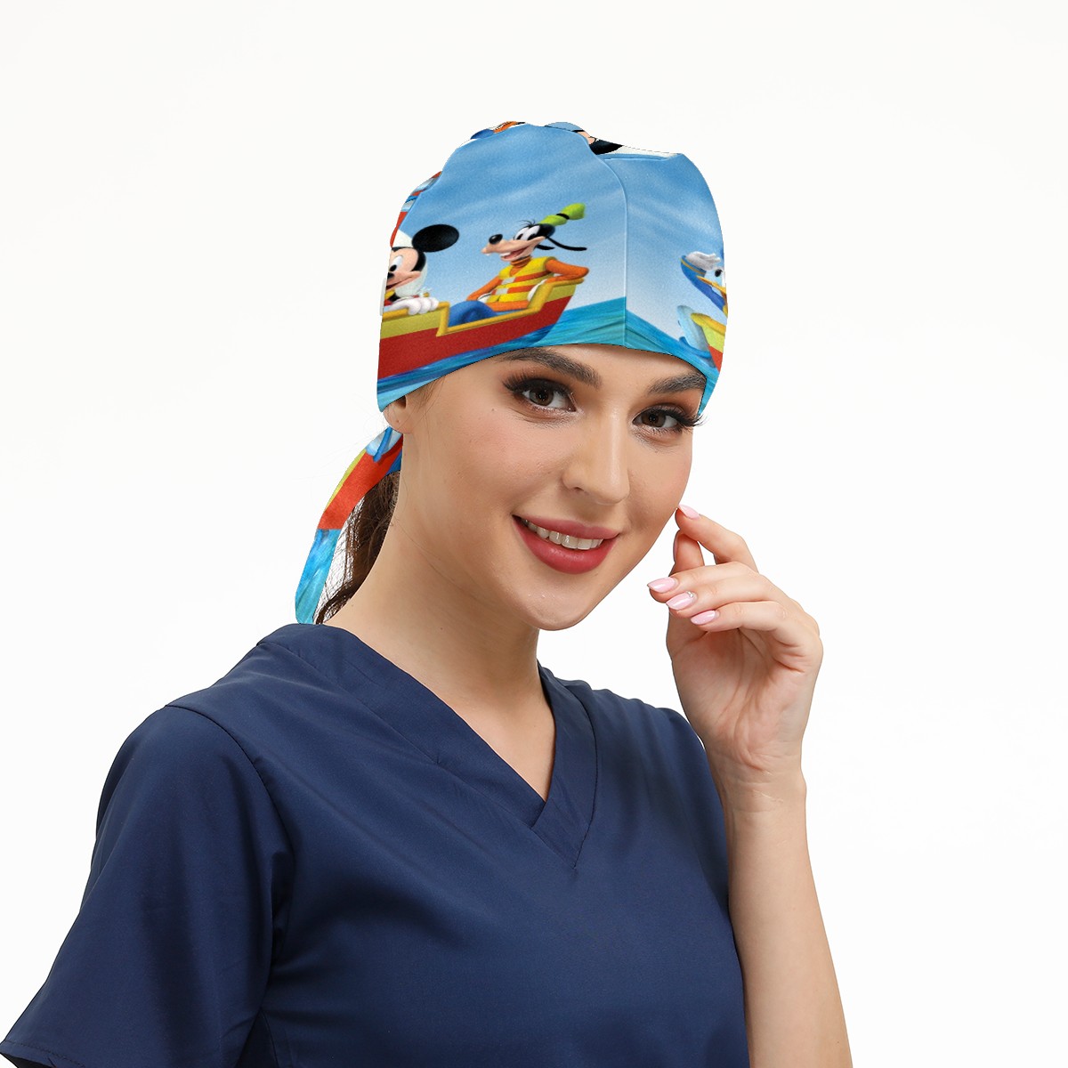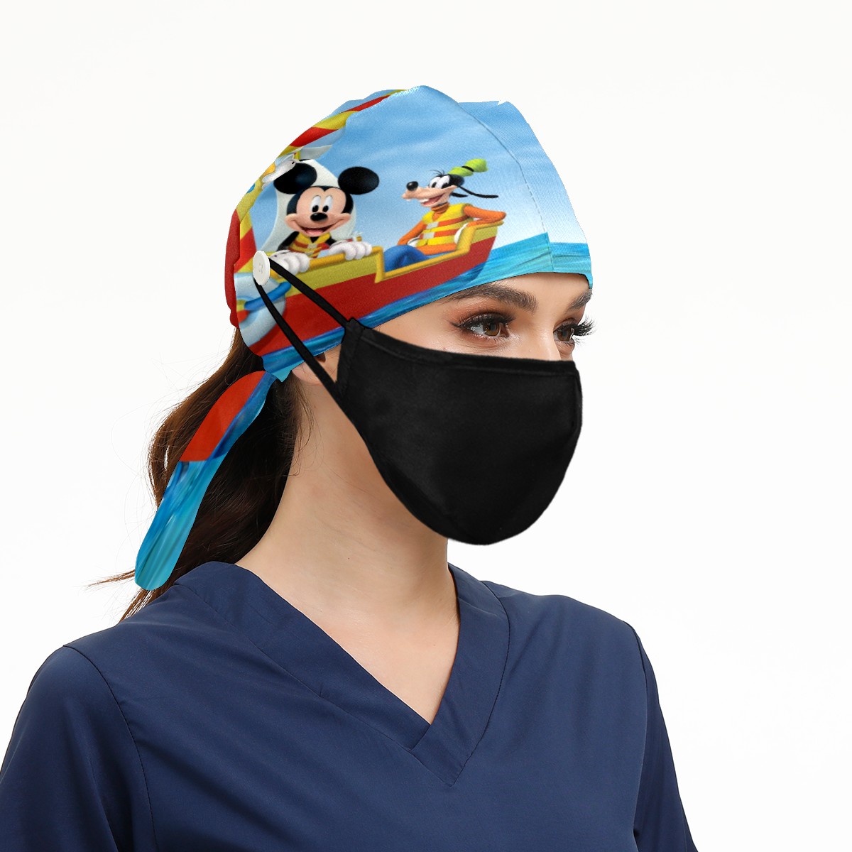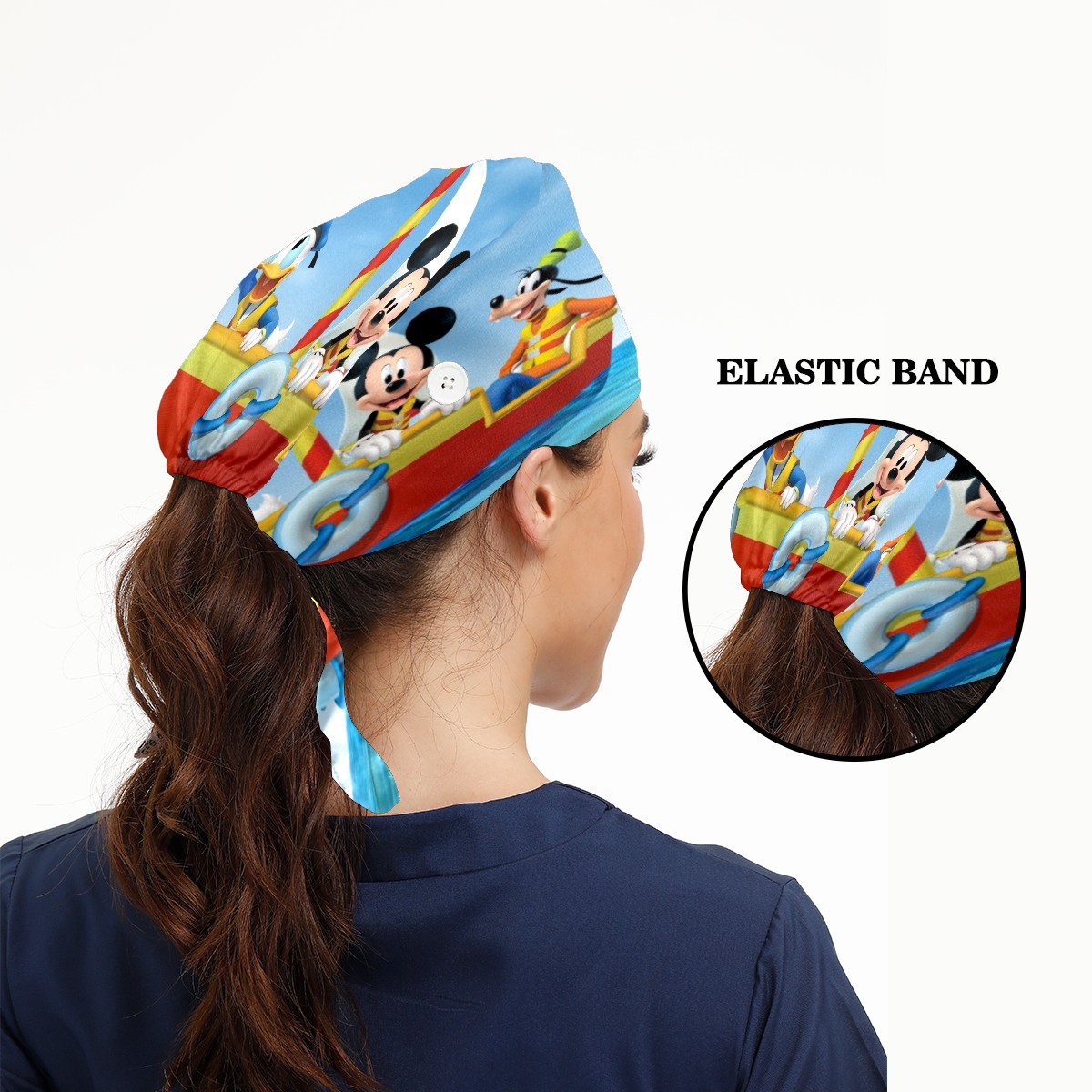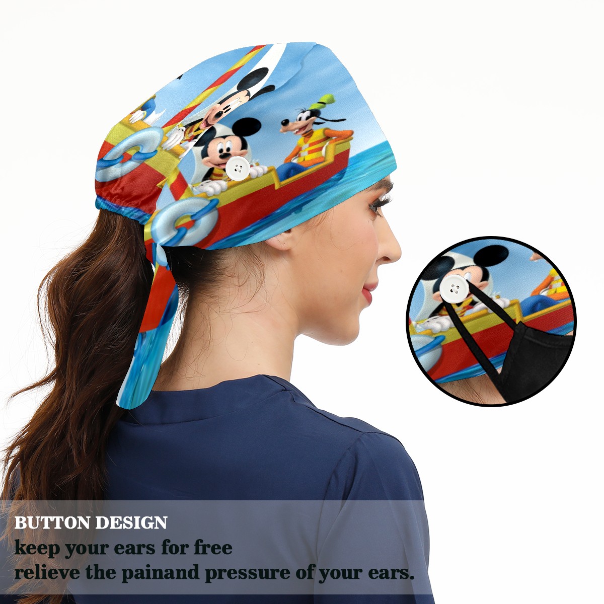 Fashion Working Cap Button and Sweatband Adjustable Elastic Mickey Mouse Friends Head Cover Hair Tie Back Work Hats for Women Men