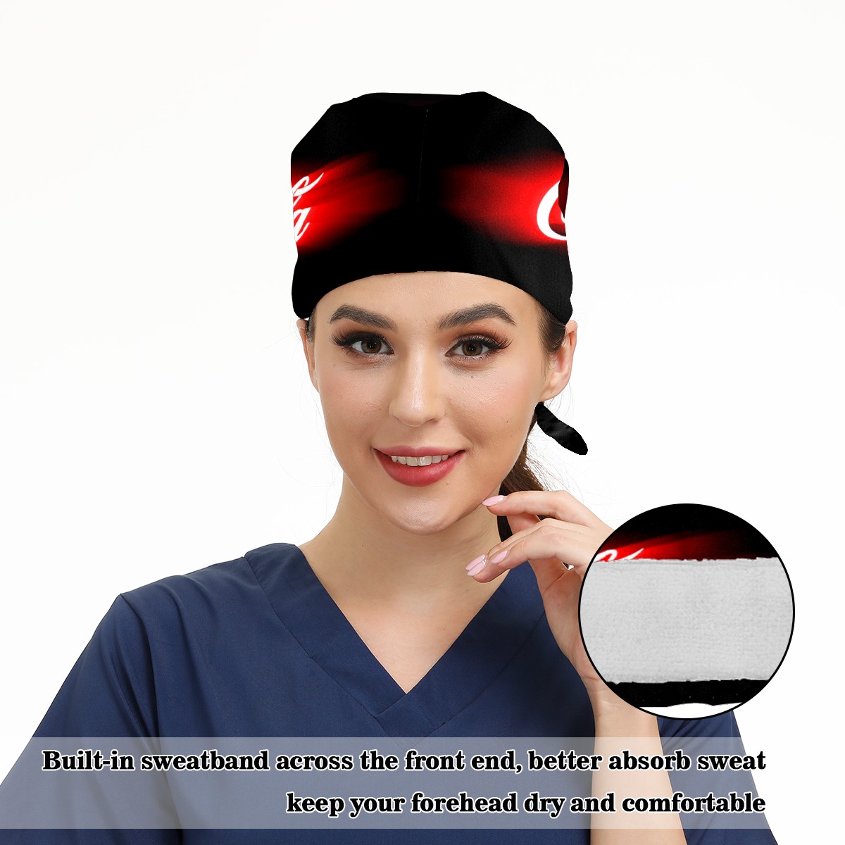 Fashion Working Cap Button and Sweatband Adjustable Elastic Neon Coca-Cola Head Cover Hair Tie Back Work Hats for Women Men