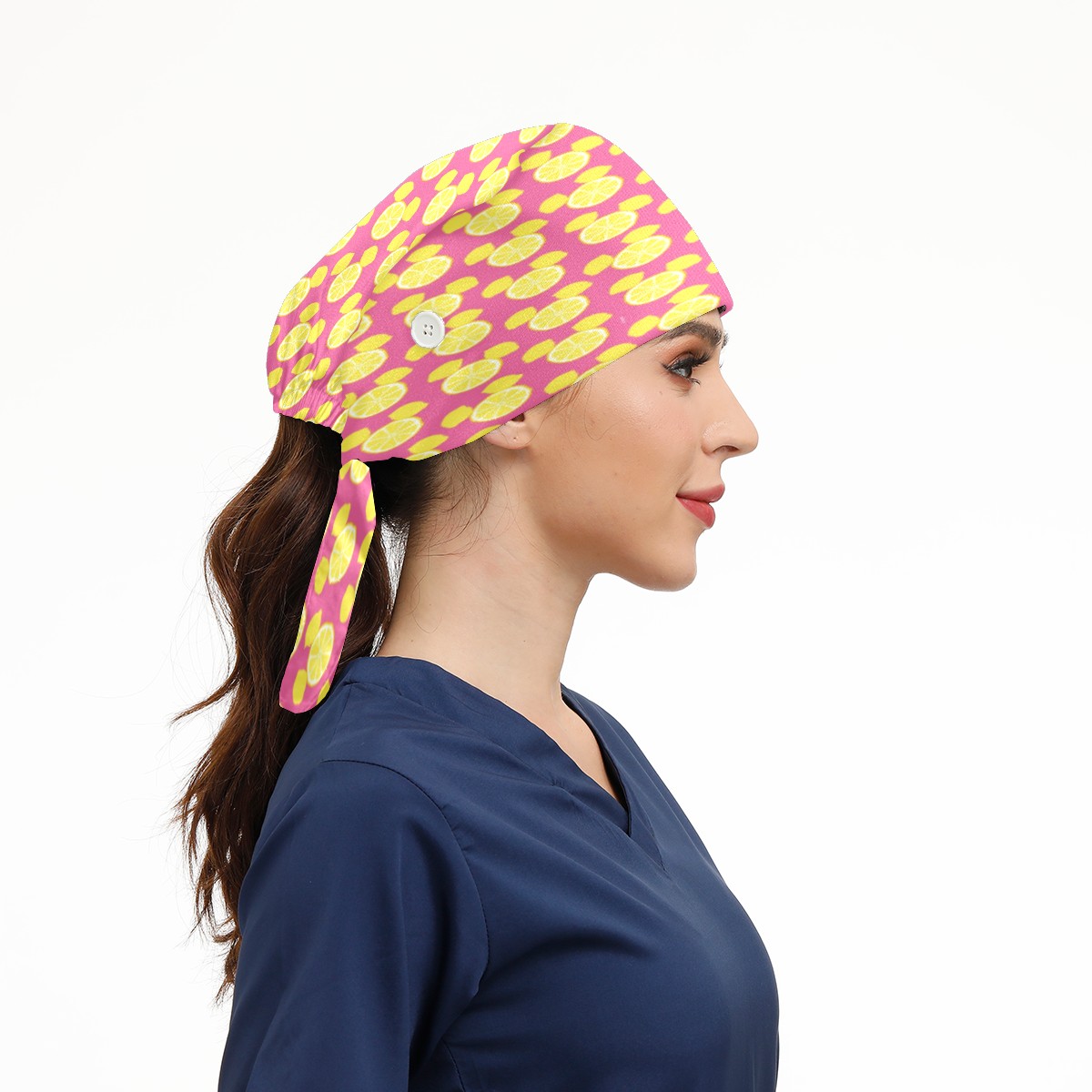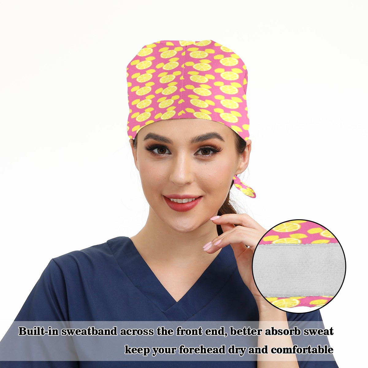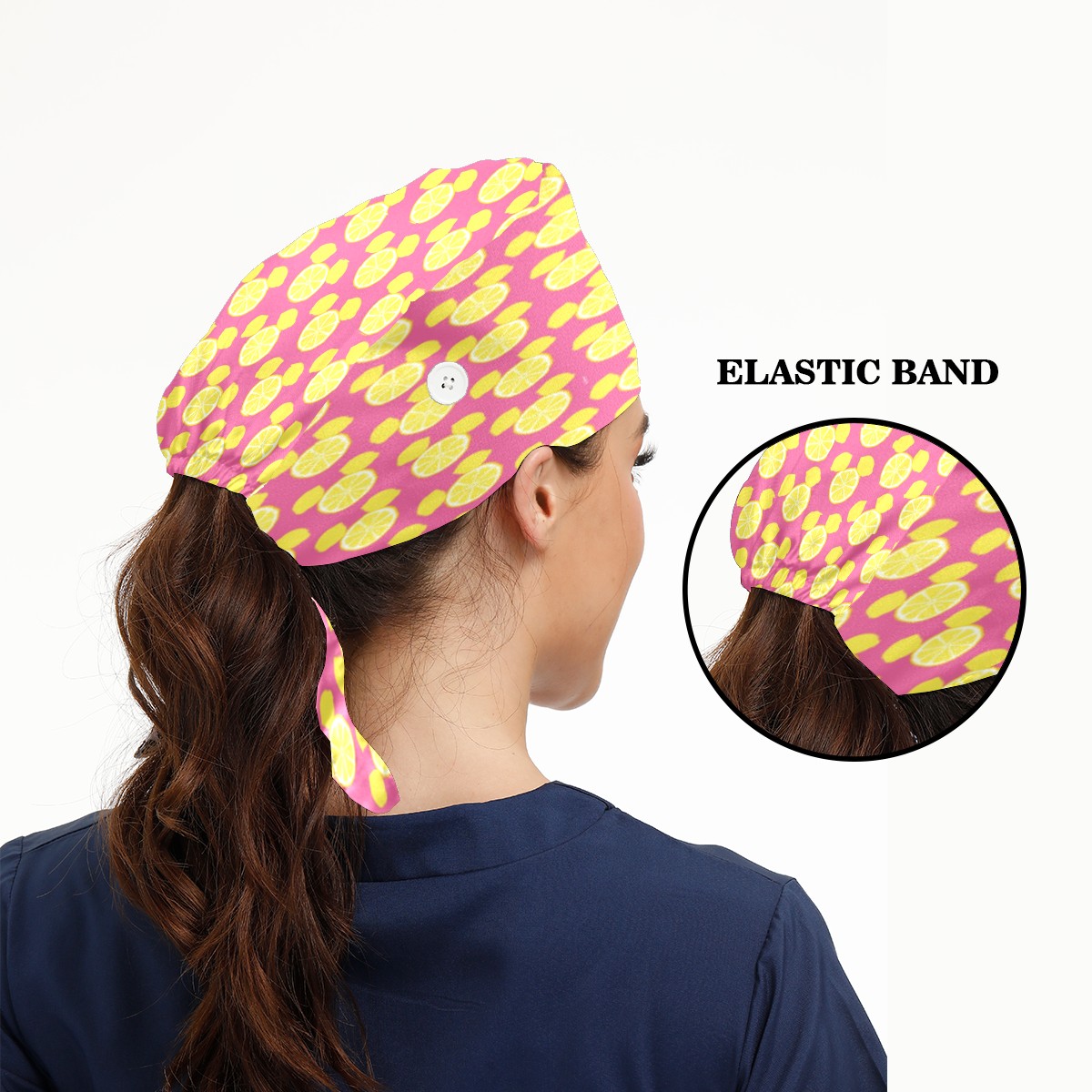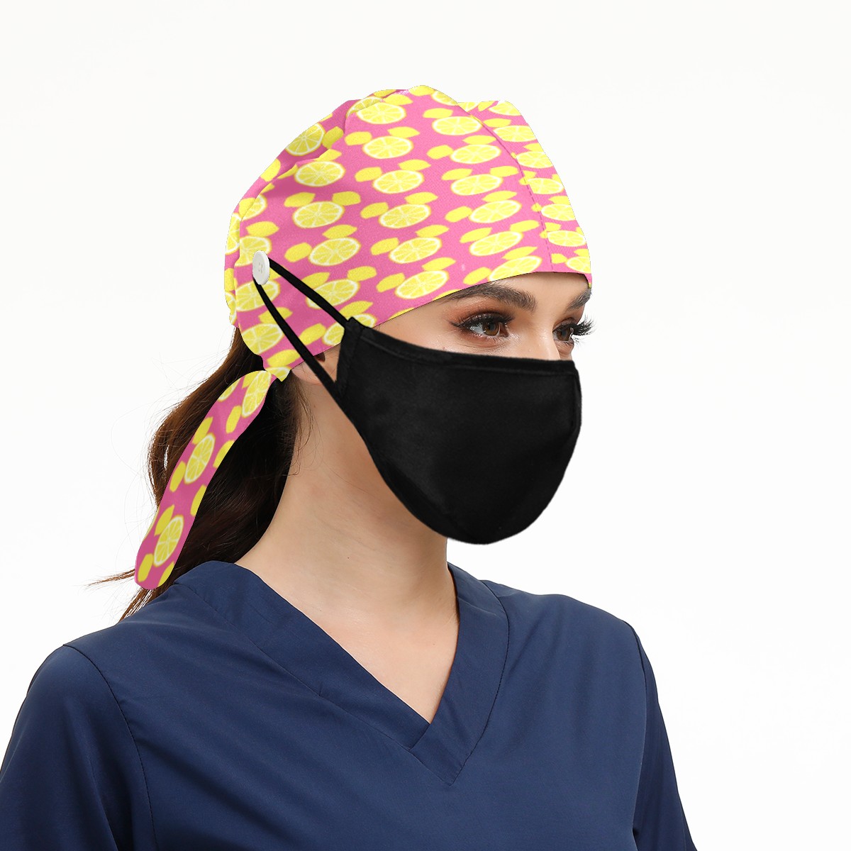 Fashion Working Cap Button and Sweatband Adjustable Elastic Mickey Mouse Lemon Icon Head Cover Hair Tie Back Work Hats for Women Men