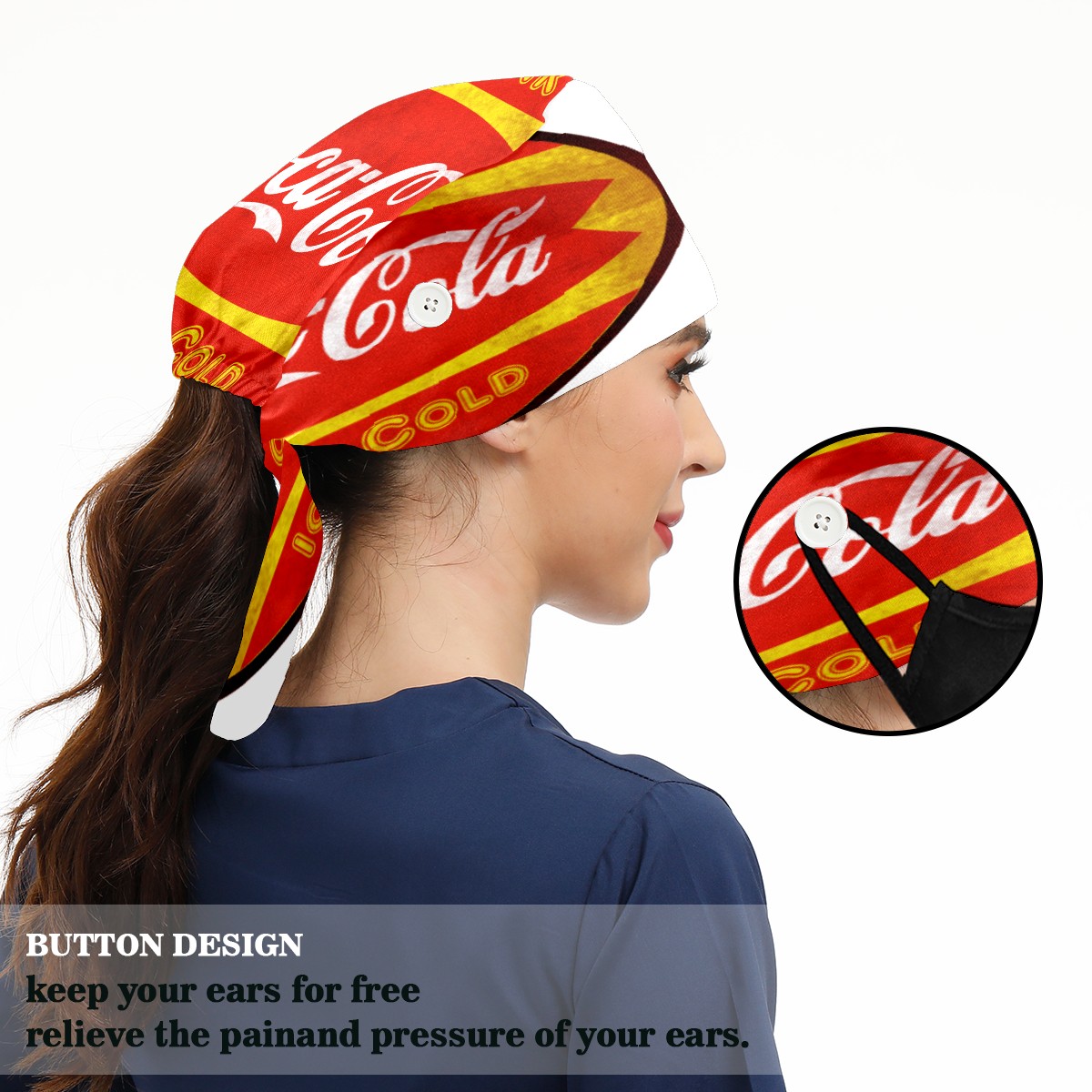 • <p>Women and Mens head cover with Sweatband and Button</p><p>Material&nbsp;: 50% cotton+50% polyester</p><p>Size:&nbsp;One size fits most,&nbsp;suitable for both men and women.</p><p>Working Cap with Buttons Design:special&nbsp;design with buttons to protect ears for those who are wearing ma-sk. These new styles hats will allow you to put the straps around the buttons instead of your ears, make you feel more comfortable.</p><p>Sweat-absorbent towel cloth inside: Built-in&nbsp;100% cotton sweatband, keep the forehead clean after long time working.</p><p>Widely occasion: Widely used in beauty spa, house cleaning, cooking, sleeping, or for cos-play&nbsp;party.</p><p>Lovely pattern: lovely&nbsp;3D printed&nbsp;pattern,&nbsp;it's perfect for gift to you family&nbsp;and friends.</p>