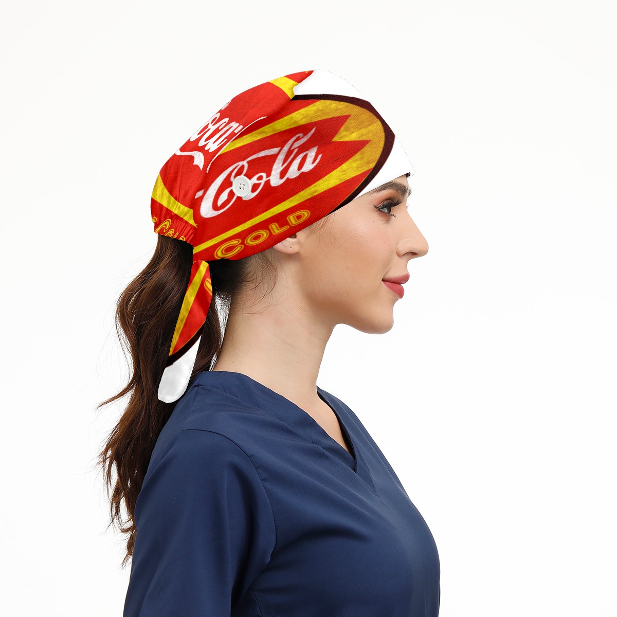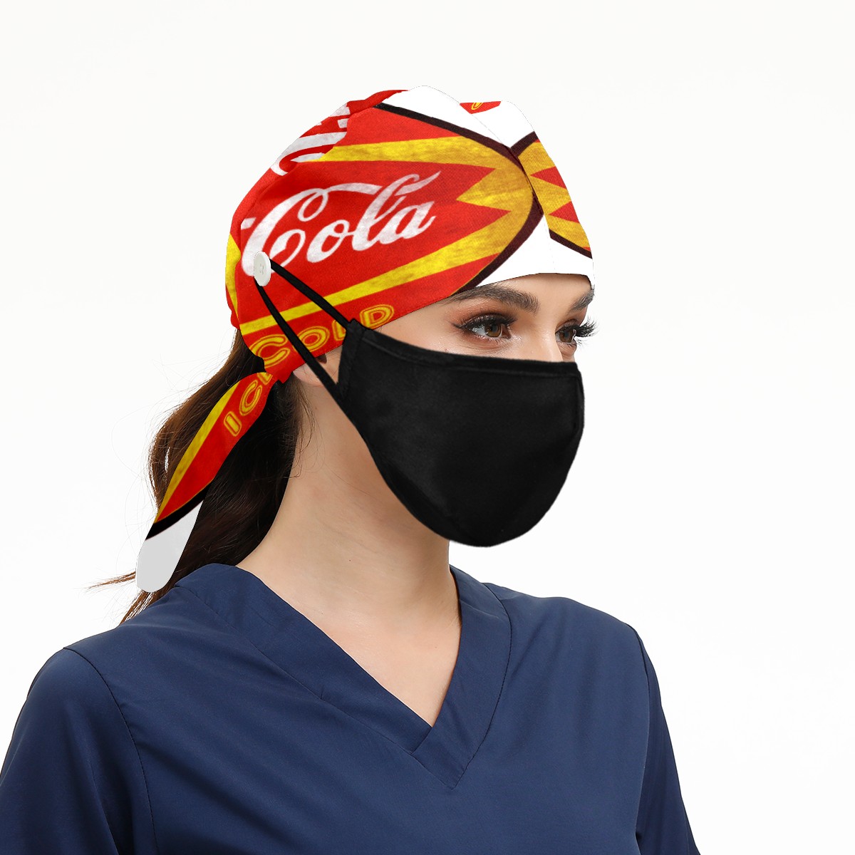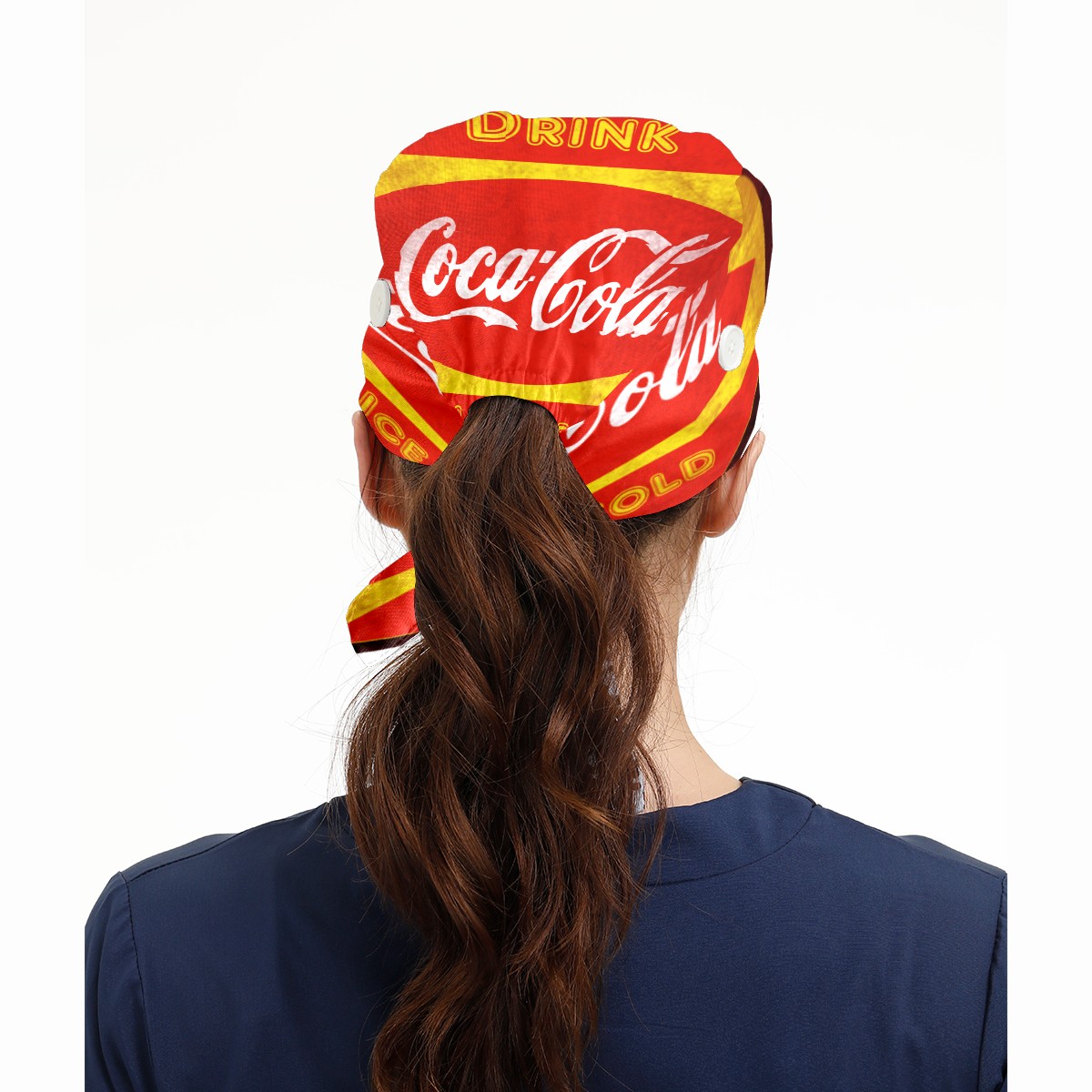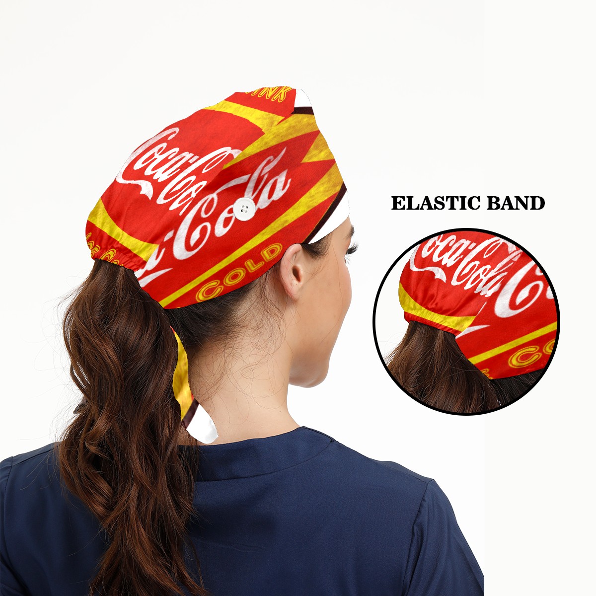Fashion Working Cap Button and Sweatband Adjustable Elastic Vintage Coca-Cola Sign Head Cover Hair Tie Back Work Hats for Women Men