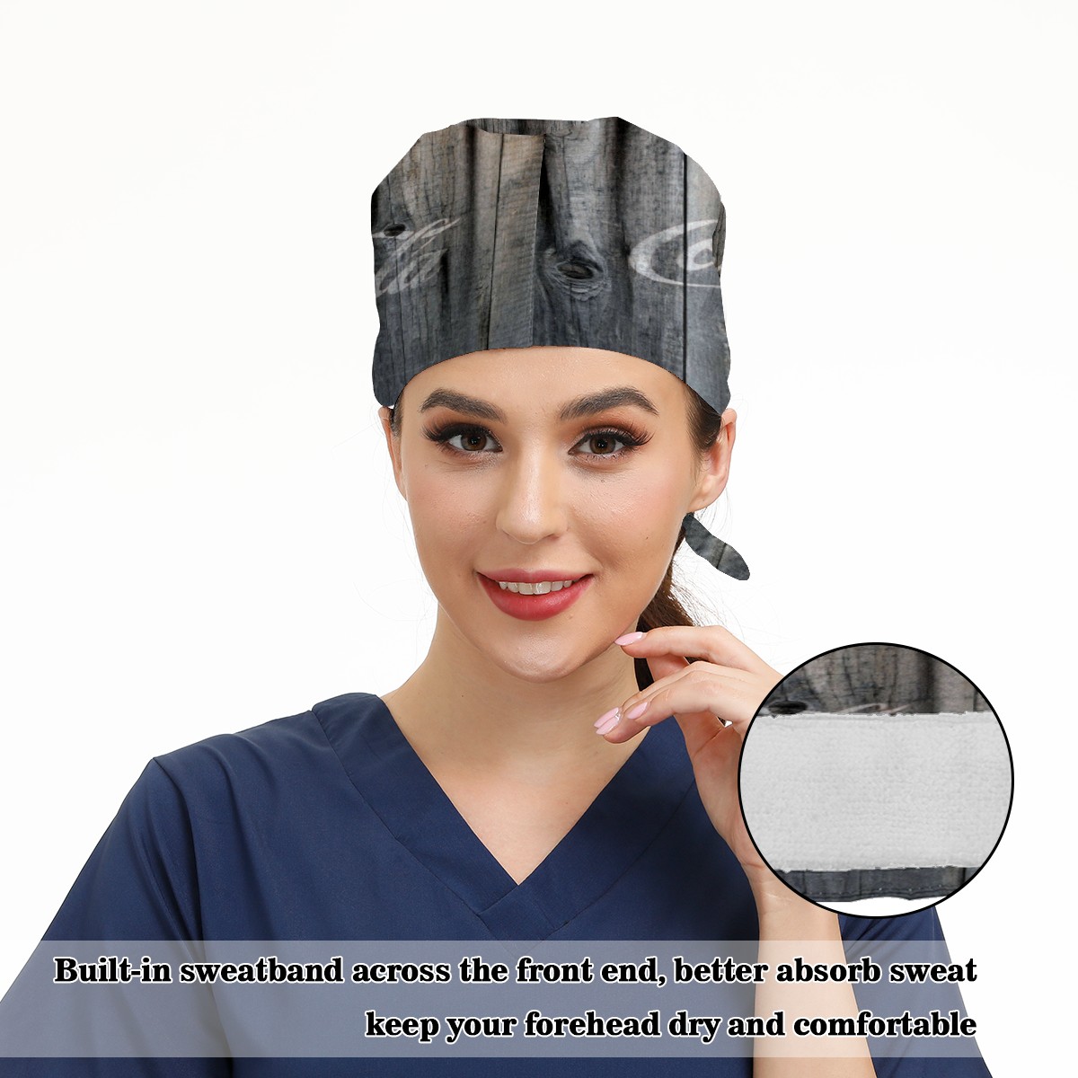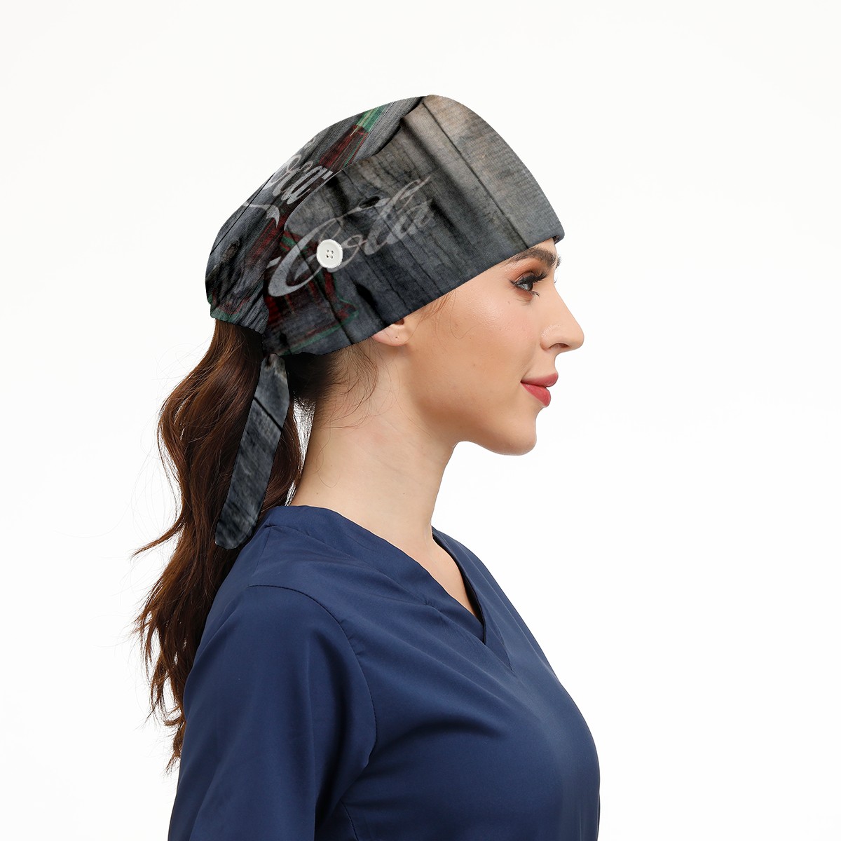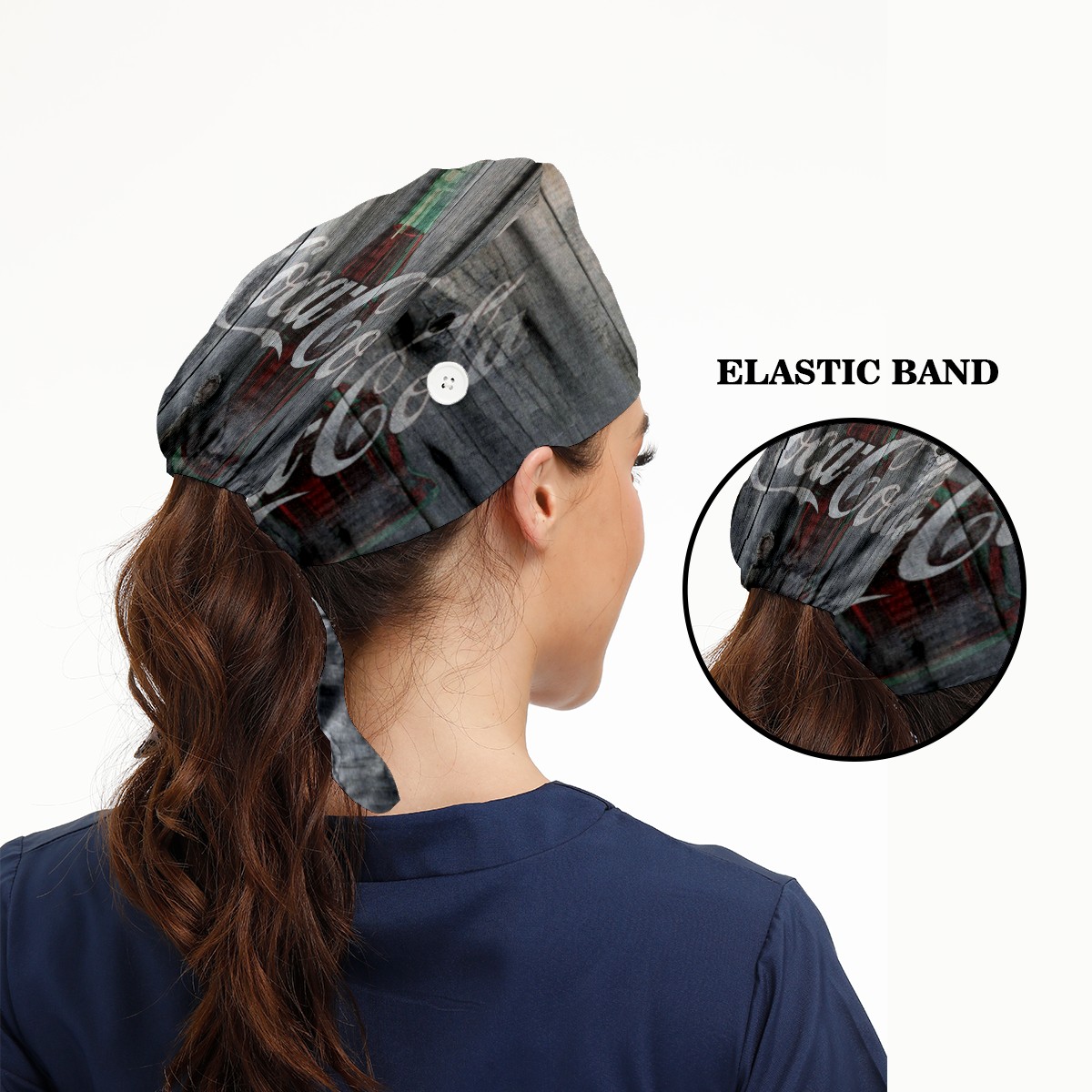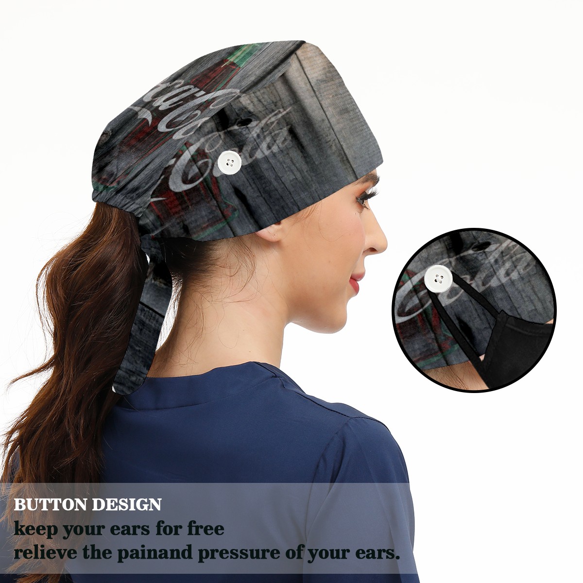 Fashion Working Cap Button and Sweatband Adjustable Elastic Vintage Coca-cola Rustic Wooden Board Head Cover Hair Tie Back Work Hats for Women Men