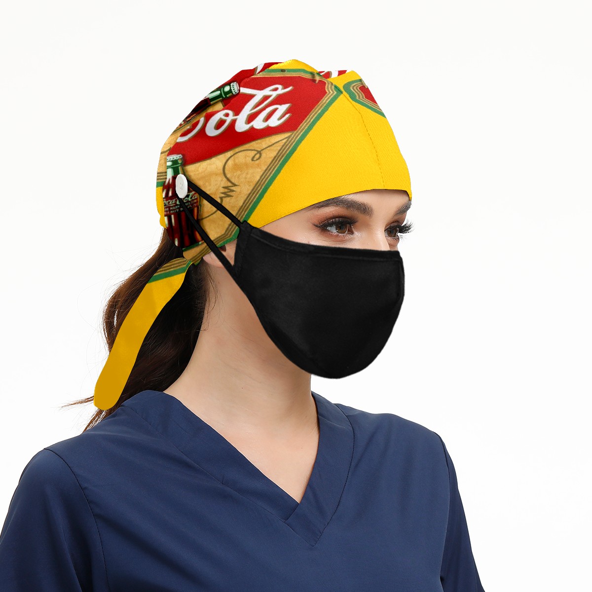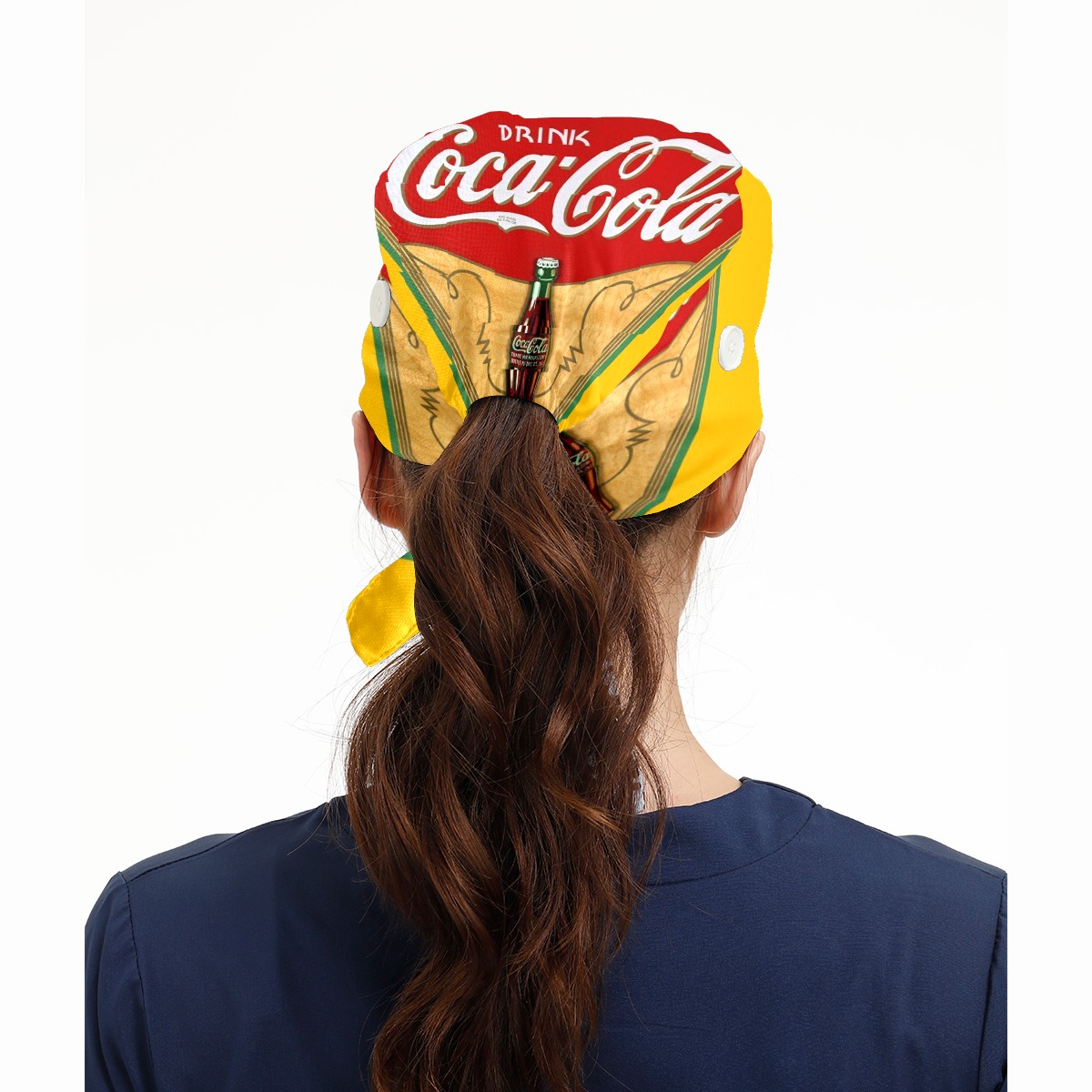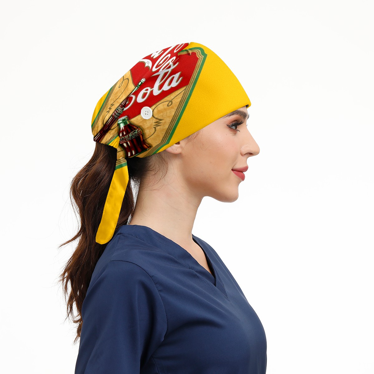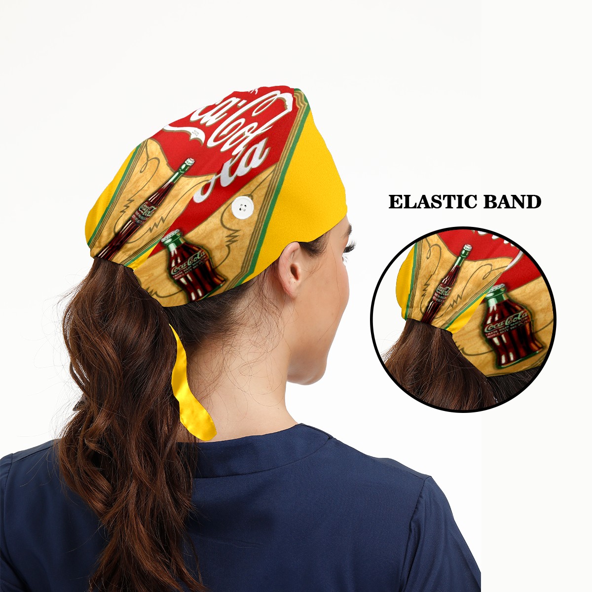 Fashion Working Cap Button and Sweatband Adjustable Elastic Vintage Coca Cola Sign Head Cover Hair Tie Back Work Hats for Women Men