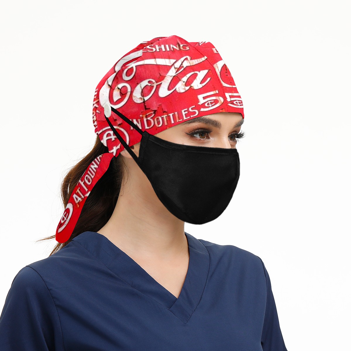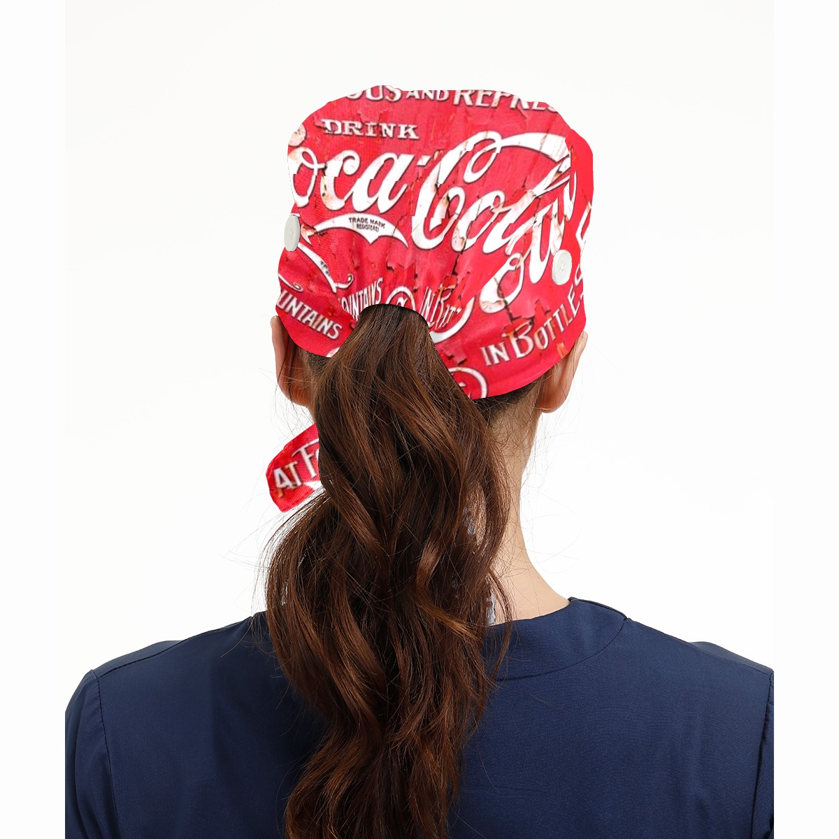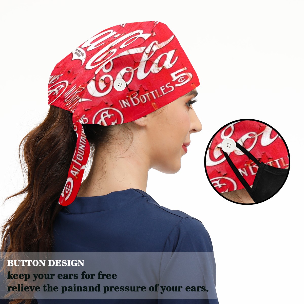 Fashion Working Cap Button and Sweatband Adjustable Elastic Vintage Coca Cola Retro Style Head Cover Hair Tie Back Work Hats for Women Men