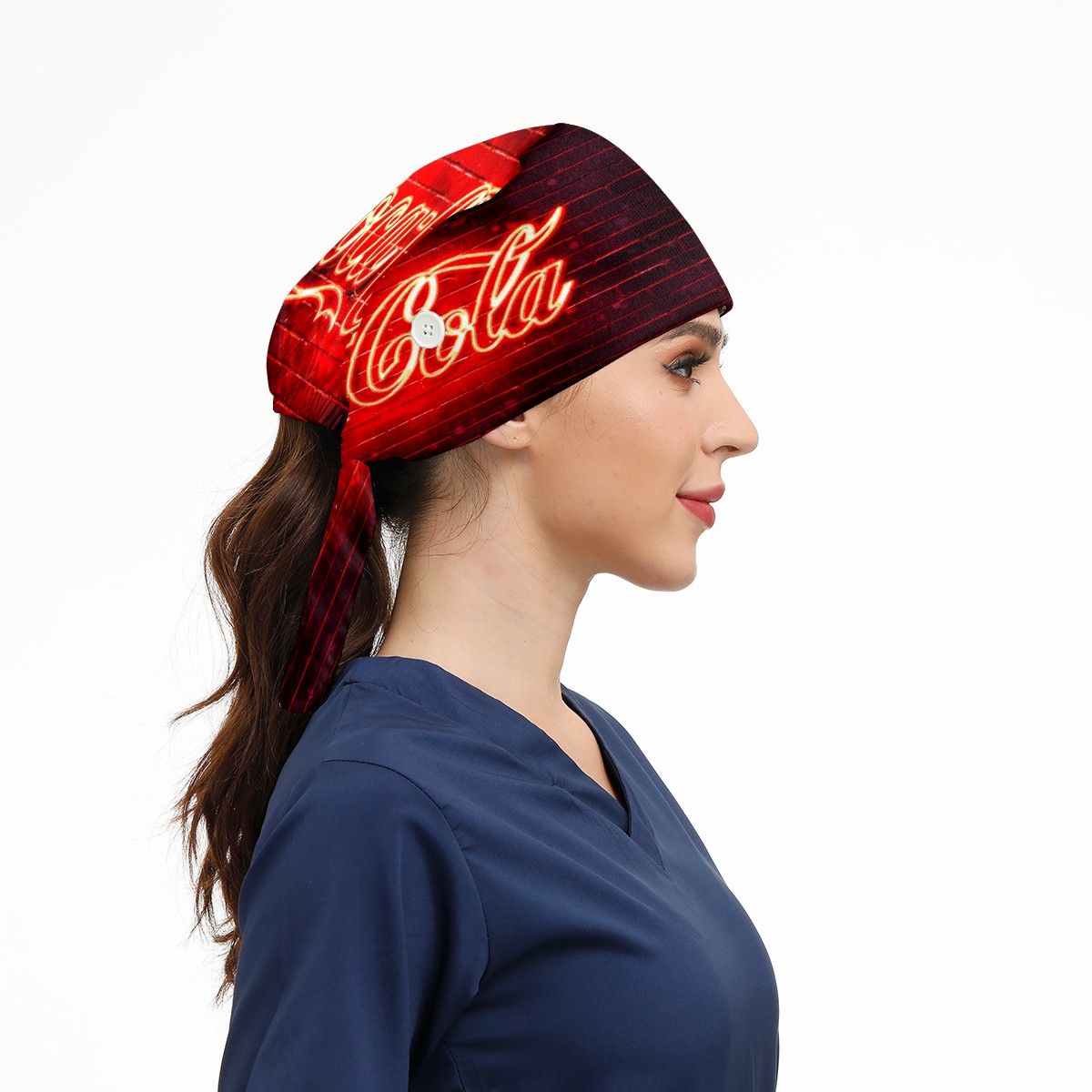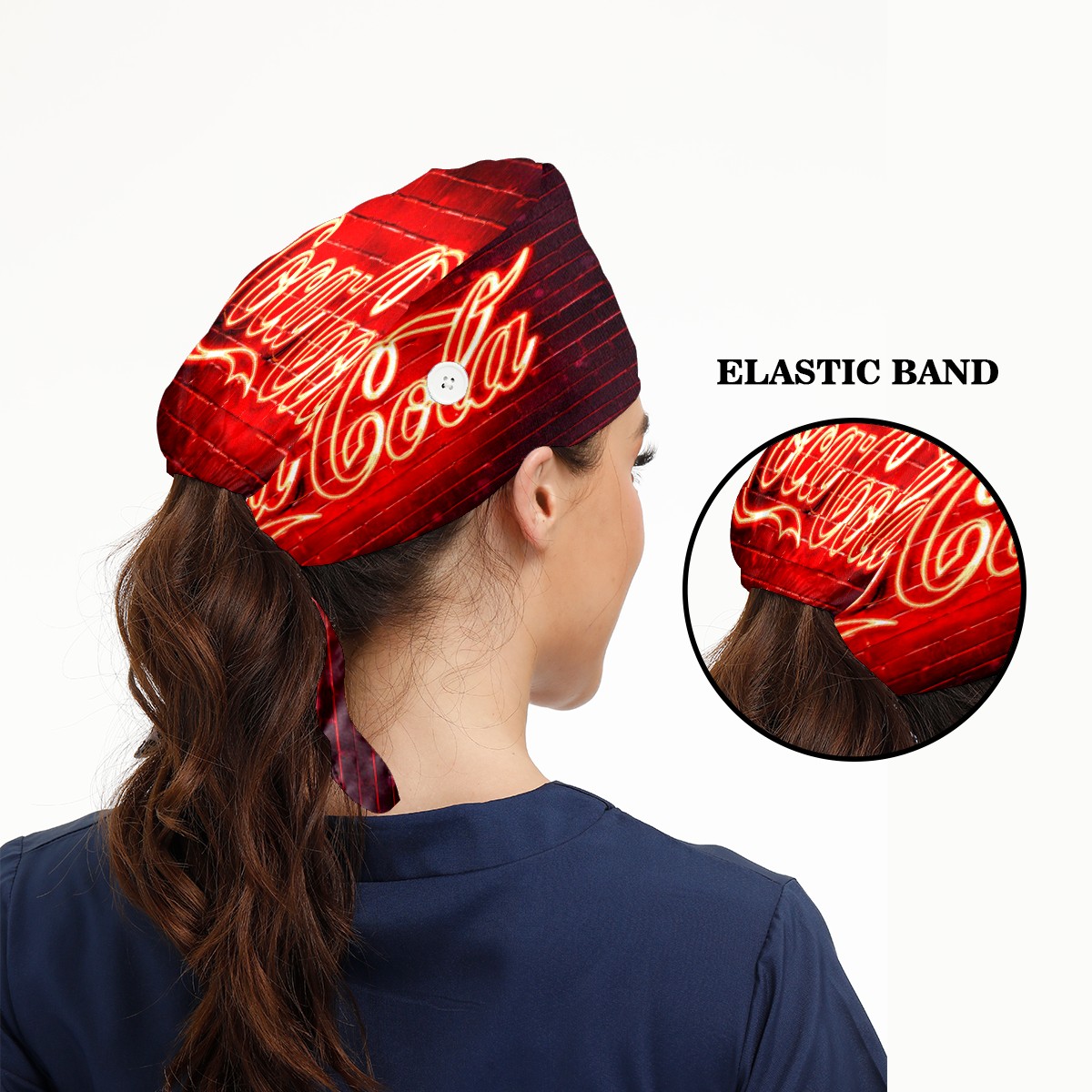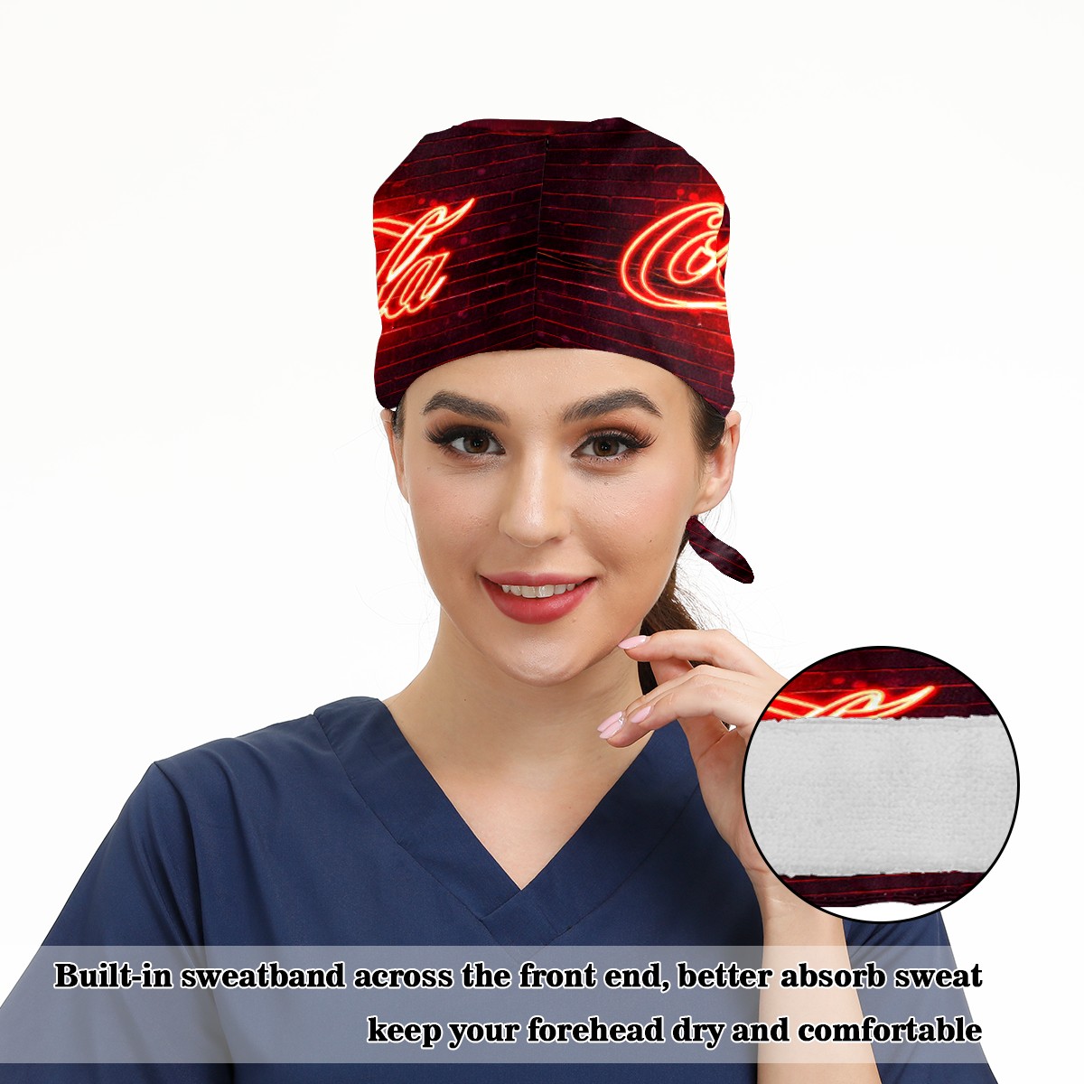 Fashion Working Cap Button and Sweatband Adjustable Elastic Neon Coca-Cola Sign Head Cover Hair Tie Back Work Hats for Women Men