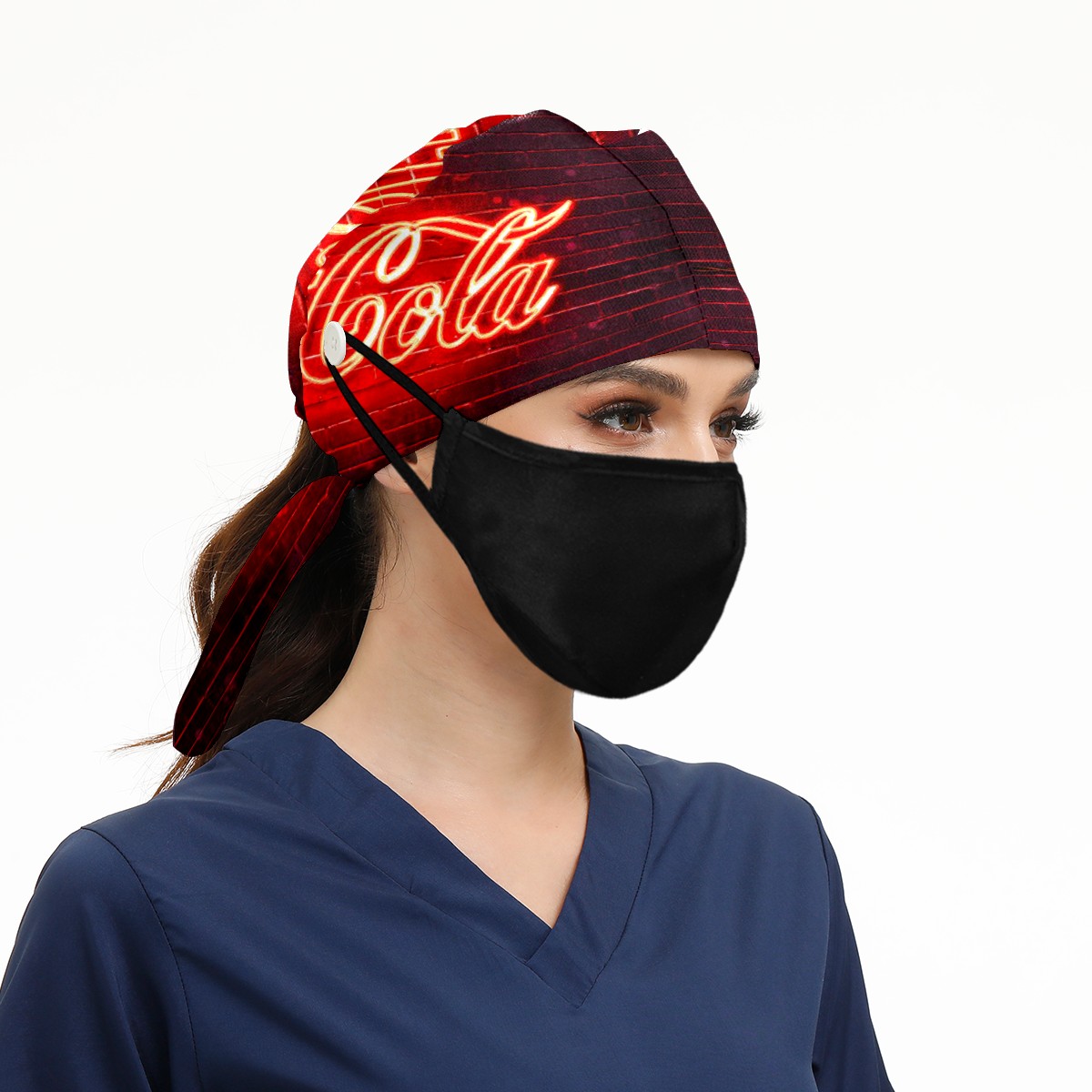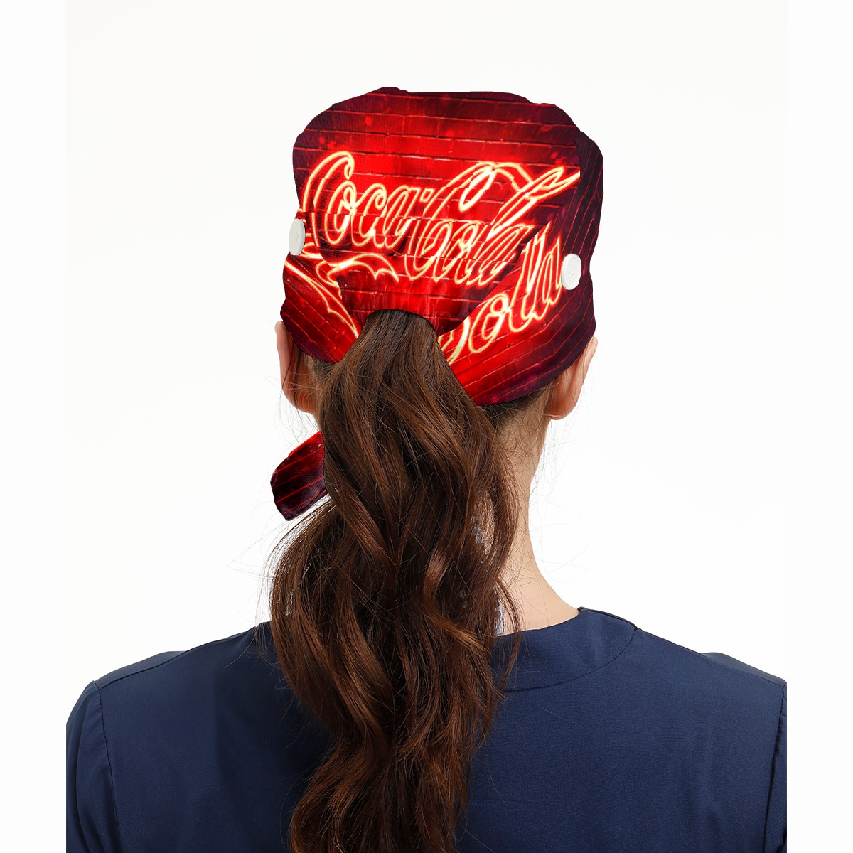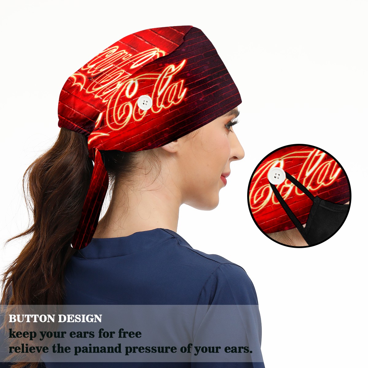 Fashion Working Cap Button and Sweatband Adjustable Elastic Neon Coca-Cola Sign Head Cover Hair Tie Back Work Hats for Women Men