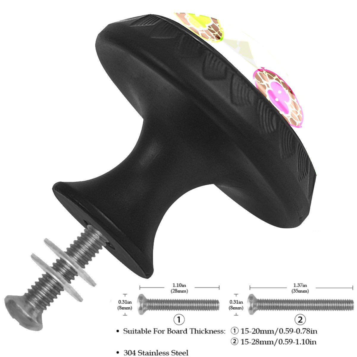 <p><b>Product Specification</b></p><p>Crystal Diameter: 30mm(1.18 inch)</p><p>Knob Height: 28mm(1.10 inch)</p><p>Base Diameter: 17mm(0.66 inch)</p><p>&nbsp;</p><p><b>Package Includes</b></p><p>4 Piece Drawer Pull Knob</p><p>4 Piece Screw</p><p>&nbsp;</p><p><b>Installation Steps</b></p><p>Find the position where you want to install on the board and drill a hole.Then pass through the screw from the back of board anf thread tight to the knob.</p>