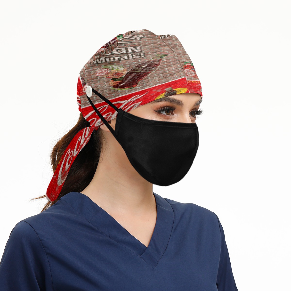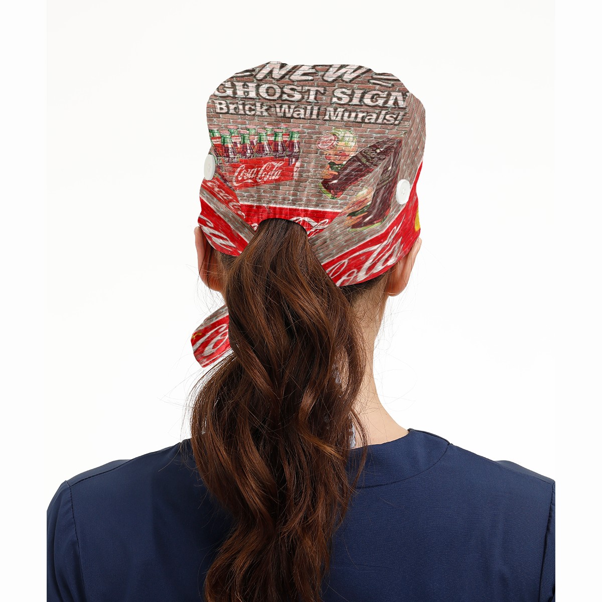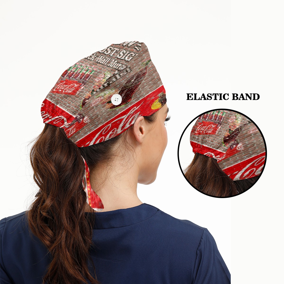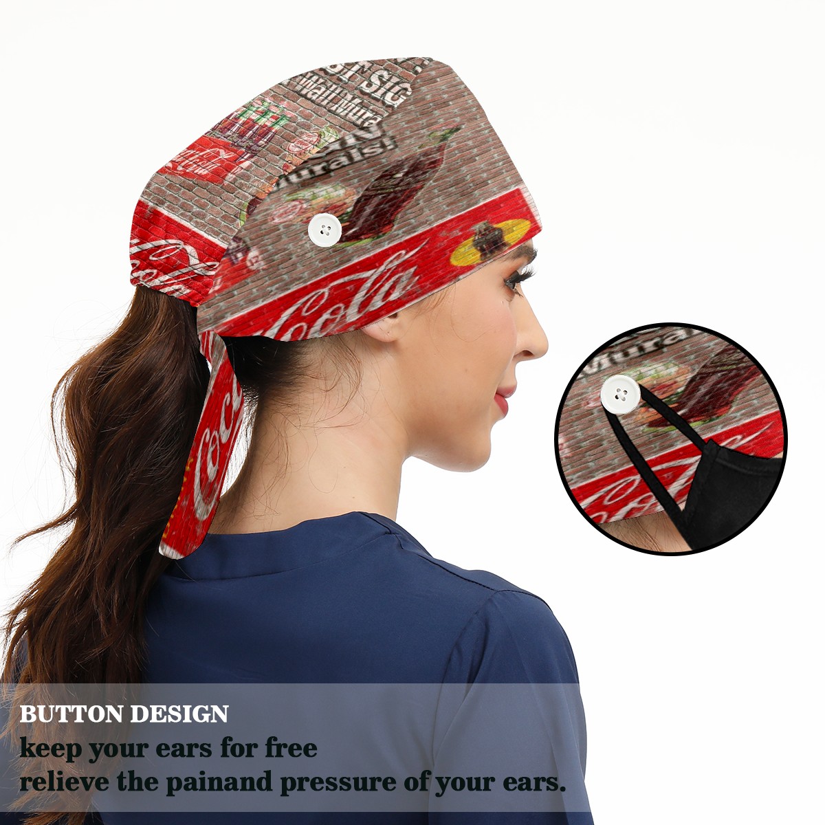 Fashion Working Cap Button and Sweatband Adjustable Elastic Coca Cola Wall Retro Head Cover Hair Tie Back Work Hats for Women Men
