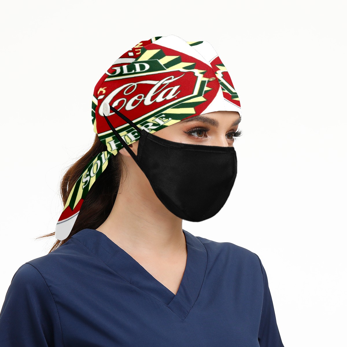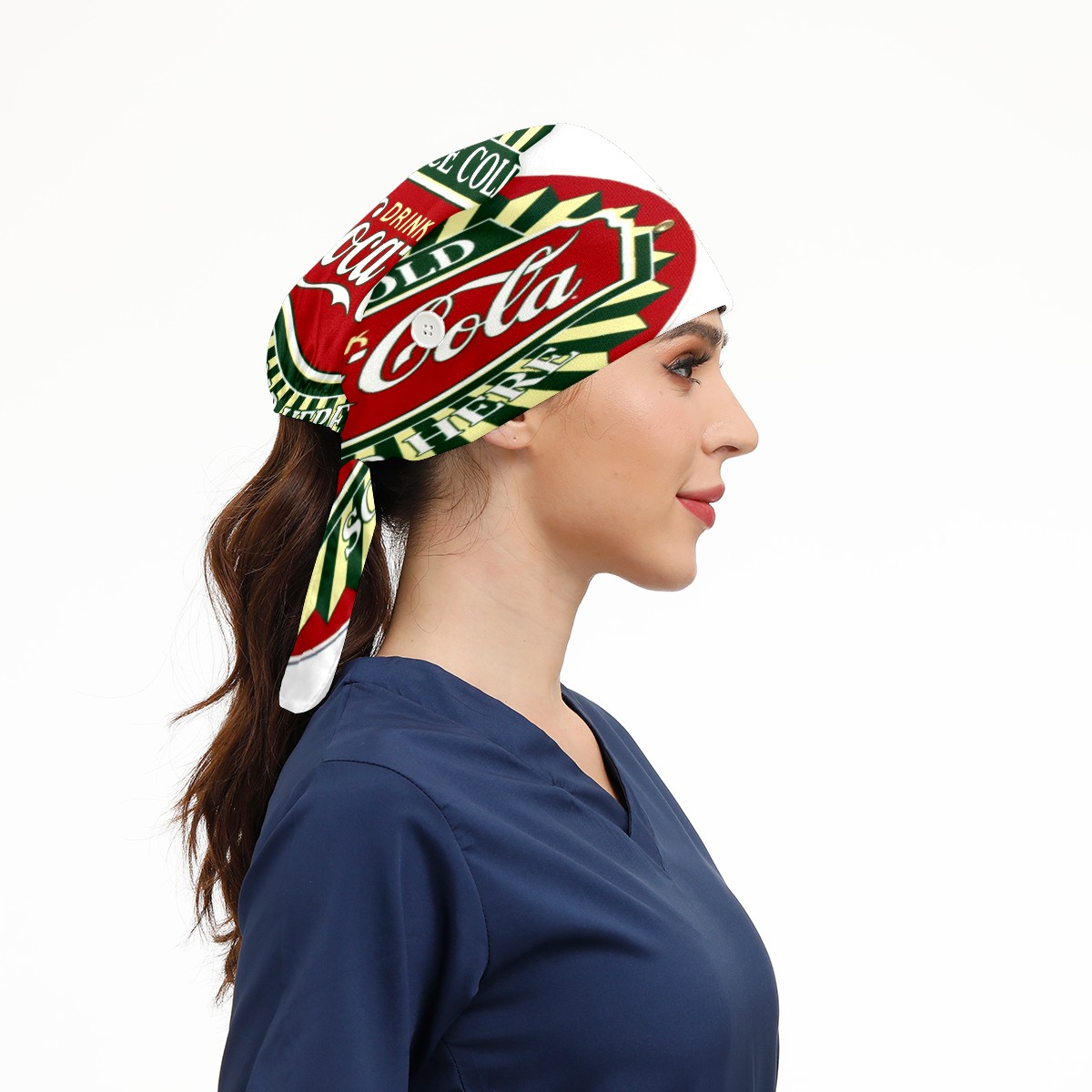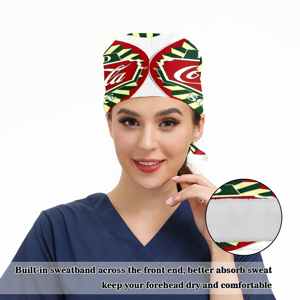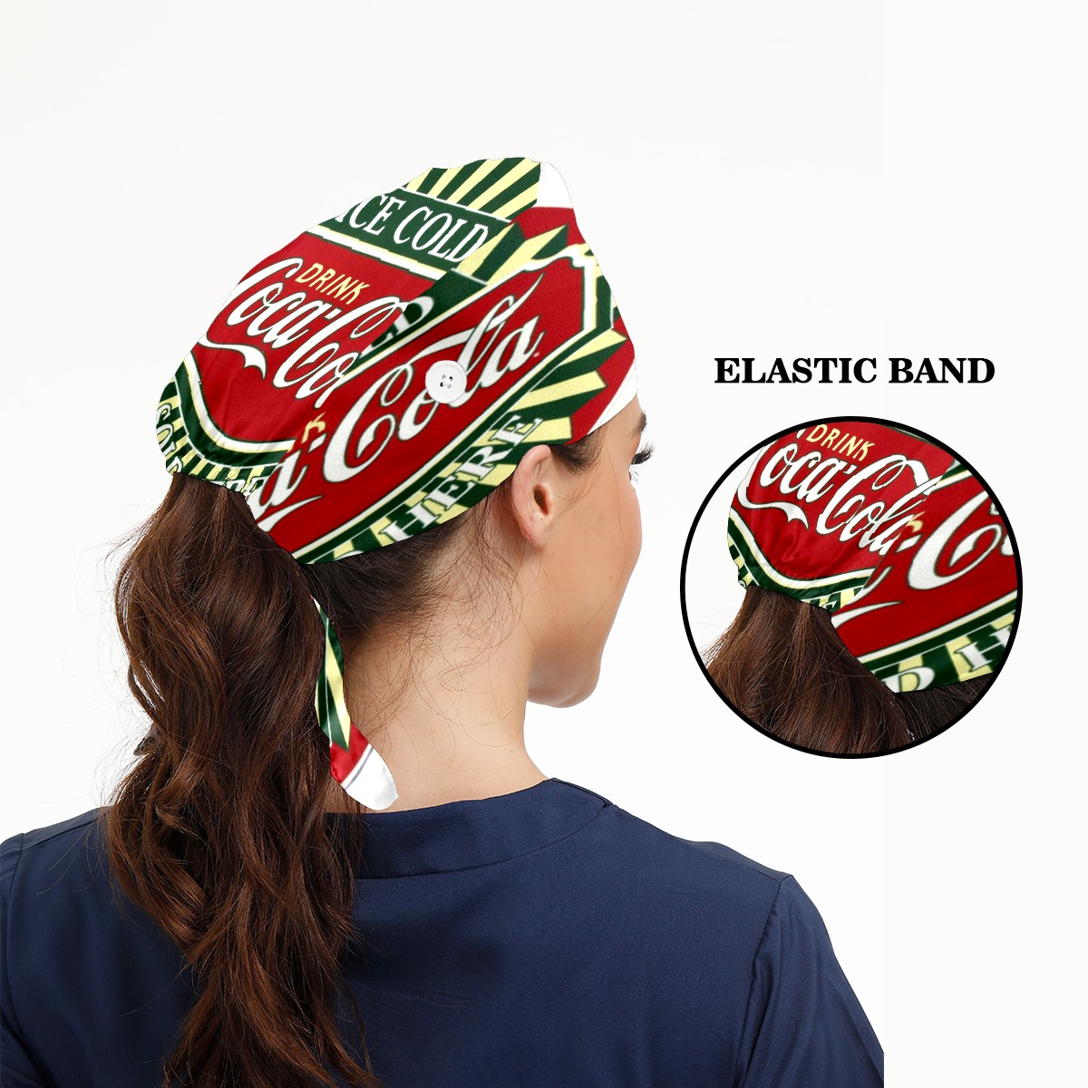 Fashion Working Cap Button and Sweatband Adjustable Elastic Coca Cola Sign Head Cover Hair Tie Back Work Hats for Women Men