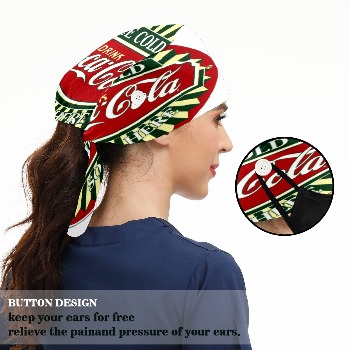 • <p>Women and Mens head cover with Sweatband and Button</p><p>Material&nbsp;: 50% cotton+50% polyester</p><p>Size:&nbsp;One size fits most,&nbsp;suitable for both men and women.</p><p>Working Cap with Buttons Design:special&nbsp;design with buttons to protect ears for those who are wearing ma-sk. These new styles hats will allow you to put the straps around the buttons instead of your ears, make you feel more comfortable.</p><p>Sweat-absorbent towel cloth inside: Built-in&nbsp;100% cotton sweatband, keep the forehead clean after long time working.</p><p>Widely occasion: Widely used in beauty spa, house cleaning, cooking, sleeping, or for cos-play&nbsp;party.</p><p>Lovely pattern: lovely&nbsp;3D printed&nbsp;pattern,&nbsp;it's perfect for gift to you family&nbsp;and friends.</p>