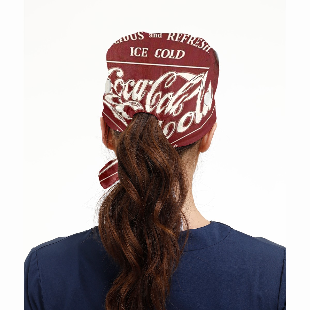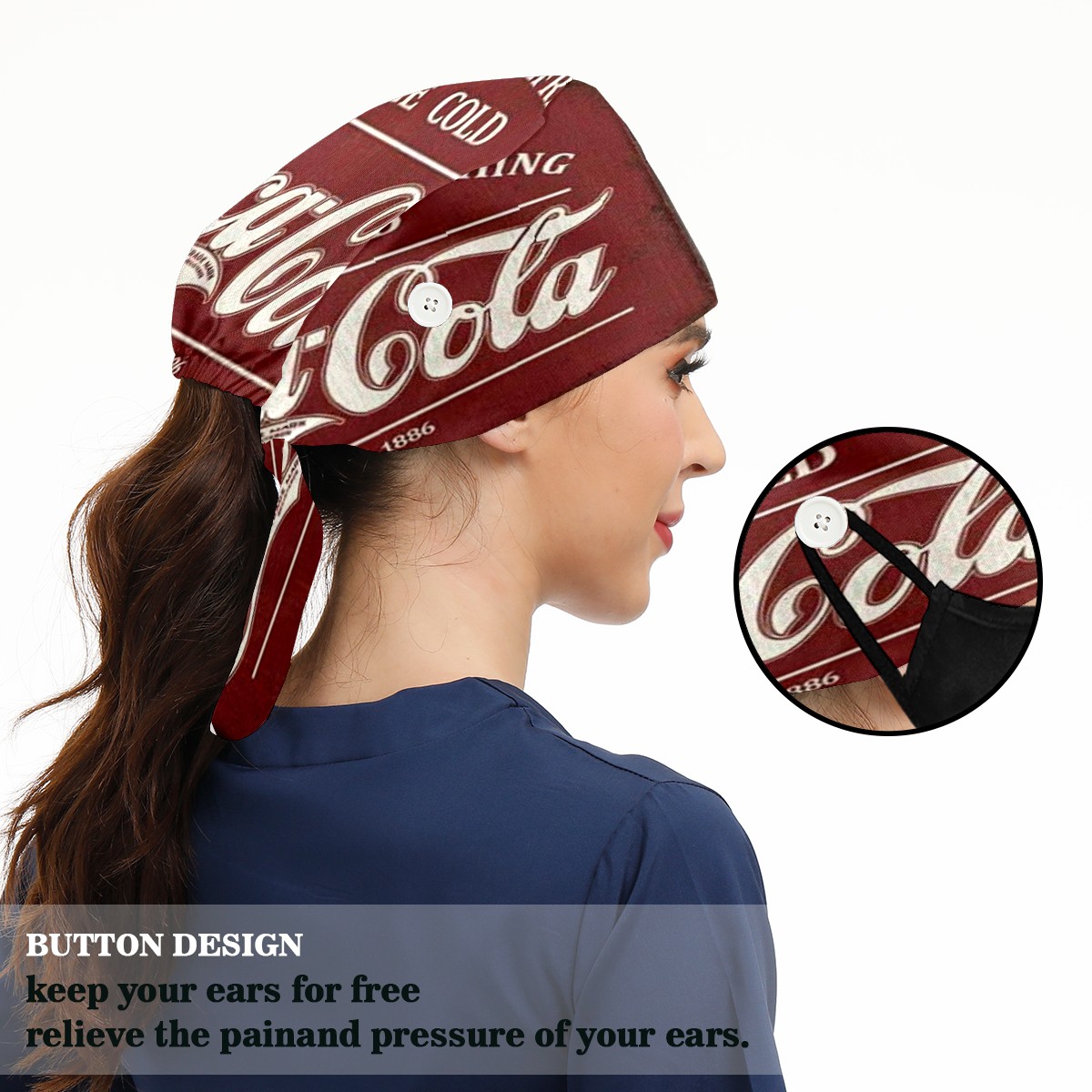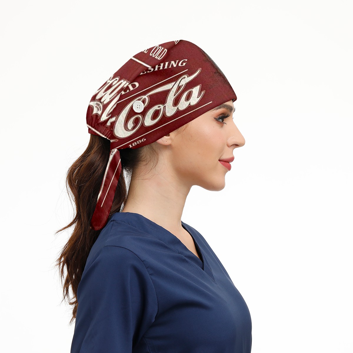 Fashion Working Cap Button and Sweatband Adjustable Elastic Coca Cola Sign Retro Style Head Cover Hair Tie Back Work Hats for Women Men