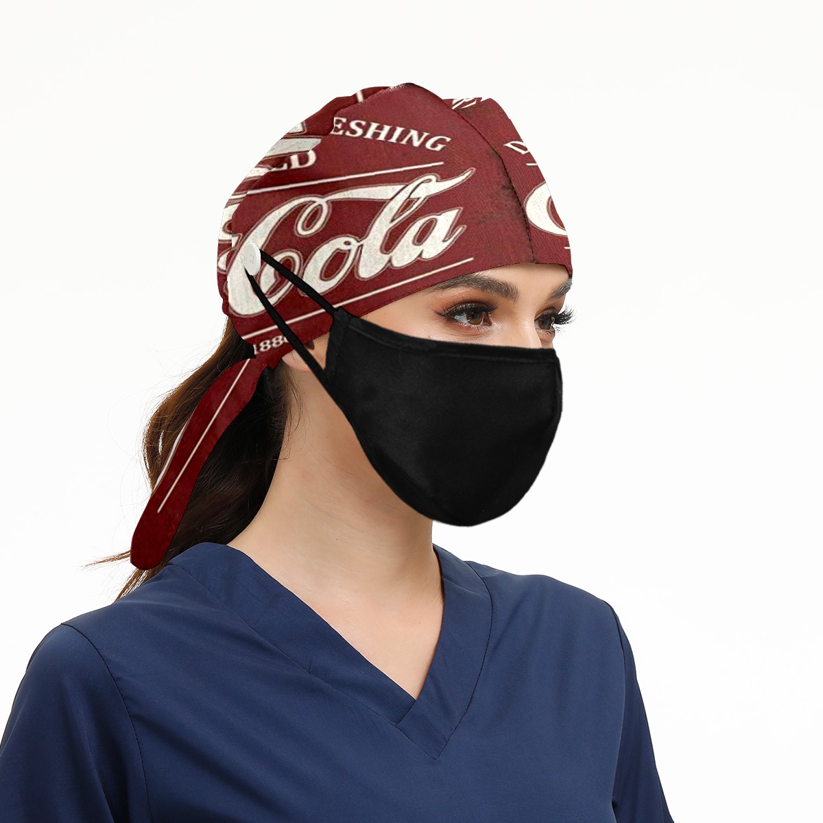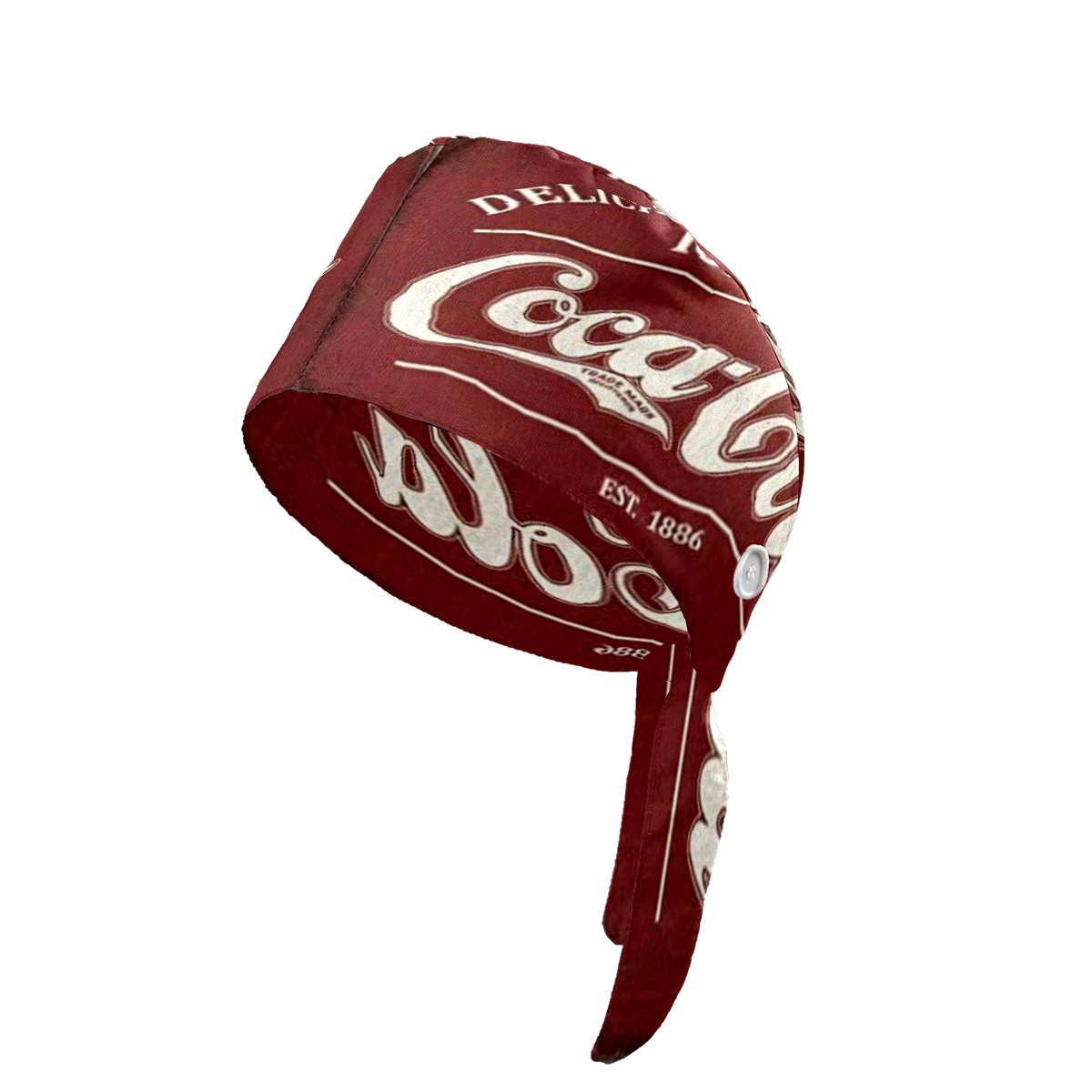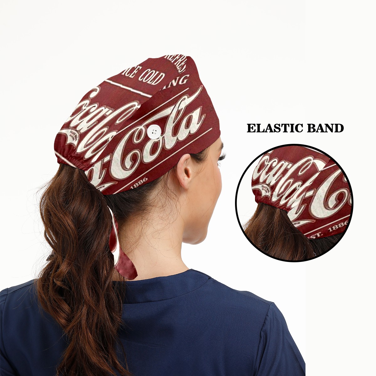 Fashion Working Cap Button and Sweatband Adjustable Elastic Coca Cola Sign Retro Style Head Cover Hair Tie Back Work Hats for Women Men