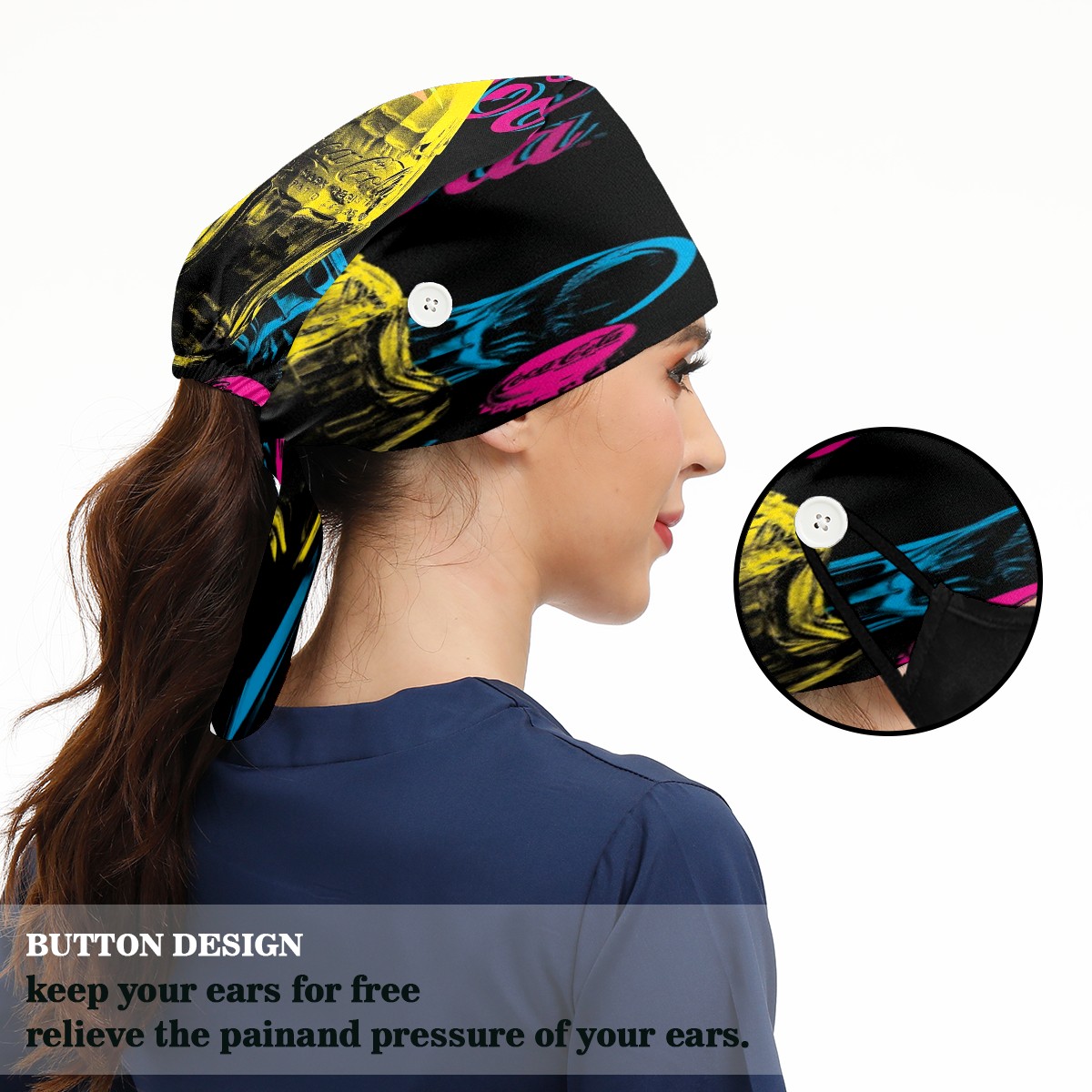 <p>Women and Mens head cover with Sweatband and Button</p><p>Material&nbsp;: 50% cotton+50% polyester</p><p>Size:&nbsp;One size fits most,&nbsp;suitable for both men and women.</p><p>Working Cap with Buttons Design:special&nbsp;design with buttons to protect ears for those who are wearing ma-sk. These new styles hats will allow you to put the straps around the buttons instead of your ears, make you feel more comfortable.</p><p>Sweat-absorbent towel cloth inside: Built-in&nbsp;100% cotton sweatband, keep the forehead clean after long time working.</p><p>Widely occasion: Widely used in beauty spa, house cleaning, cooking, sleeping, or for cos-play&nbsp;party.</p><p>Lovely pattern: lovely&nbsp;3D printed&nbsp;pattern,&nbsp;it's perfect for gift to you family&nbsp;and friends.</p>