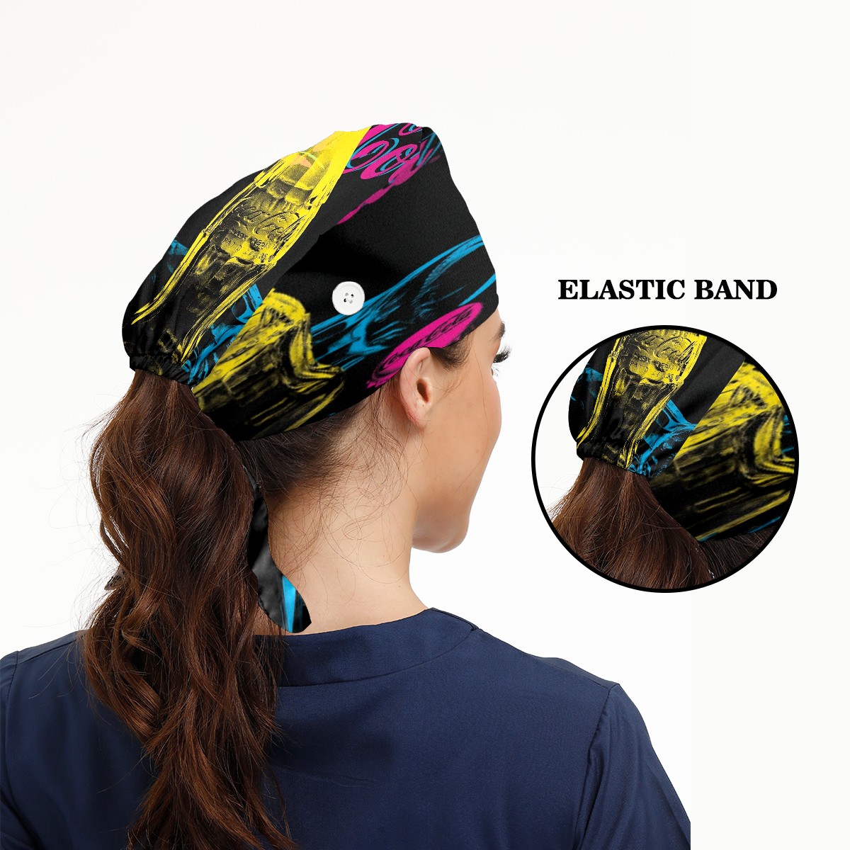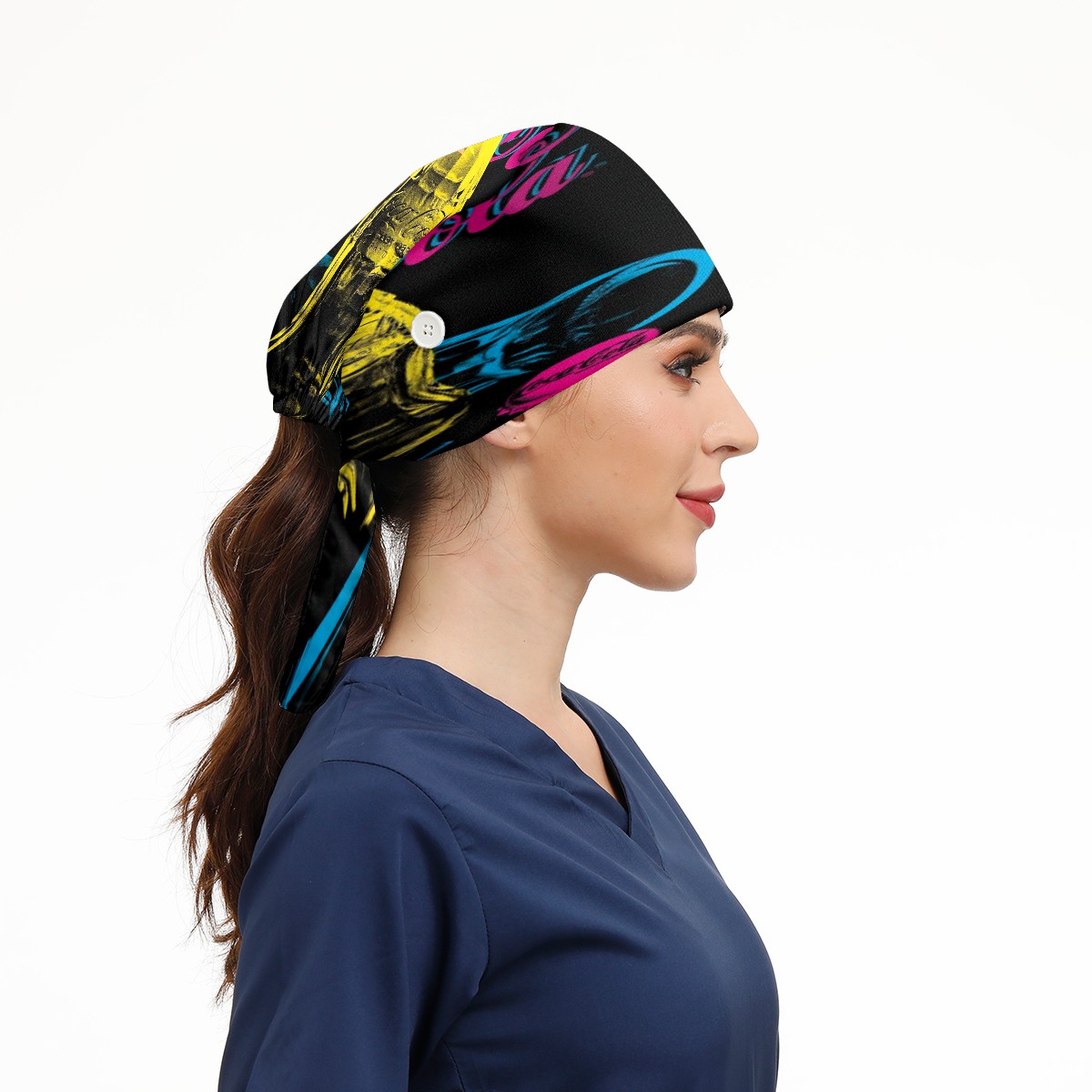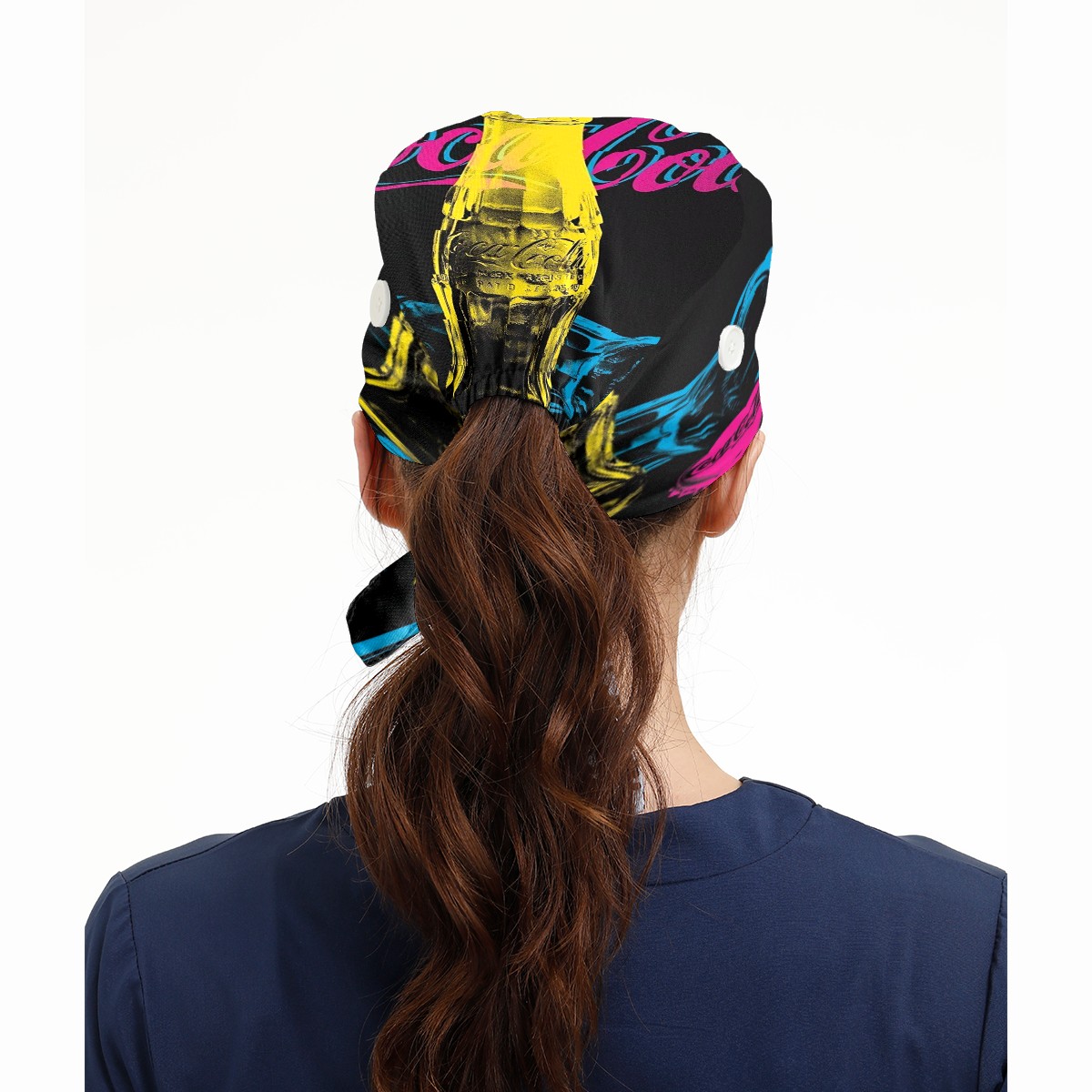 Fashion Working Cap Button and Sweatband Adjustable Elastic Coca Cola Bottle Yellow Pink Blue Head Cover Hair Tie Back Work Hats for Women Men