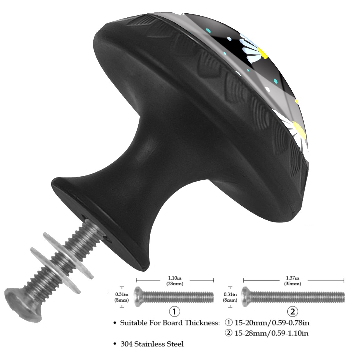 • <p><b>Product Specification</b></p><p>Crystal Diameter: 30mm(1.18 inch)</p><p>Knob Height: 28mm(1.10 inch)</p><p>Base Diameter: 17mm(0.66 inch)</p><p>&nbsp;</p><p><b>Package Includes</b></p><p>4 Piece Drawer Pull Knob</p><p>4 Piece Screw</p><p>&nbsp;</p><p><b>Installation Steps</b></p><p>Find the position where you want to install on the board and drill a hole.Then pass through the screw from the back of board anf thread tight to the knob.</p>