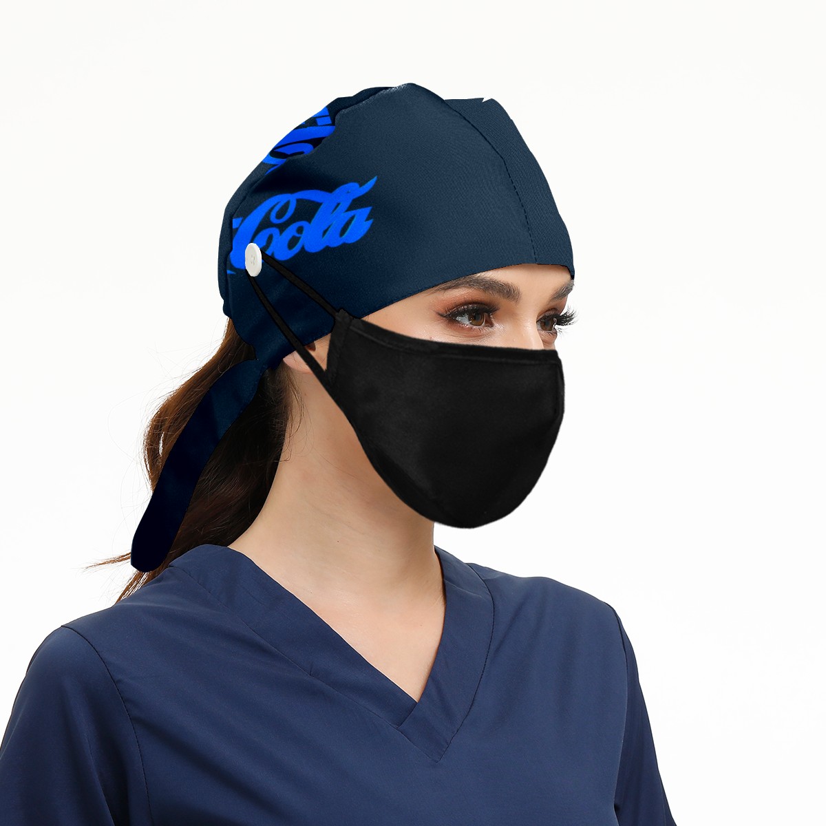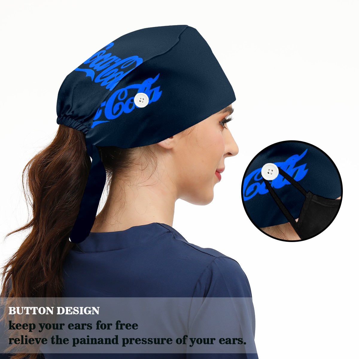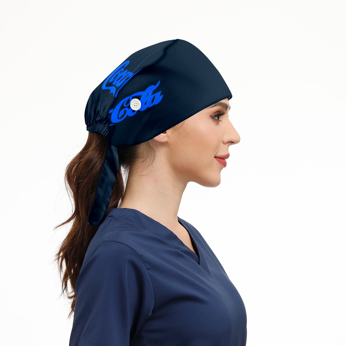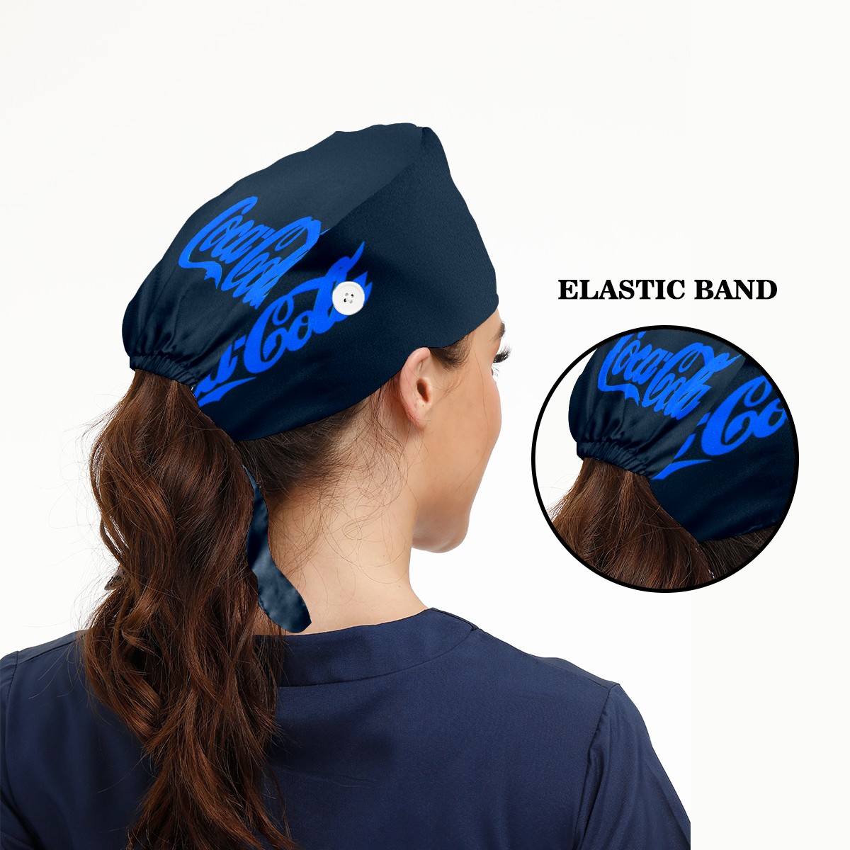 Fashion Working Cap Button and Sweatband Adjustable Elastic Blue Coca-Cola Sign Head Cover Hair Tie Back Work Hats for Women Men